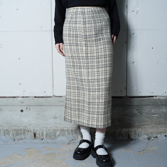 ・シックなブラックとホワイトのチェック柄が個性的なロングスカートです。 ・1994年製の貴重なアイテムで、ウール100%素材を使用した上質な仕上がりが魅力。 ・カジュアルからフォーマルなシーンまで、様々なスタイルに対応できるデザインです。 color-black&white size- ウエスト平置き32cmゴムウエスト ヒップ40cm スカート丈81cm 裾幅46cm surface-wool100% condition - S ●コンディションランク S:美品/ダメージ・使用感の少ない良好な商品 A:使用感はあるが比較的良好な商品 B:ダメージ・汚れが見られる商品 C:大きなダメージ・使用感が見られる商品 ※コンディションランクは当社の定める基準で表示しており、あくまでも目安となります。 ホームページに記載されているユーズド商品の注意点もご確認の上ご購入下さい。 【コンディション詳細】 こちらは古着(USED)の商品になります。 12509128