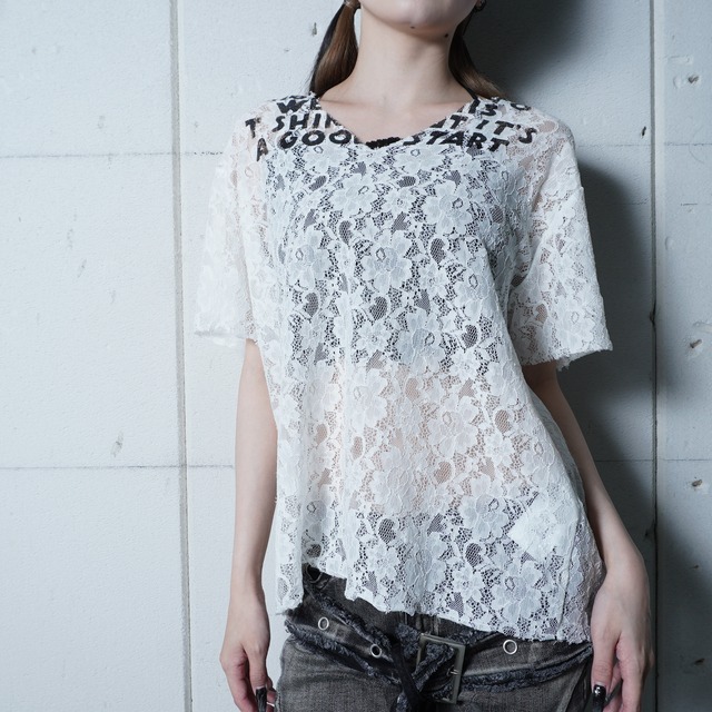 【Maison Margiela】メゾンマルジェラ MM6 フラワーシアーレースエイズTシャツ white&black