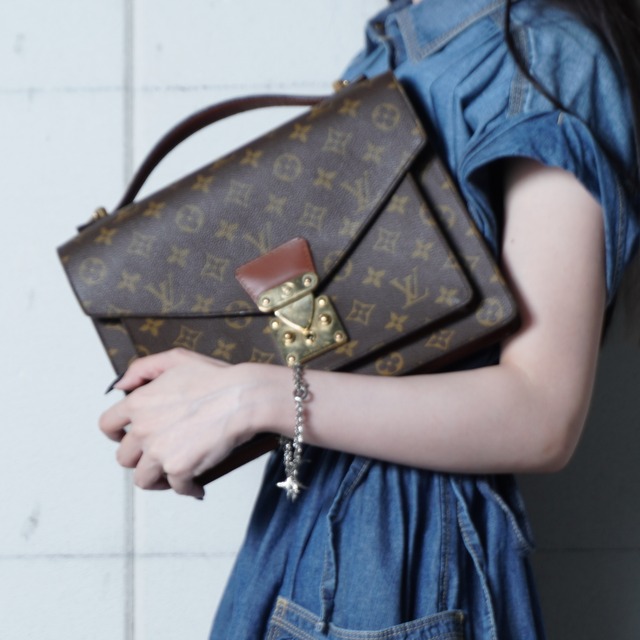 【LOUIS VUITTON】ルイヴィトン "モノグラム" モンソーレザーハンドバッグ brown