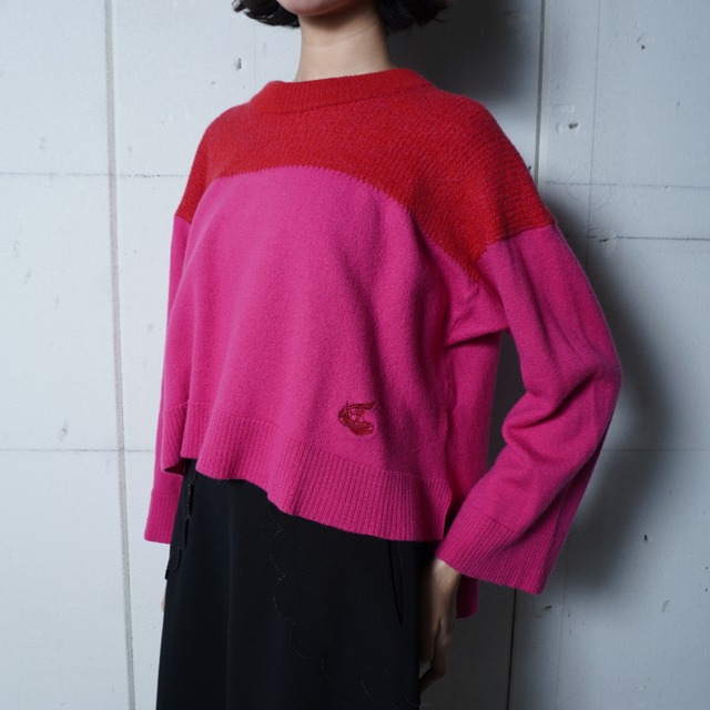 【Vivienne Westwood】ヴィヴィアンウエストウッド "WOOL100%””オーブロゴ刺繡”バイカラーニット red&pink