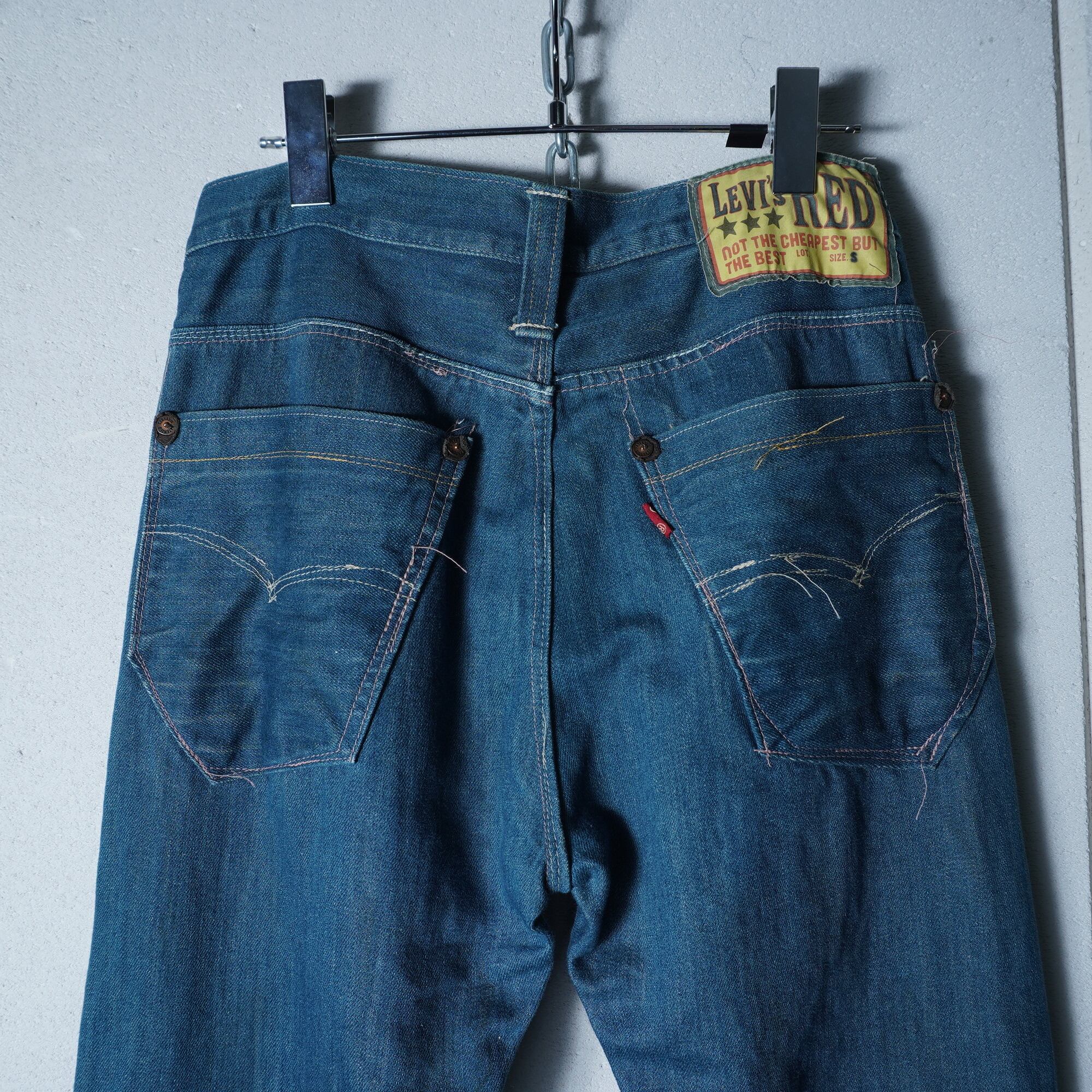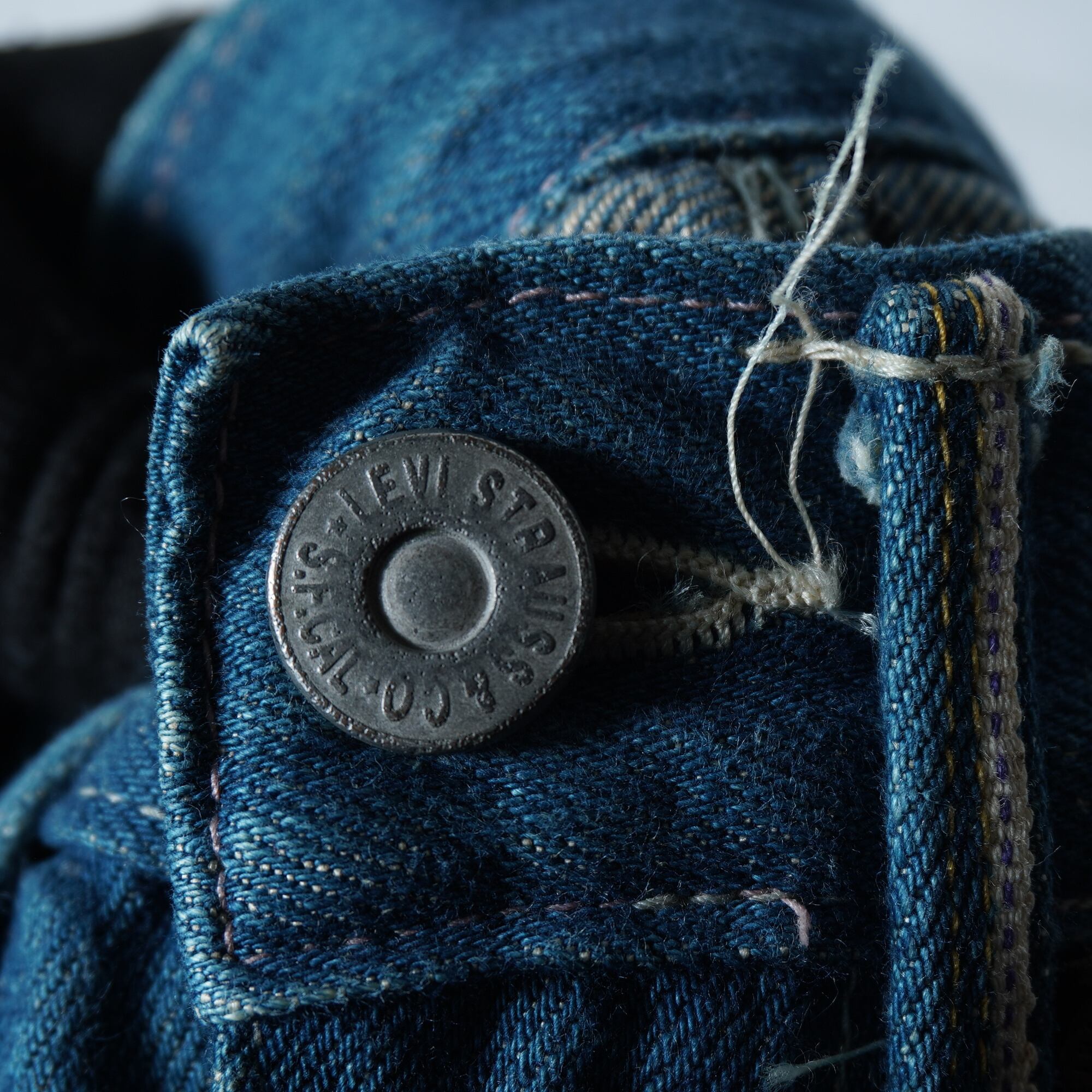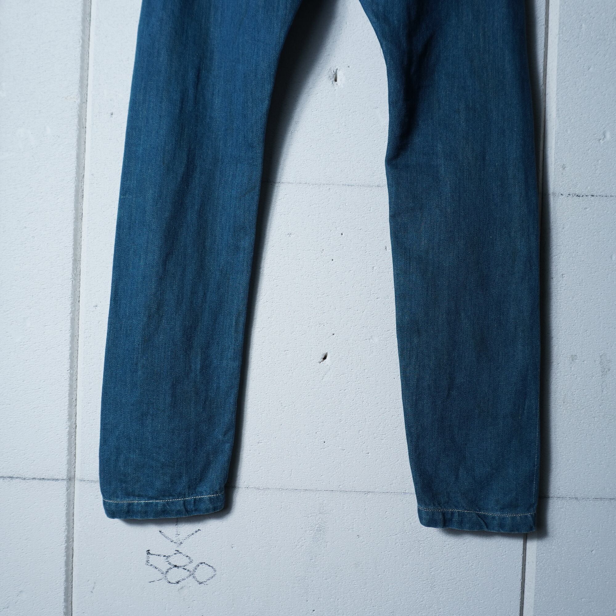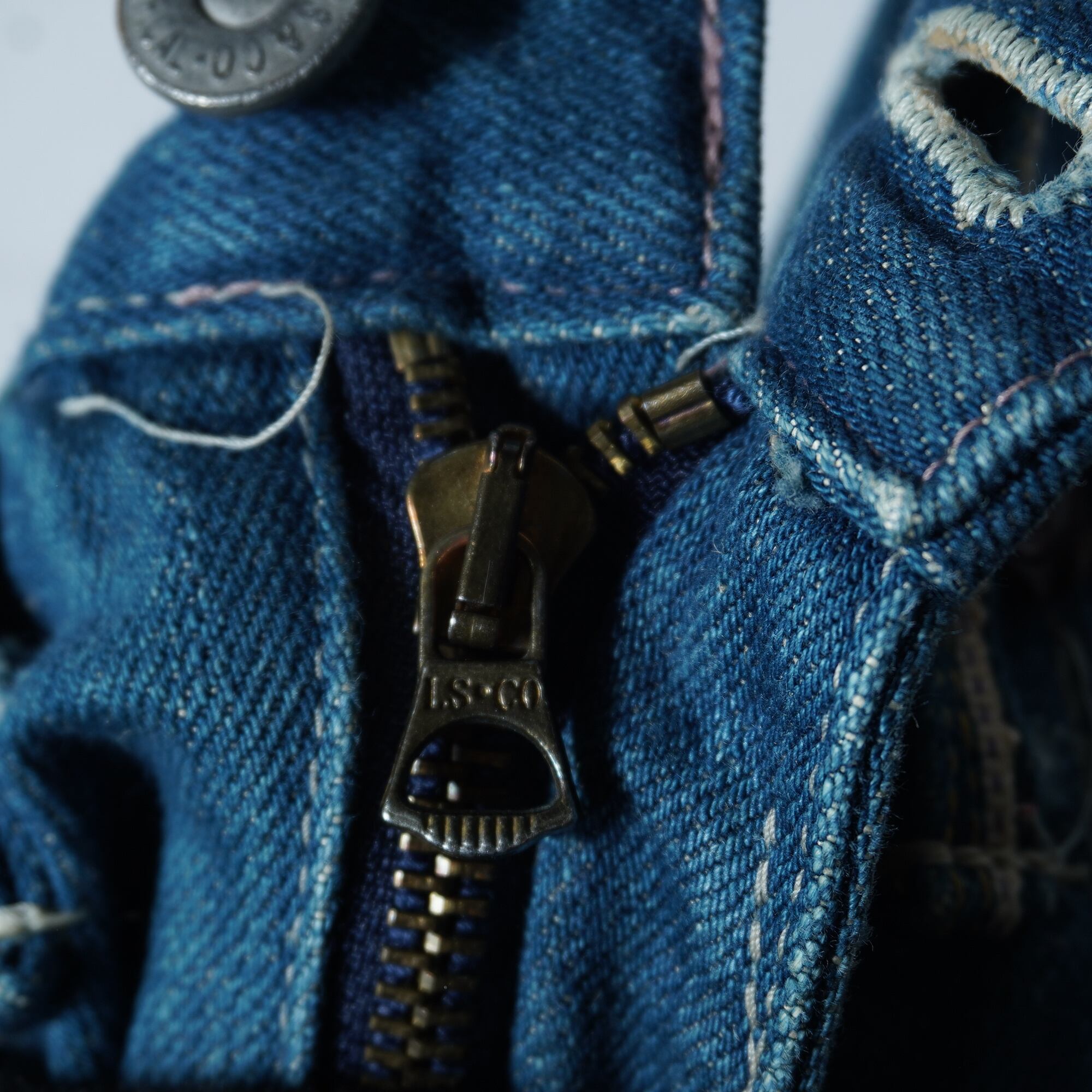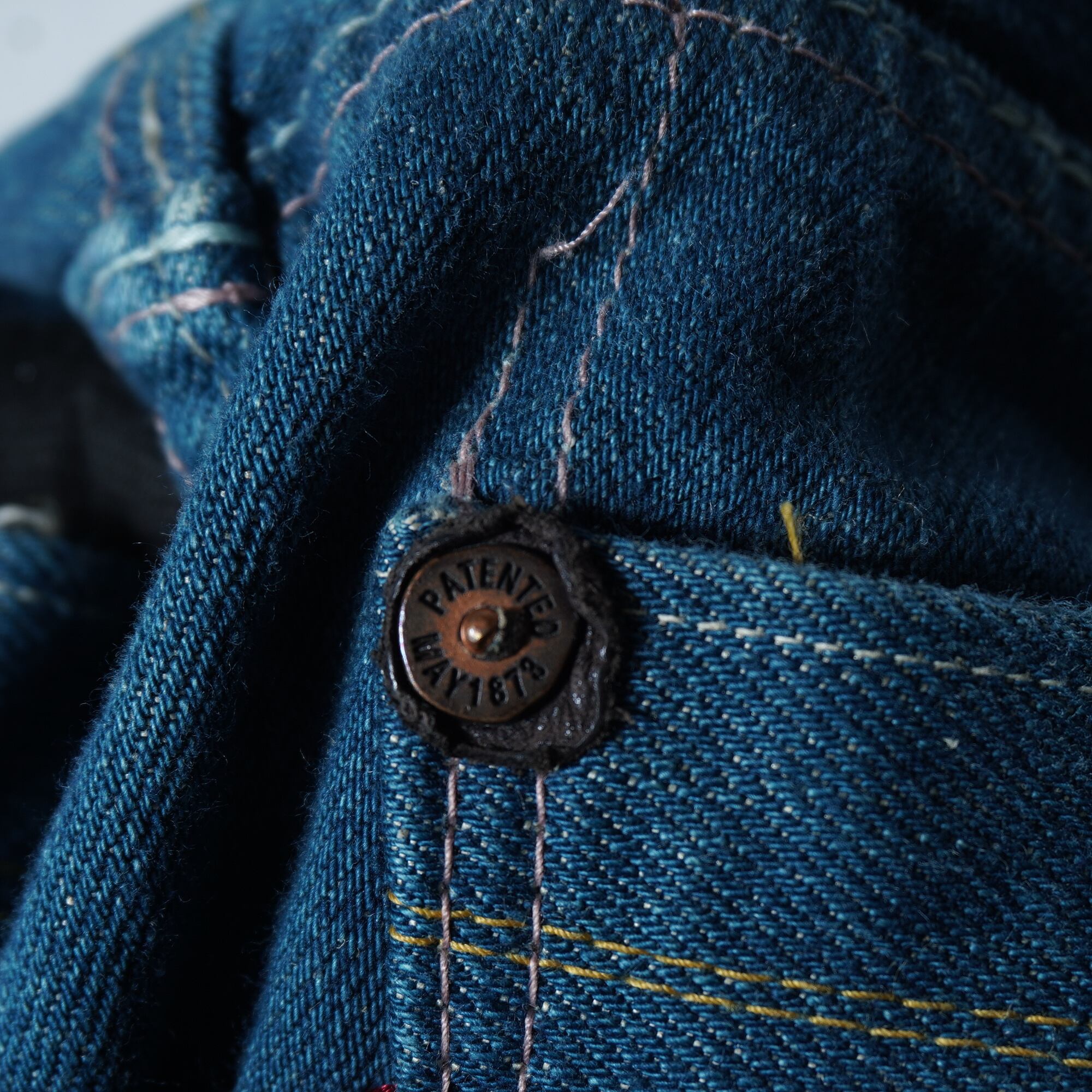 あえて切りっぱなしにされて飛び出た糸やステッチ、切り替えデザインなど現行品にはないディテールがたまらないデニムパンツです。