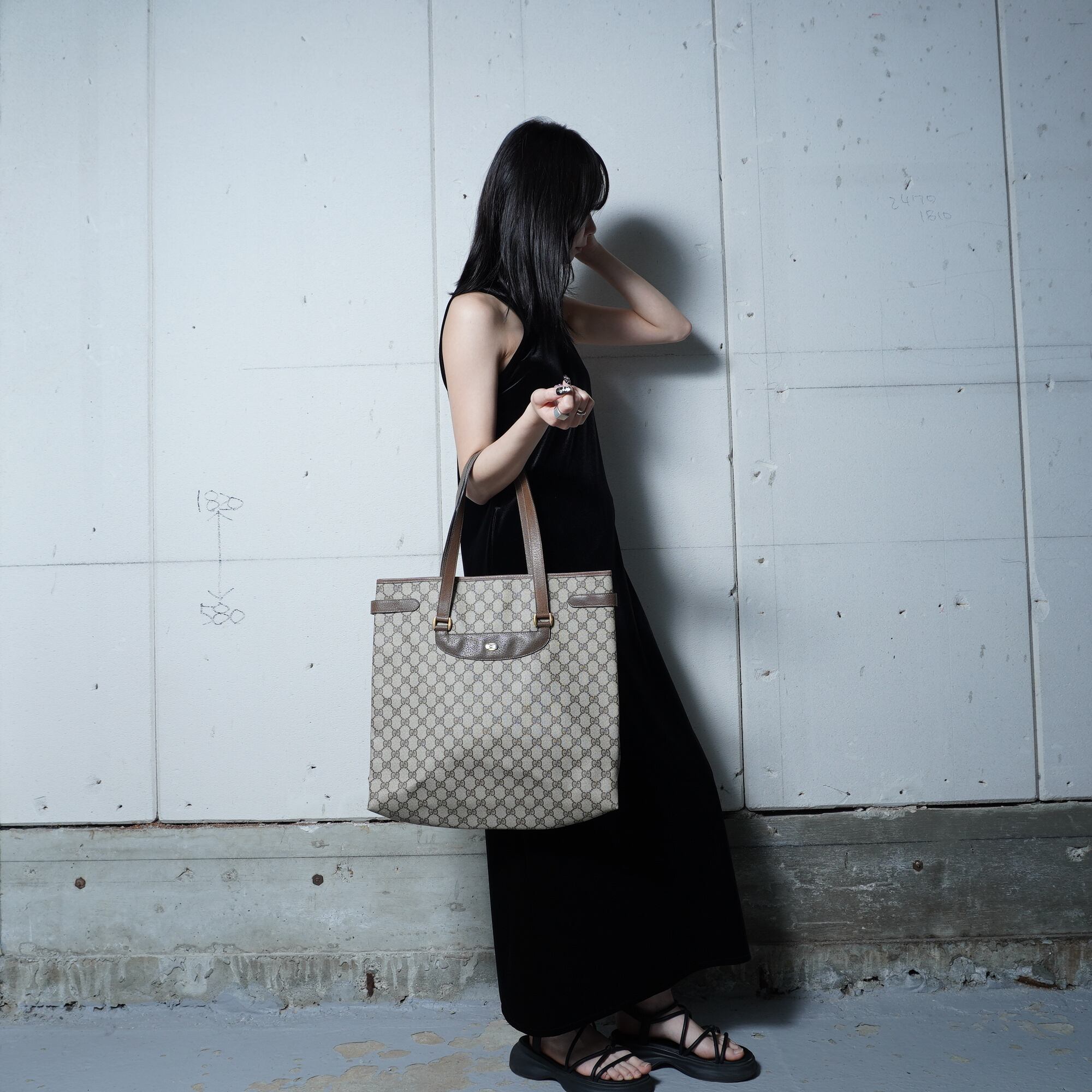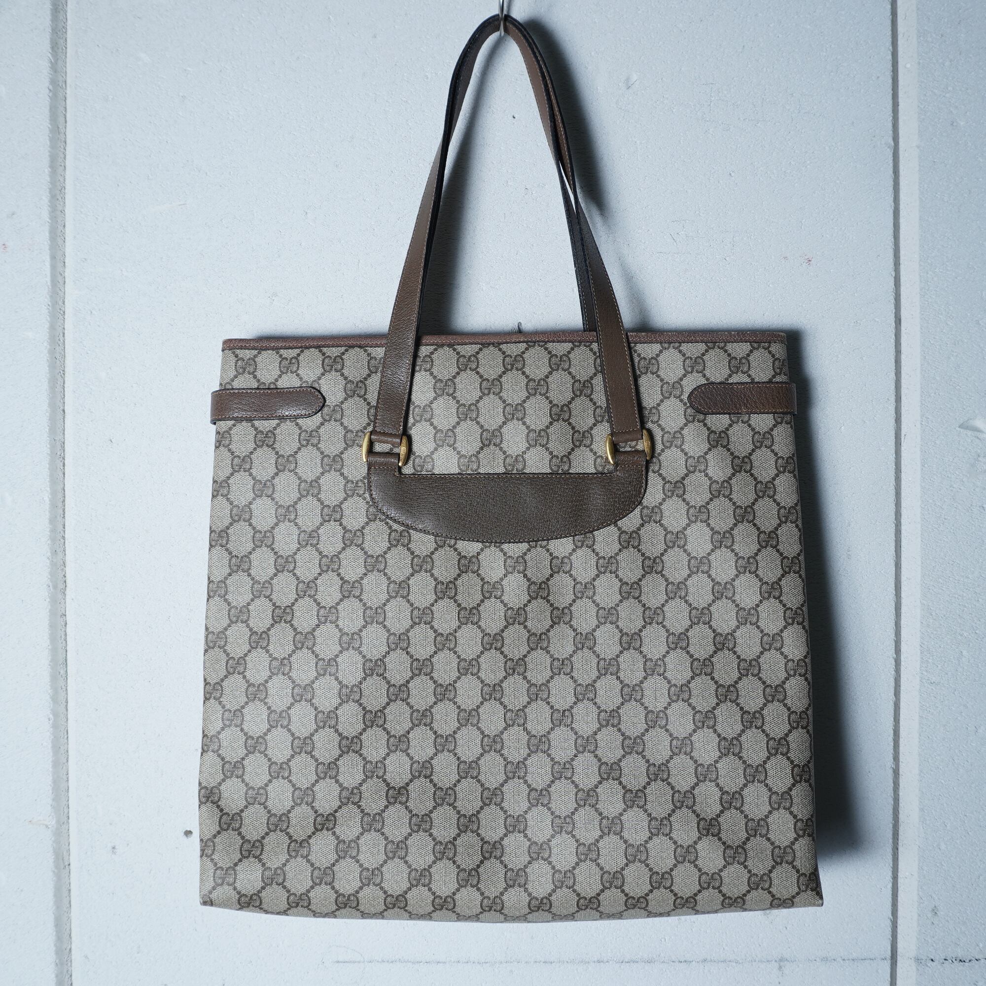 【GUCCI】グッチ "GG柄" 大判レザートートバッグ brown & beige