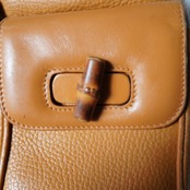 【GUCCI】グッチ "ロゴ入" シボ加工レザーハンドバッグパック camel
