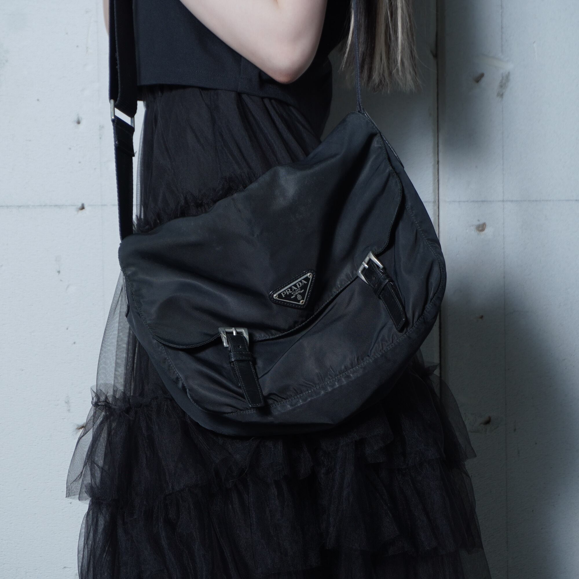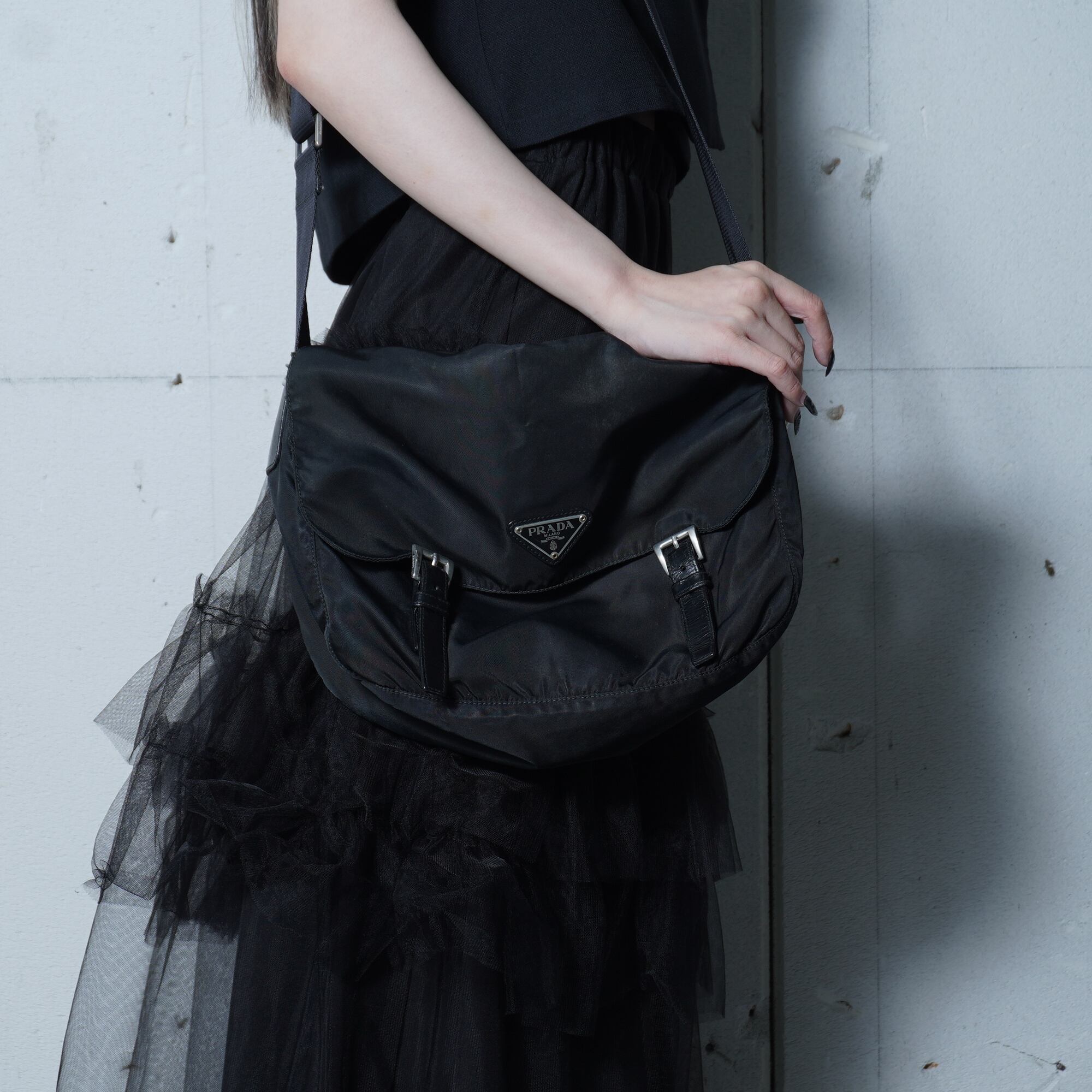 【PRADA】プラダ ”三角ロゴプレート” 高密度ナイロンショルダーバッグ black