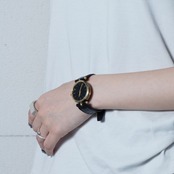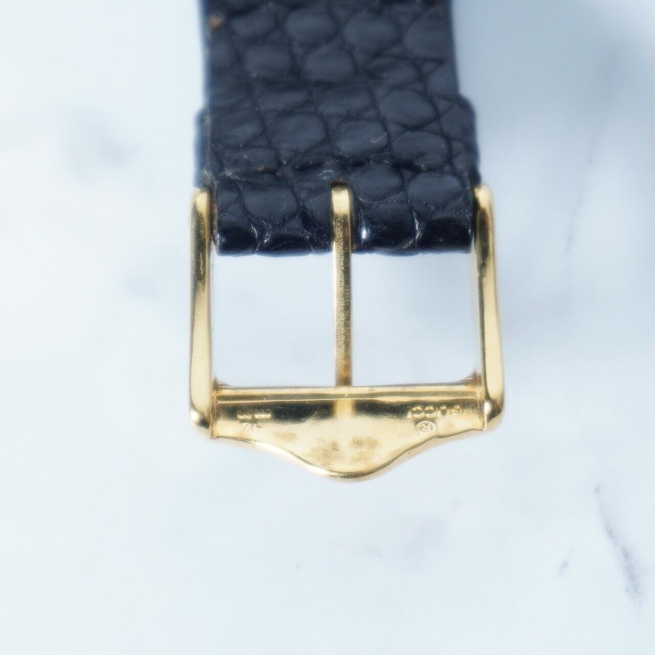 【GUCCI】グッチ 稼働品 レザー腕時計 black & gold