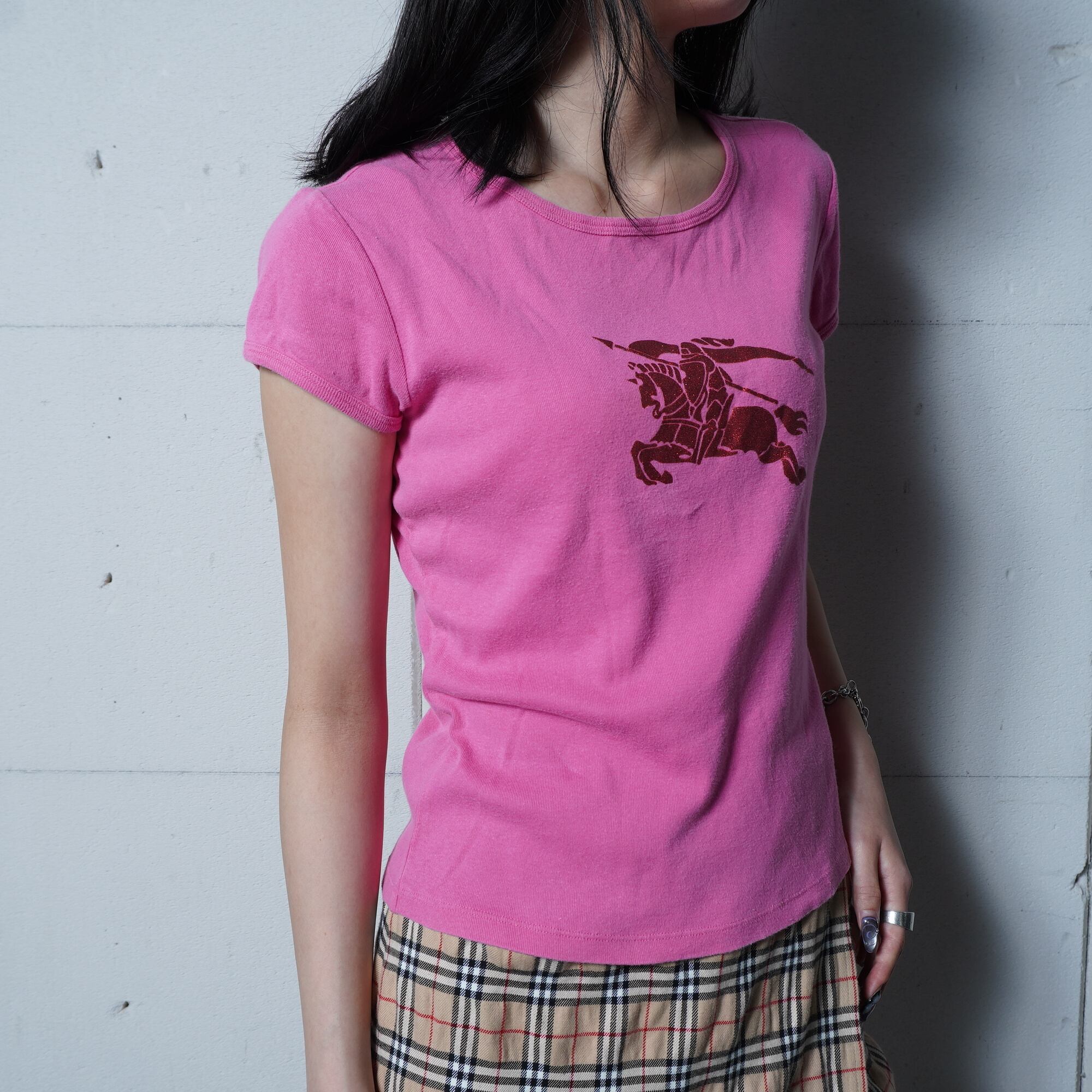 【Burberry】バーバリー "ホースロゴ"半袖Tシャツ pink