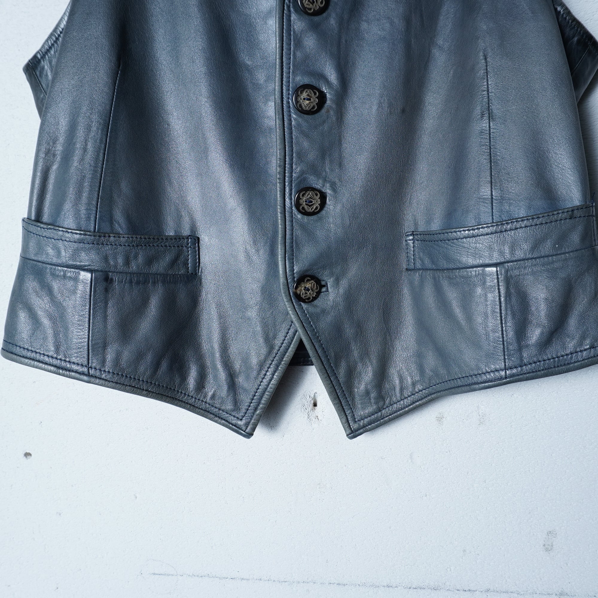 【LOEWE】ロエベ アナグラムボタン刻印ラムレザーベスト black