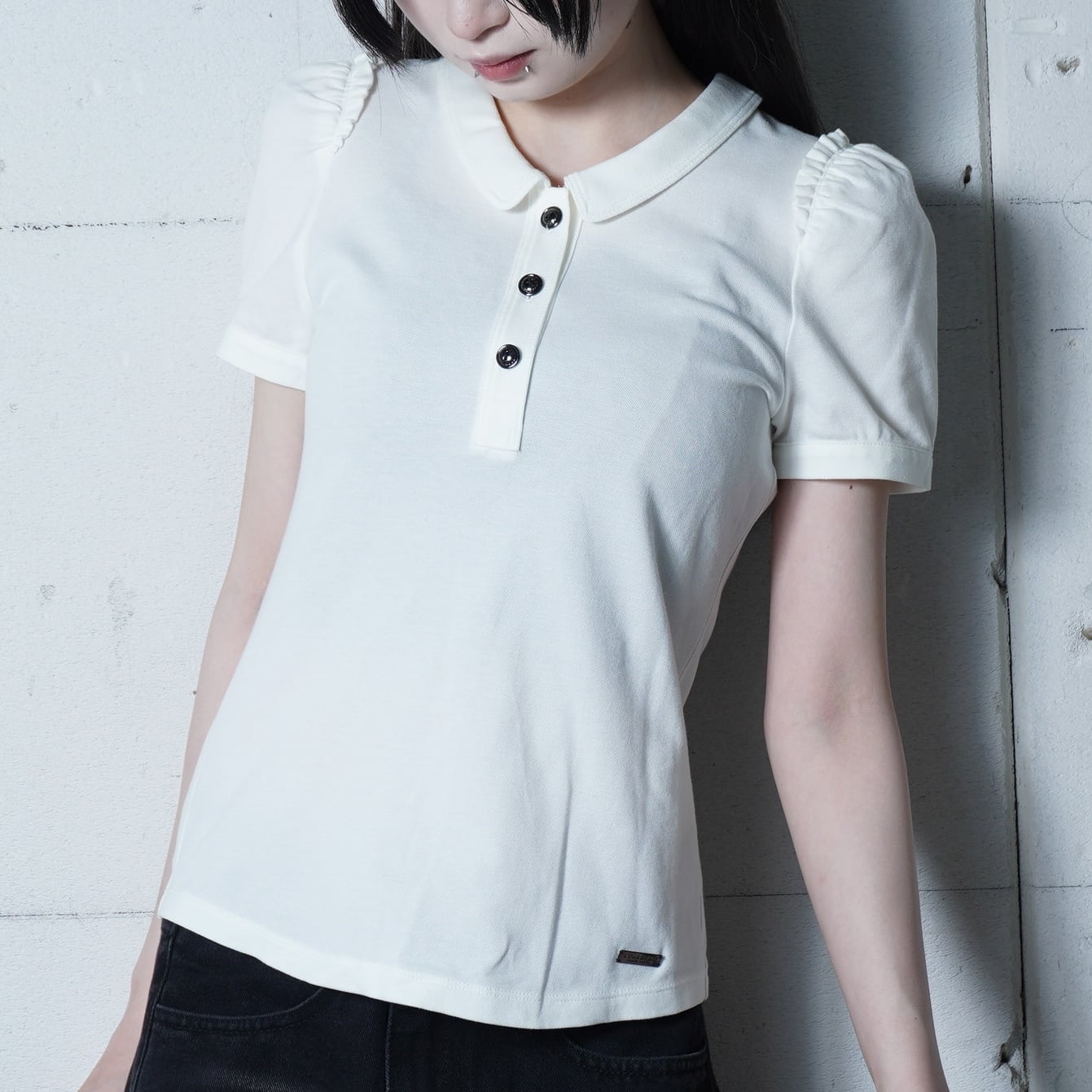 ・素材感が魅力のギャザーショルダーポロシャツ