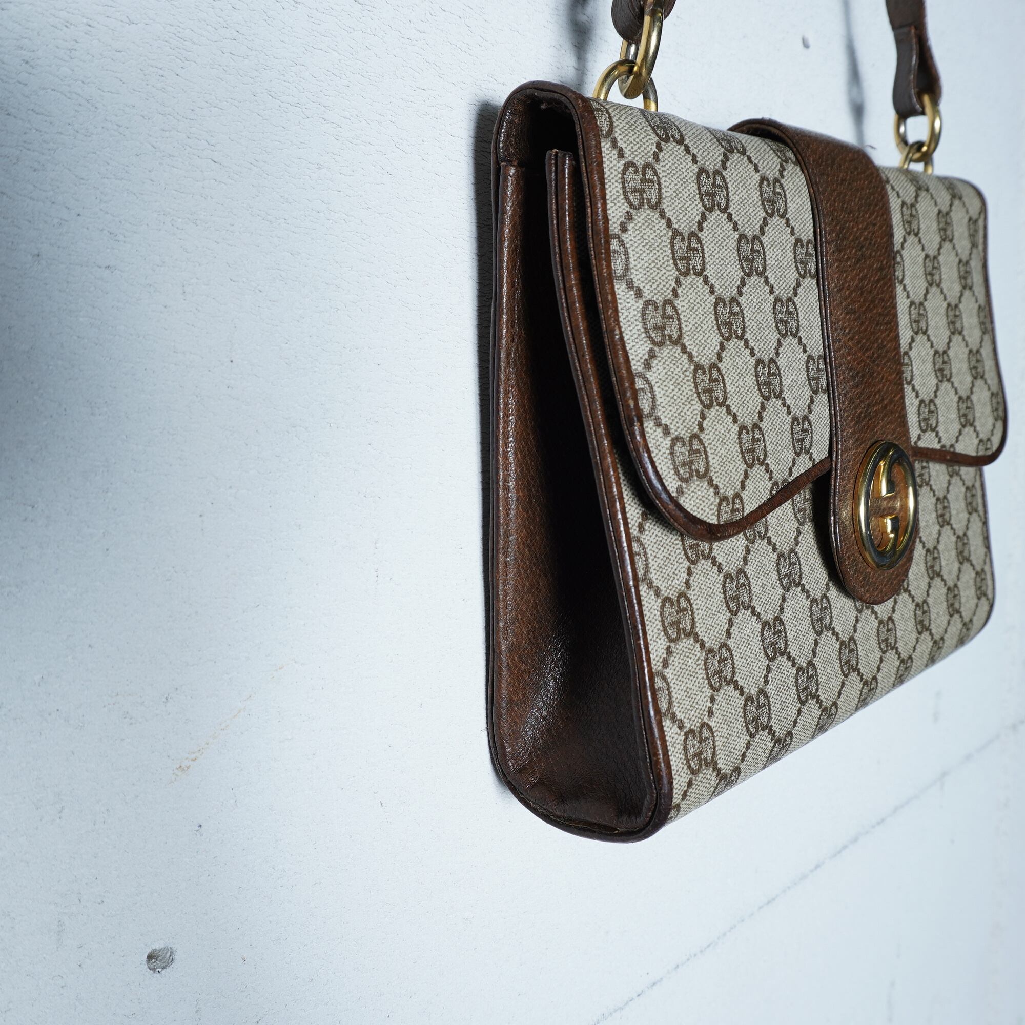 【GUCCI】グッチ "GG柄"GG金装飾レザーショルダーバッグ light brown