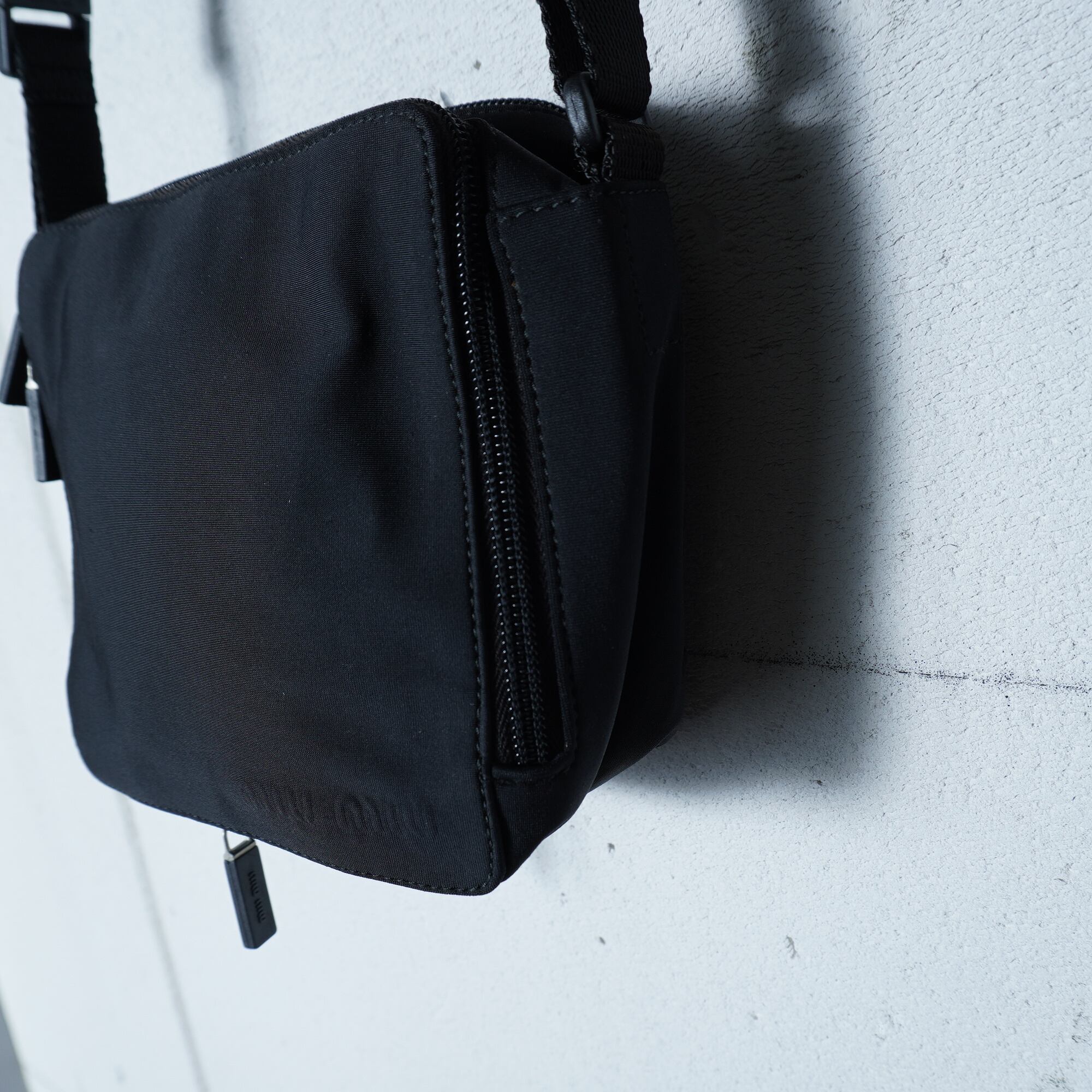 【miu miu】ミュウミュウ ロゴ入 ダブルポケットショルダーバッグ black