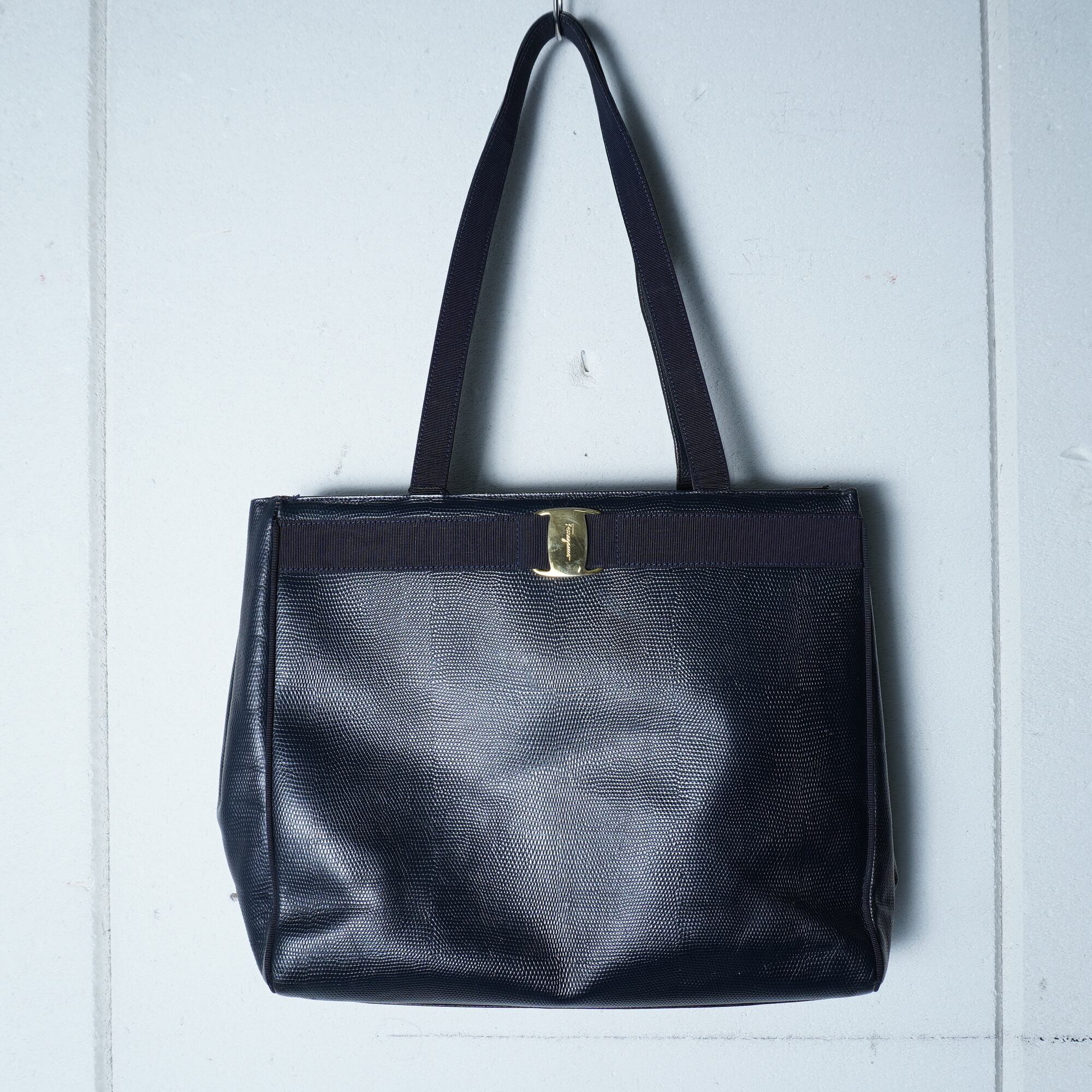 【Ferragamo】フェラガモ ロゴ入 ヴァラレザートートバッグ black