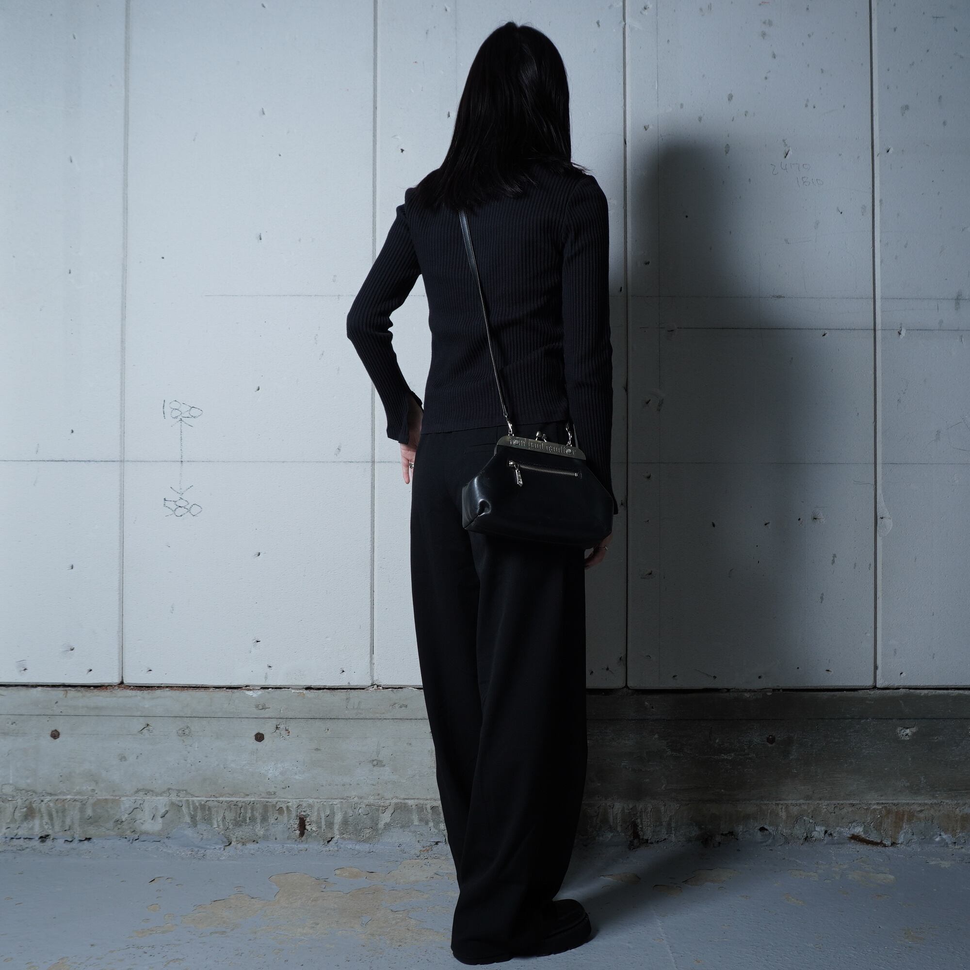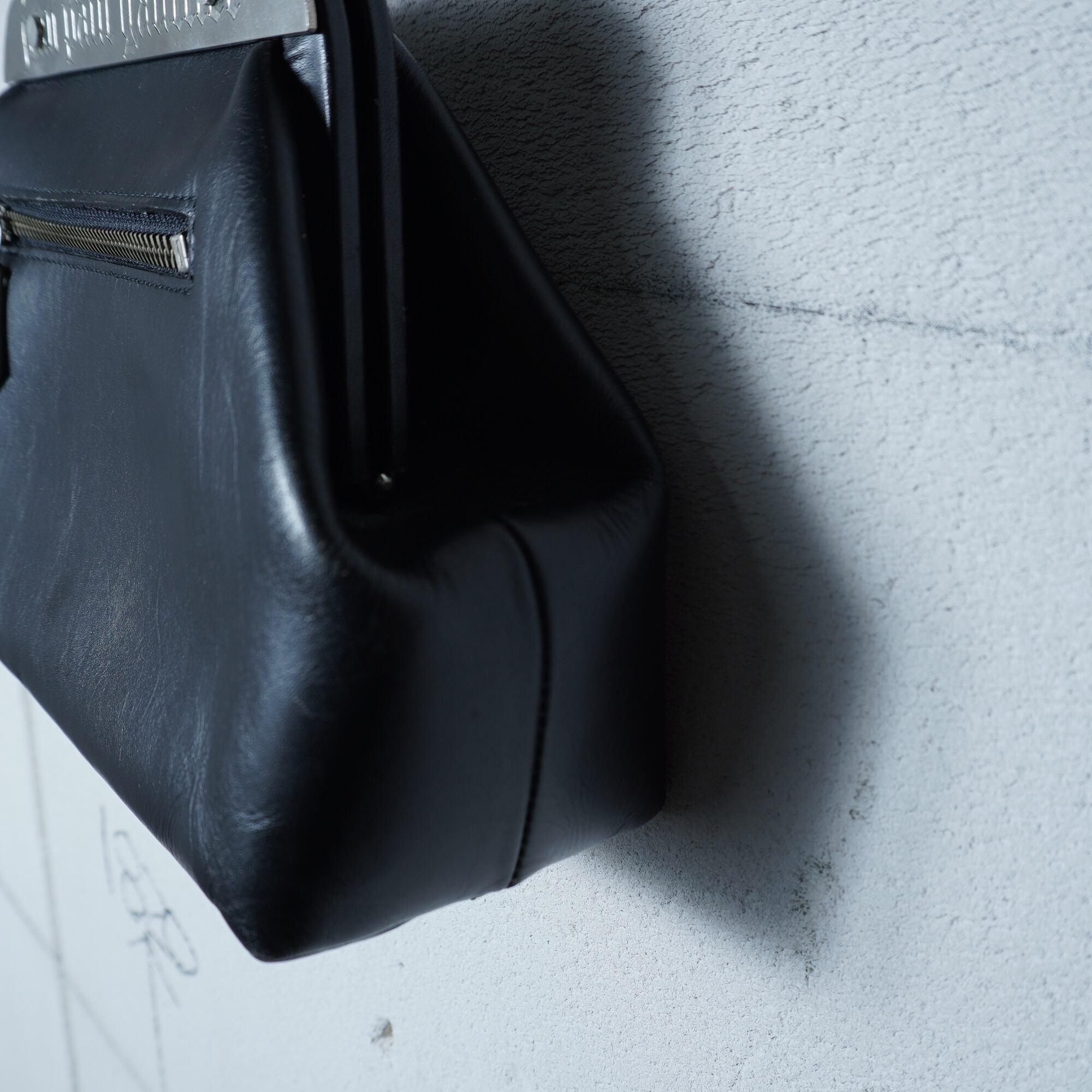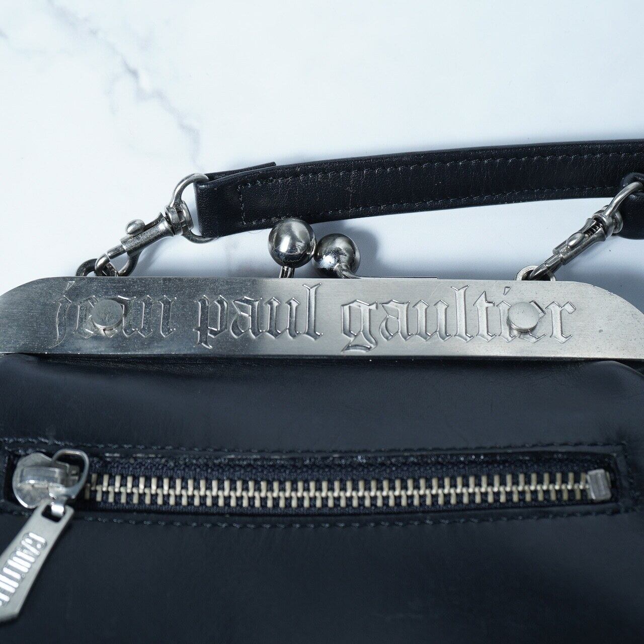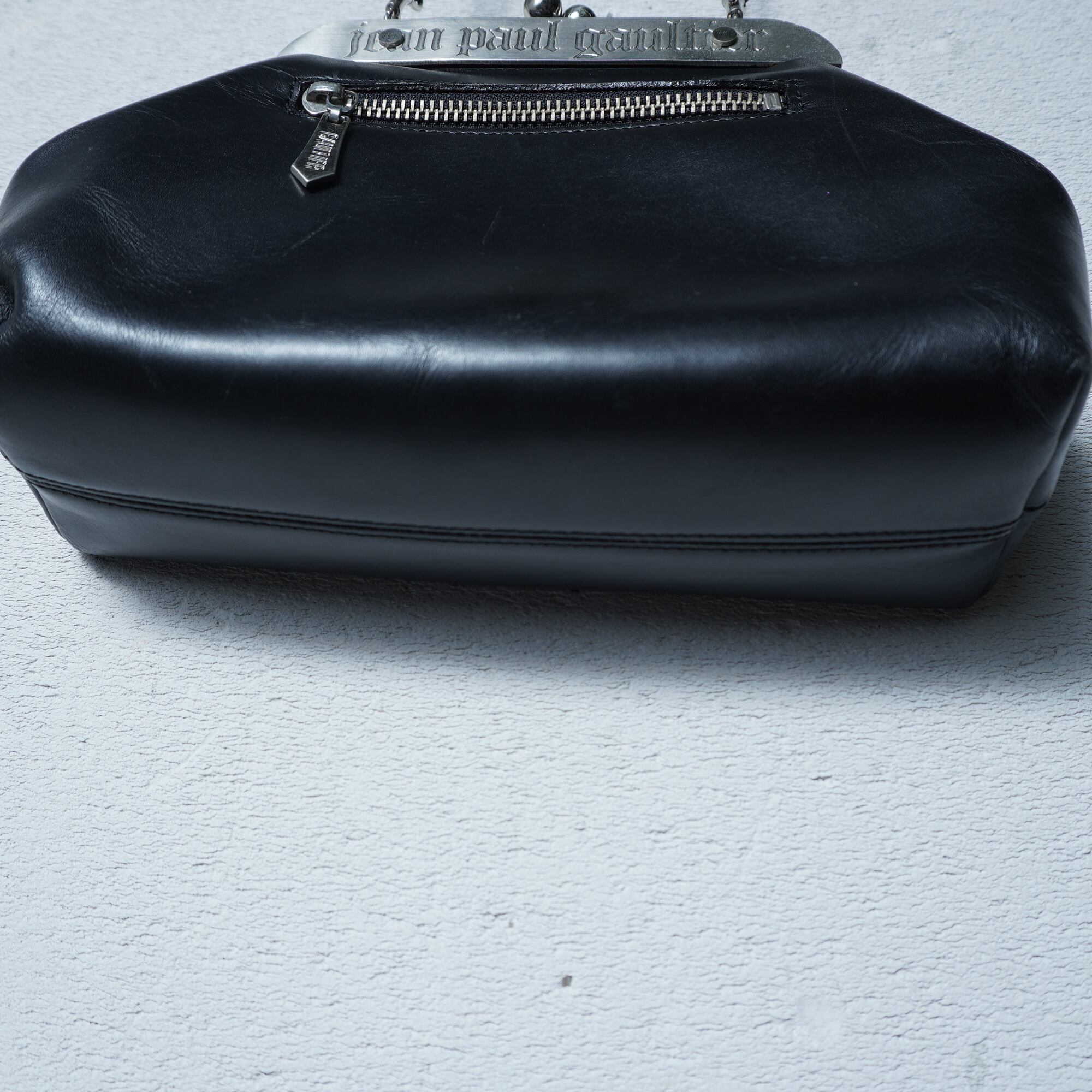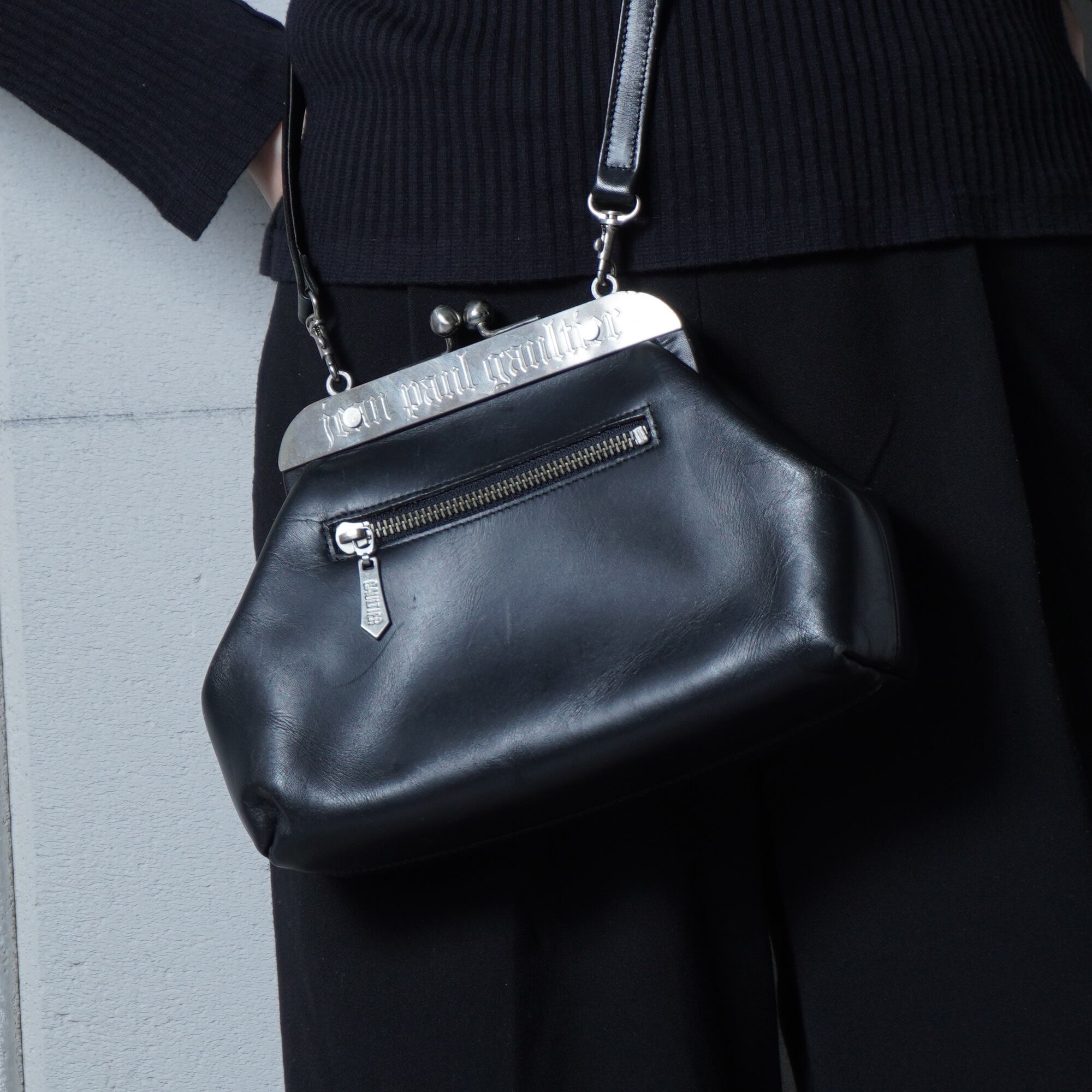 【Jean Paul GAULTIER】ジャンポールゴルチエ"ARCHIVE" メタルロゴがま口 レザーショルダーバッグ black