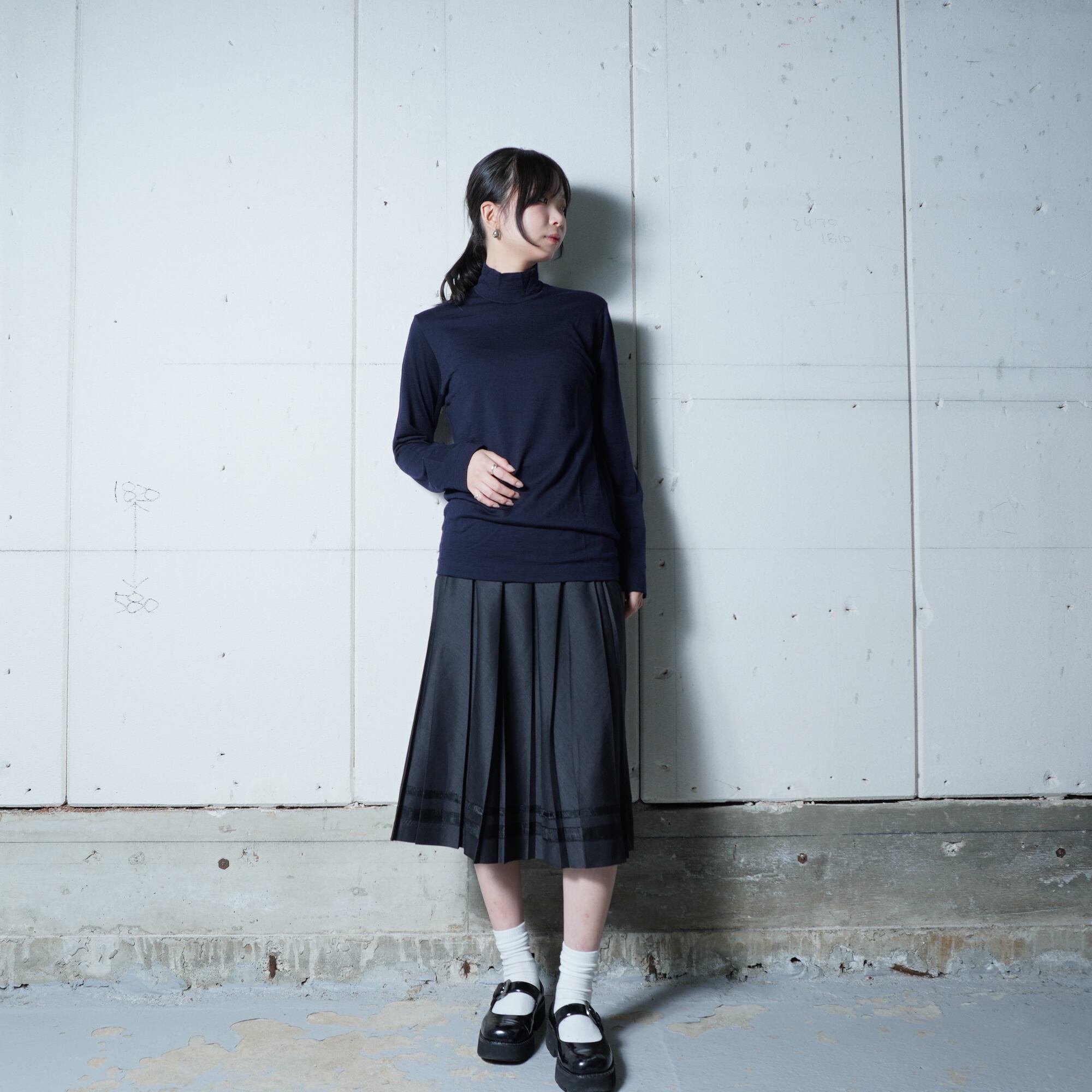 【COMME des GARÇONS】コムデギャルソン "95年製” 極美品 タグ付 WOOL100%”モックネックシャツ dark navy