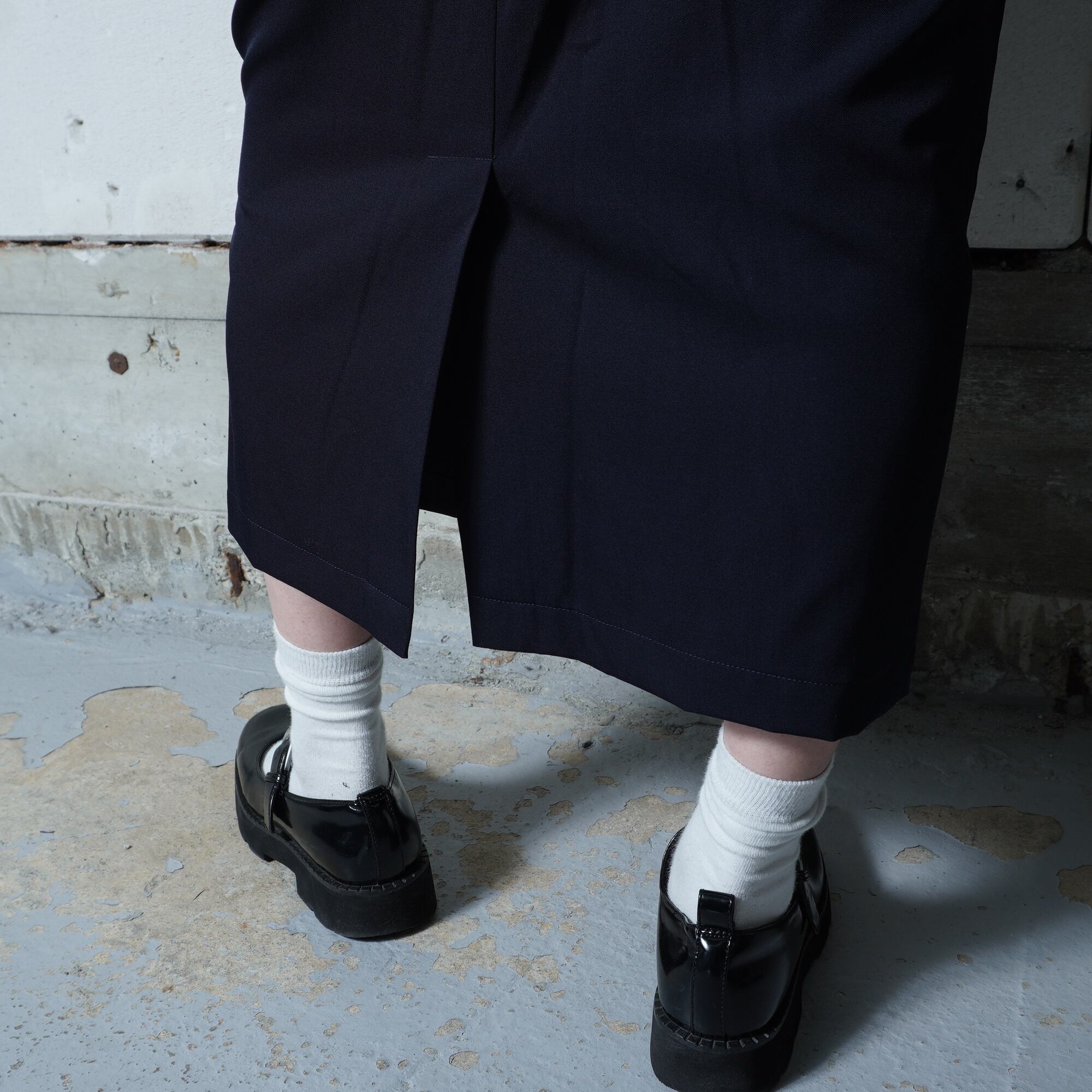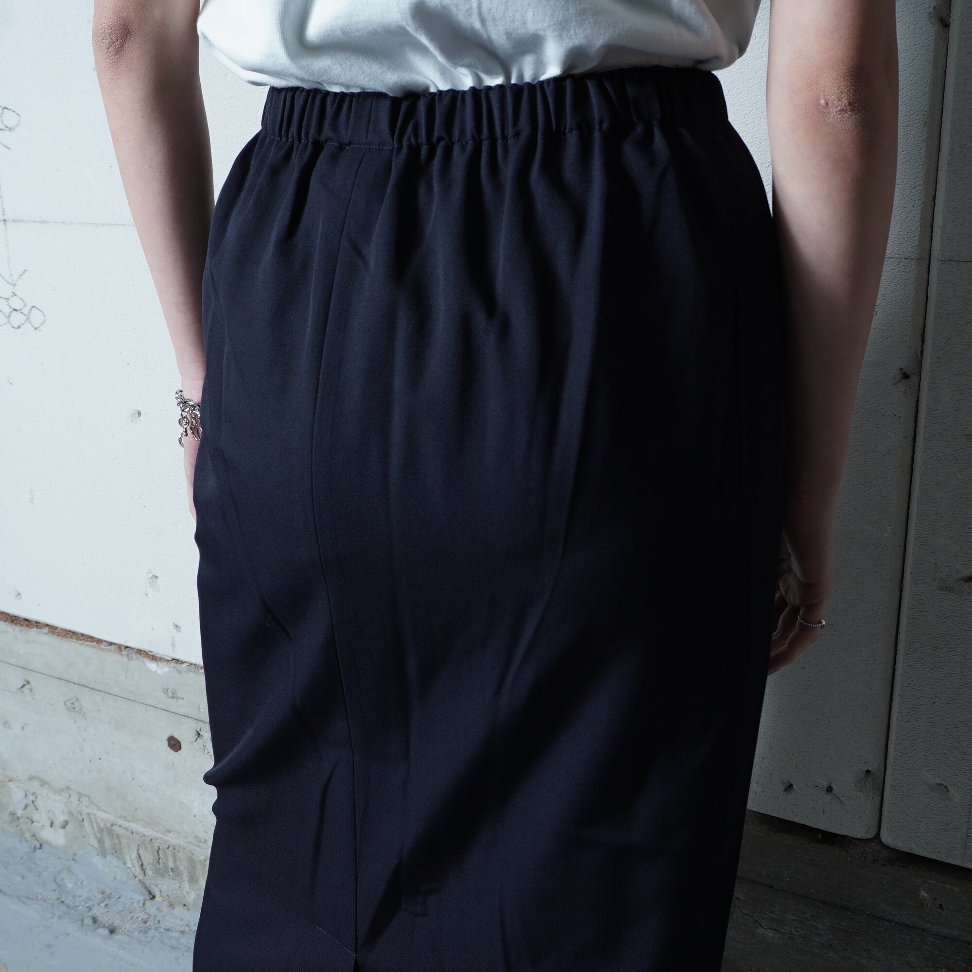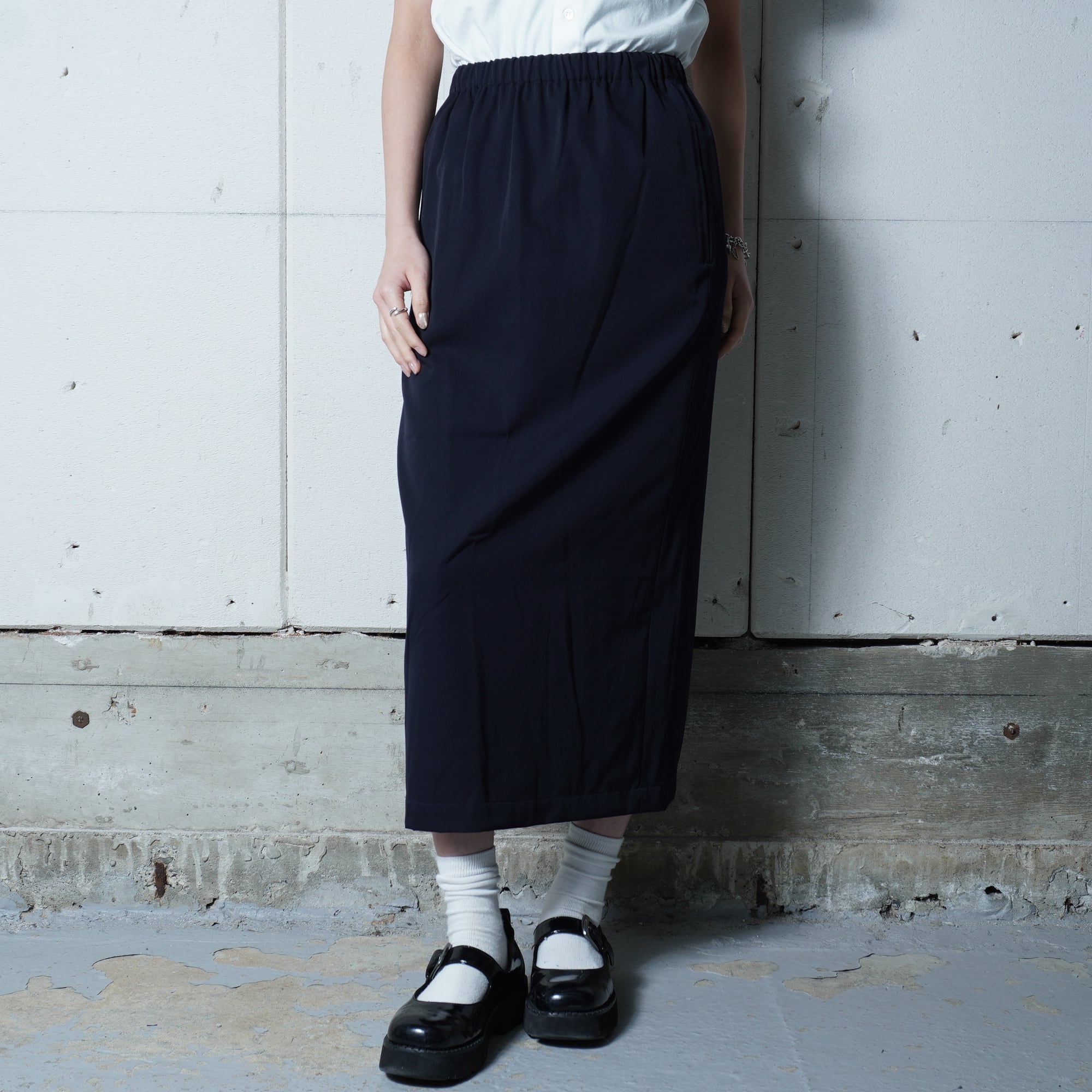 ・深みのあるダークネイビーが魅力的なロングスカートです。