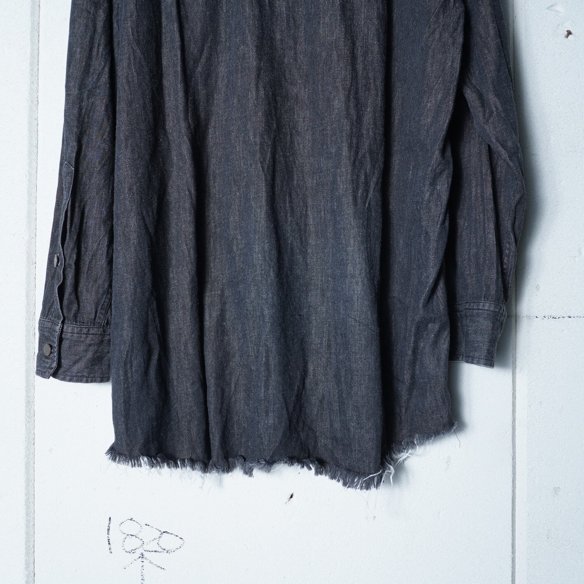 【Vivienne Westwood】ヴィヴィアンウエストウッド "オーブロゴボタン"切りっぱなしロングデニムシャツ black