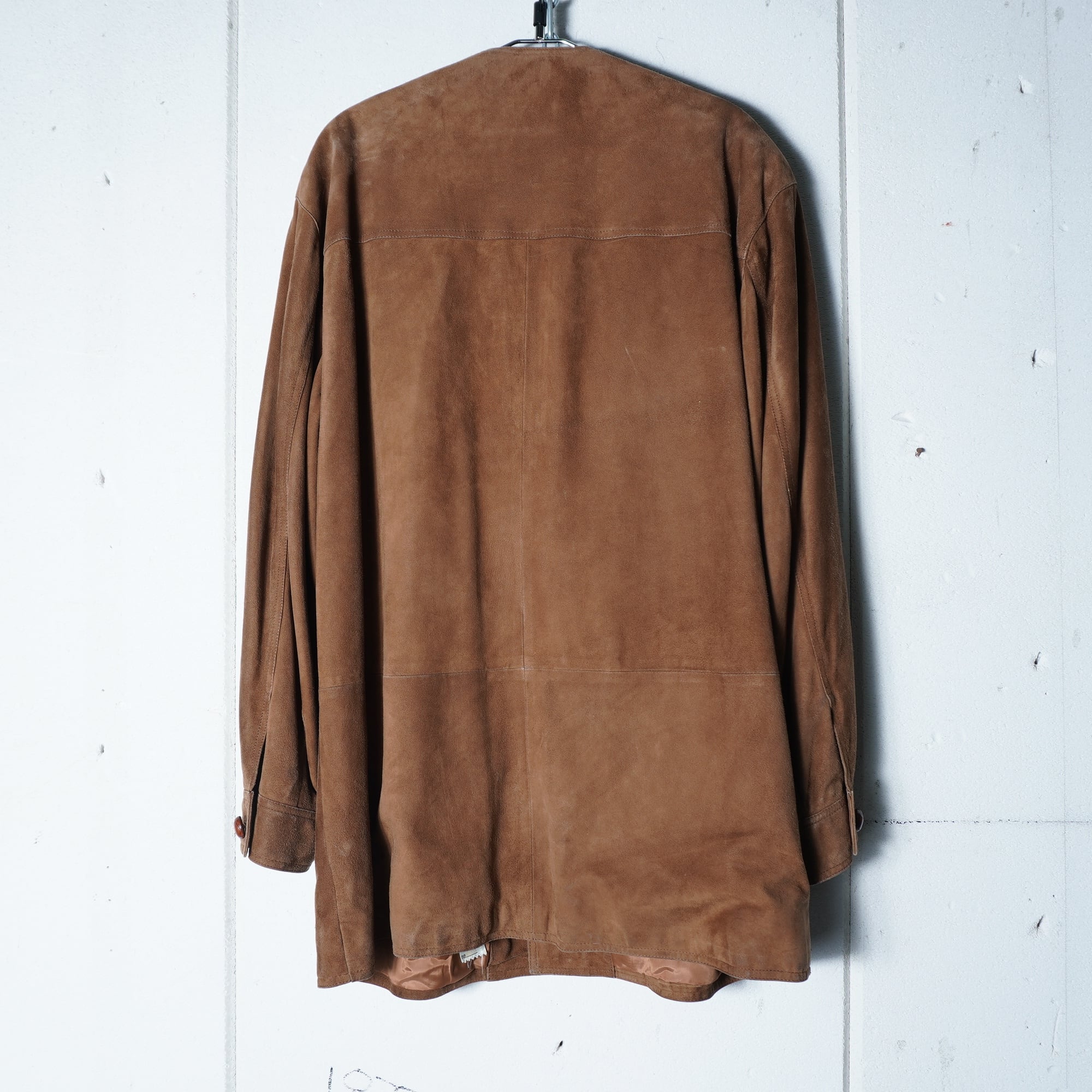【LOEWE】ロエベ アーガイル柄ノーカラースエードレザーコート brown