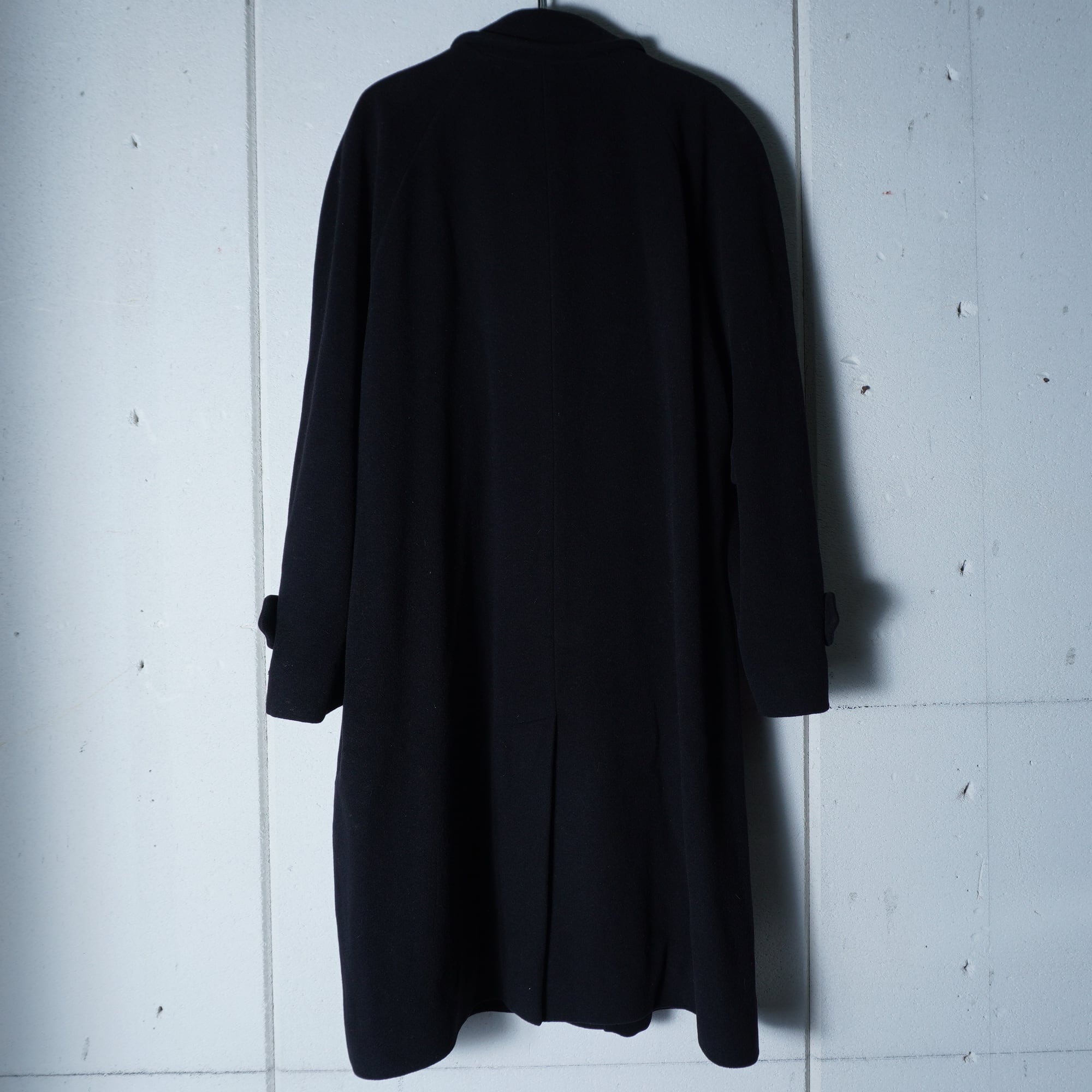 ・カシミア混ウールを使用した洗練されたシルエットのバルマカーンコート。シンプルなデザインながら、贅沢な素材感が存在感を引き立てます。