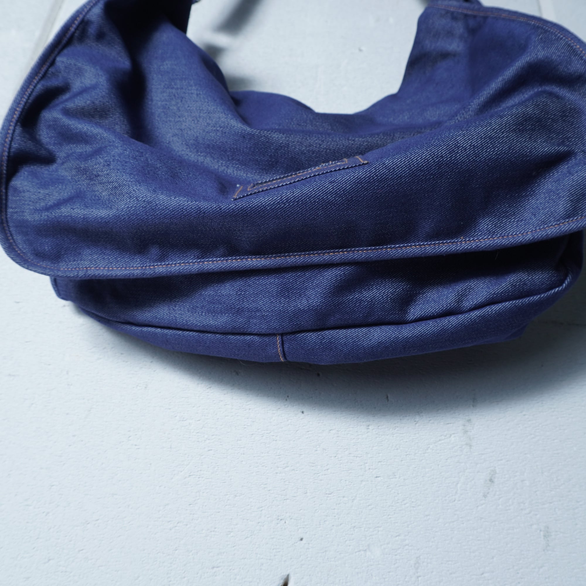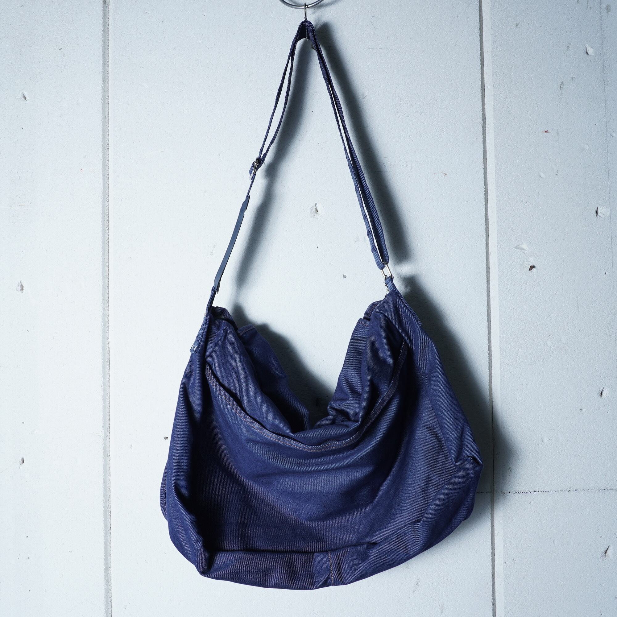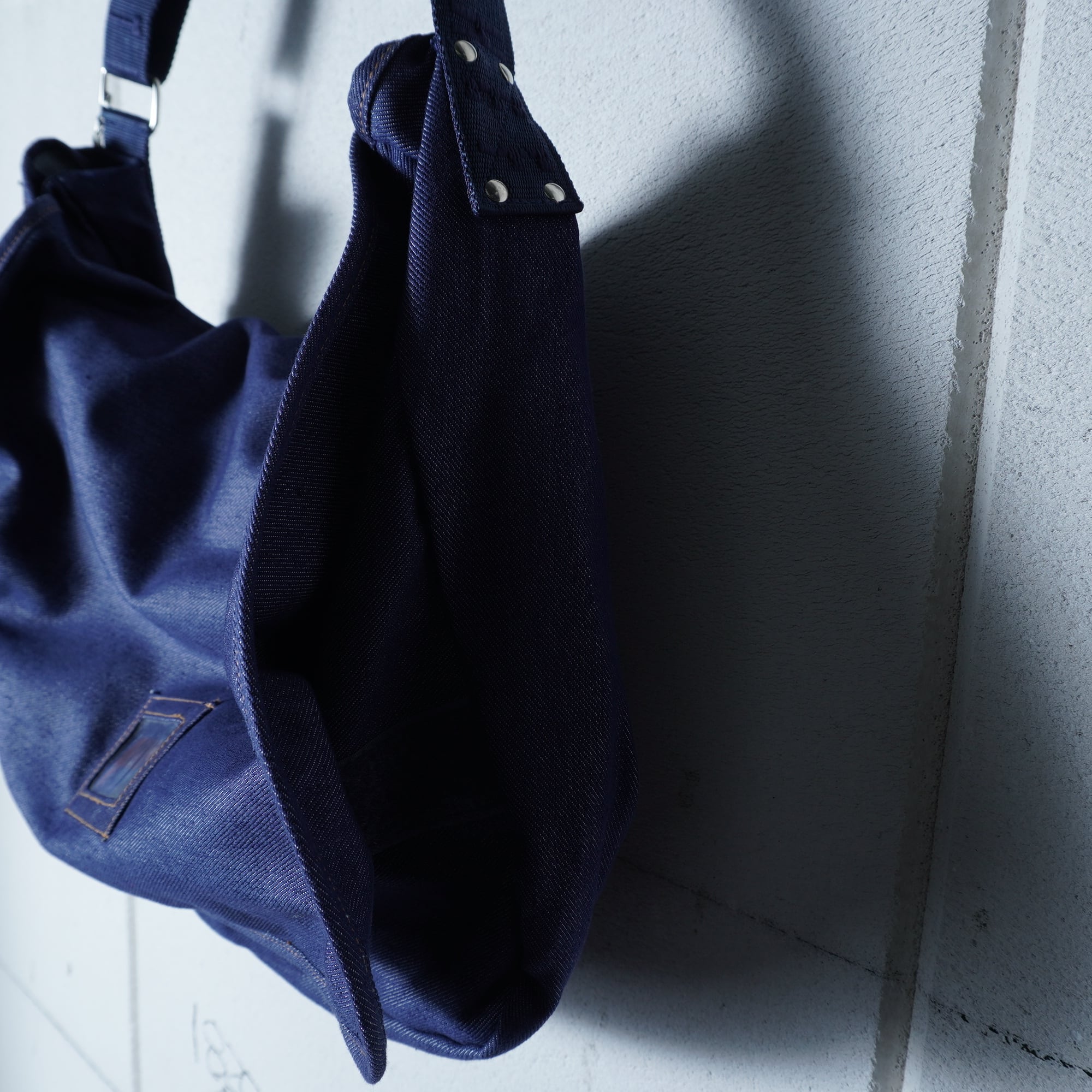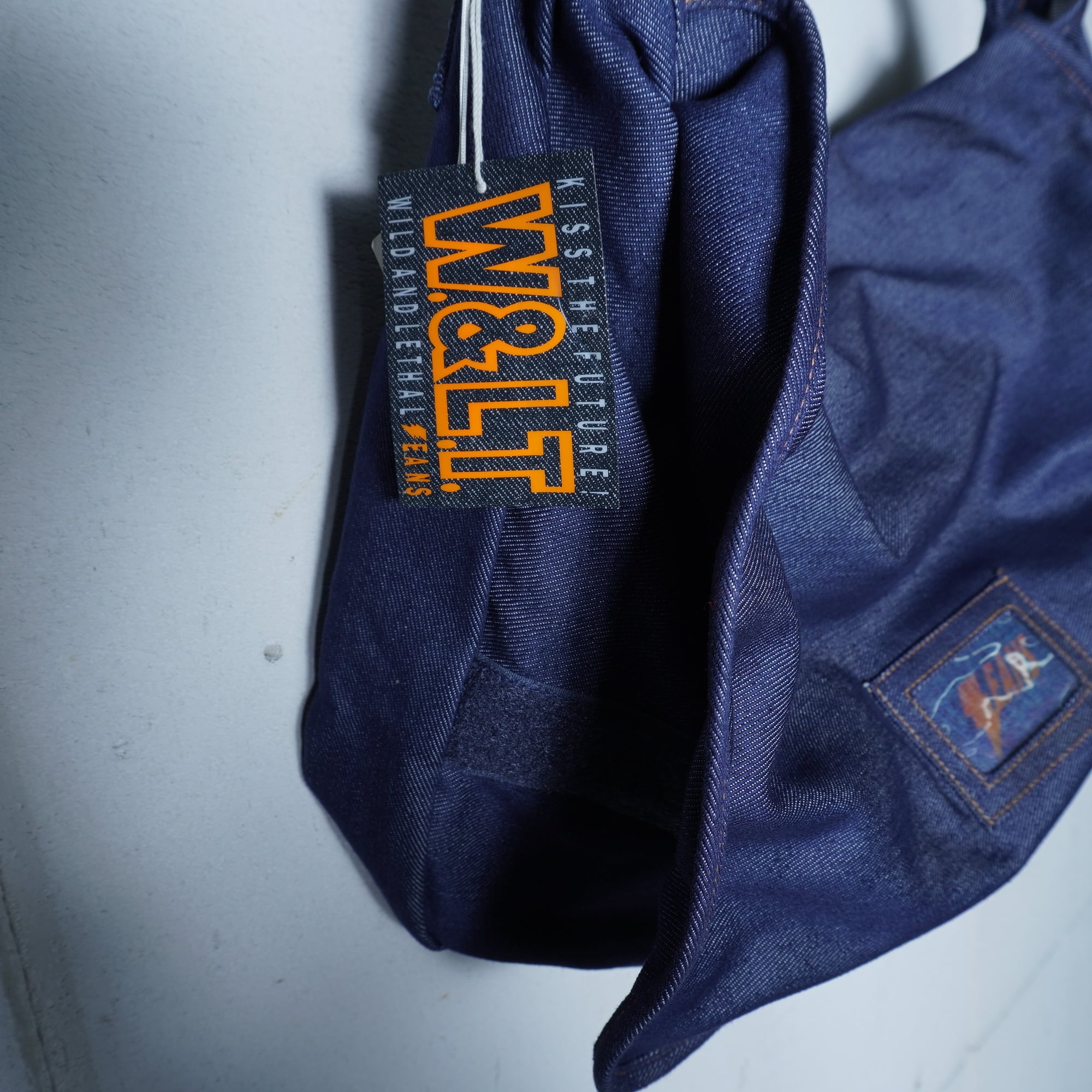 ・洗練されたスタイルを演出する【W<】ウォルト "ARCHIVE"極美品 タグ付ロゴ入デニムメッセンジャーバッグ indigo