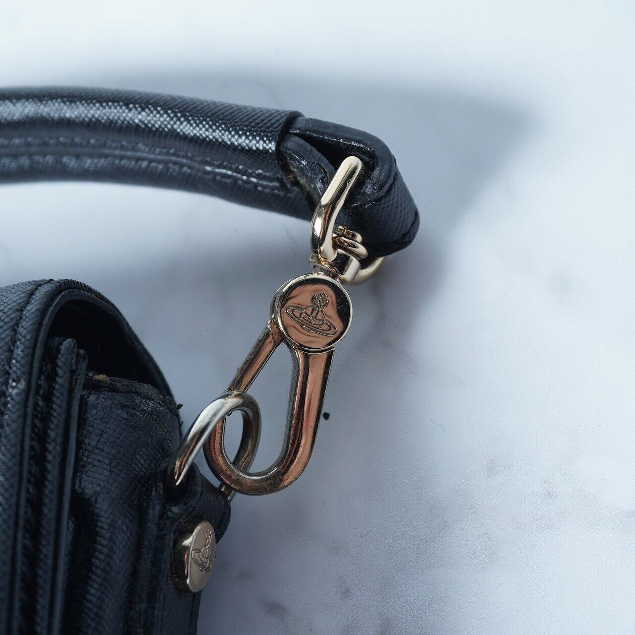 【Vivienne Westwood】ヴィヴィアンウエストウッド ”オープンロゴ刺繡”サフィアーノレザーハンドバッグ black