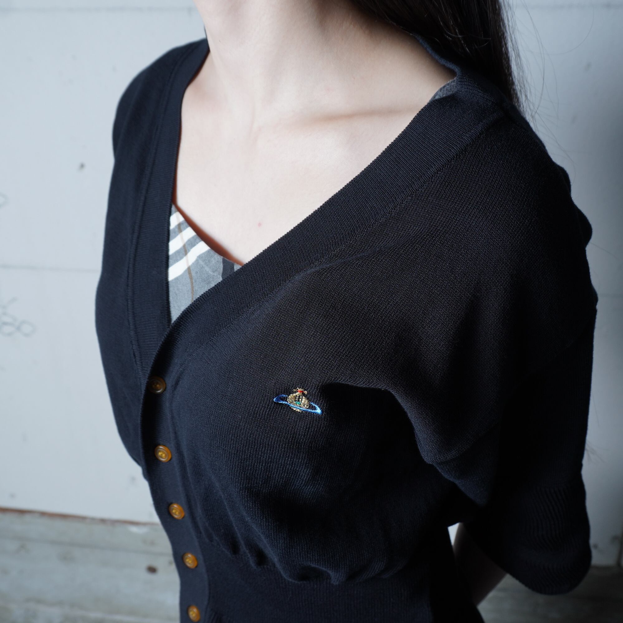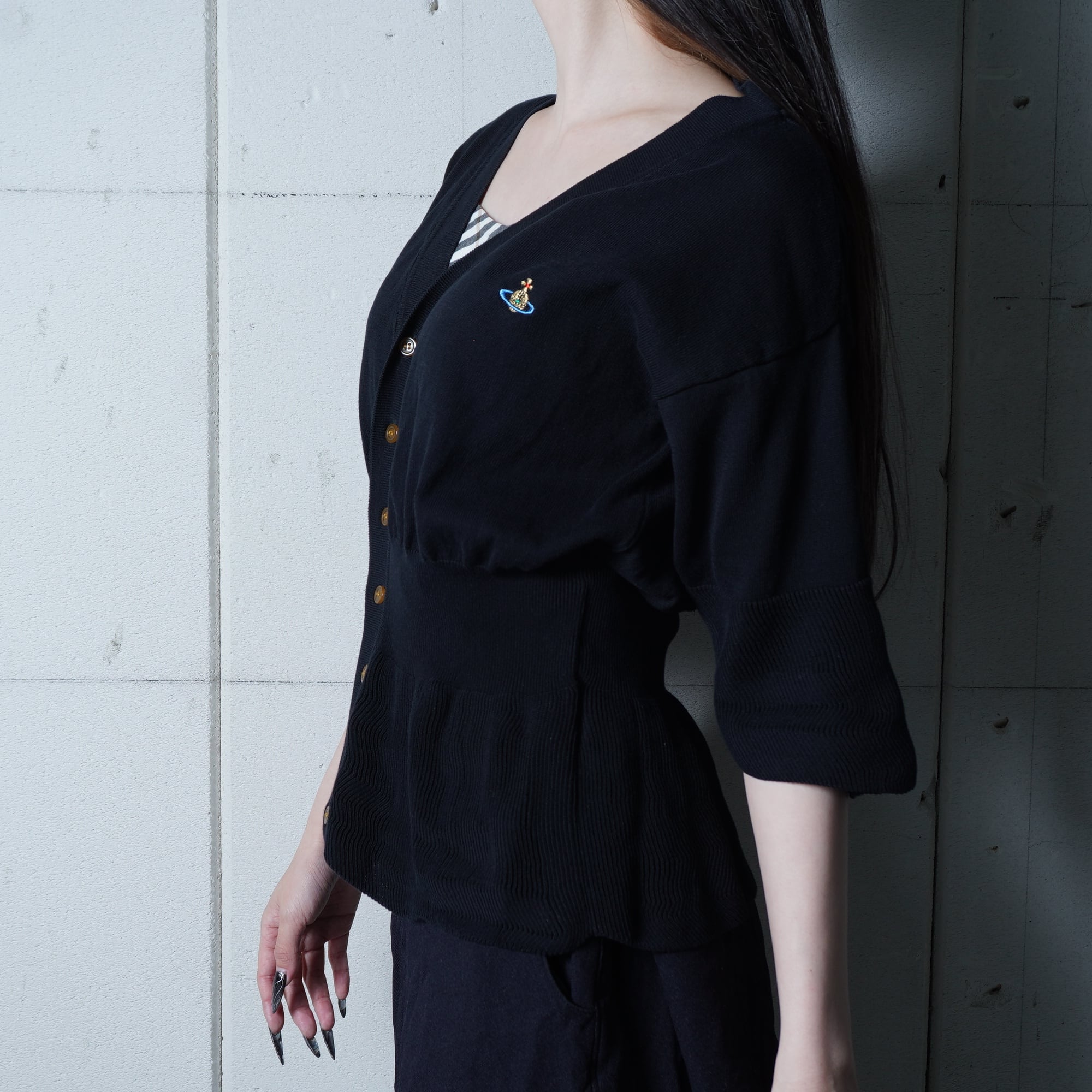 【Vivienne Westwood】ヴィヴィアンウエストウッド ”オーブロゴ刺繡” コットンニットカーディガン black
