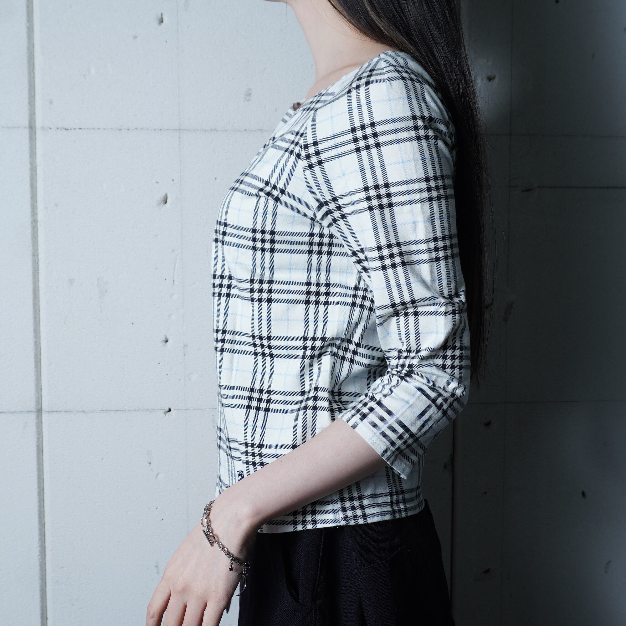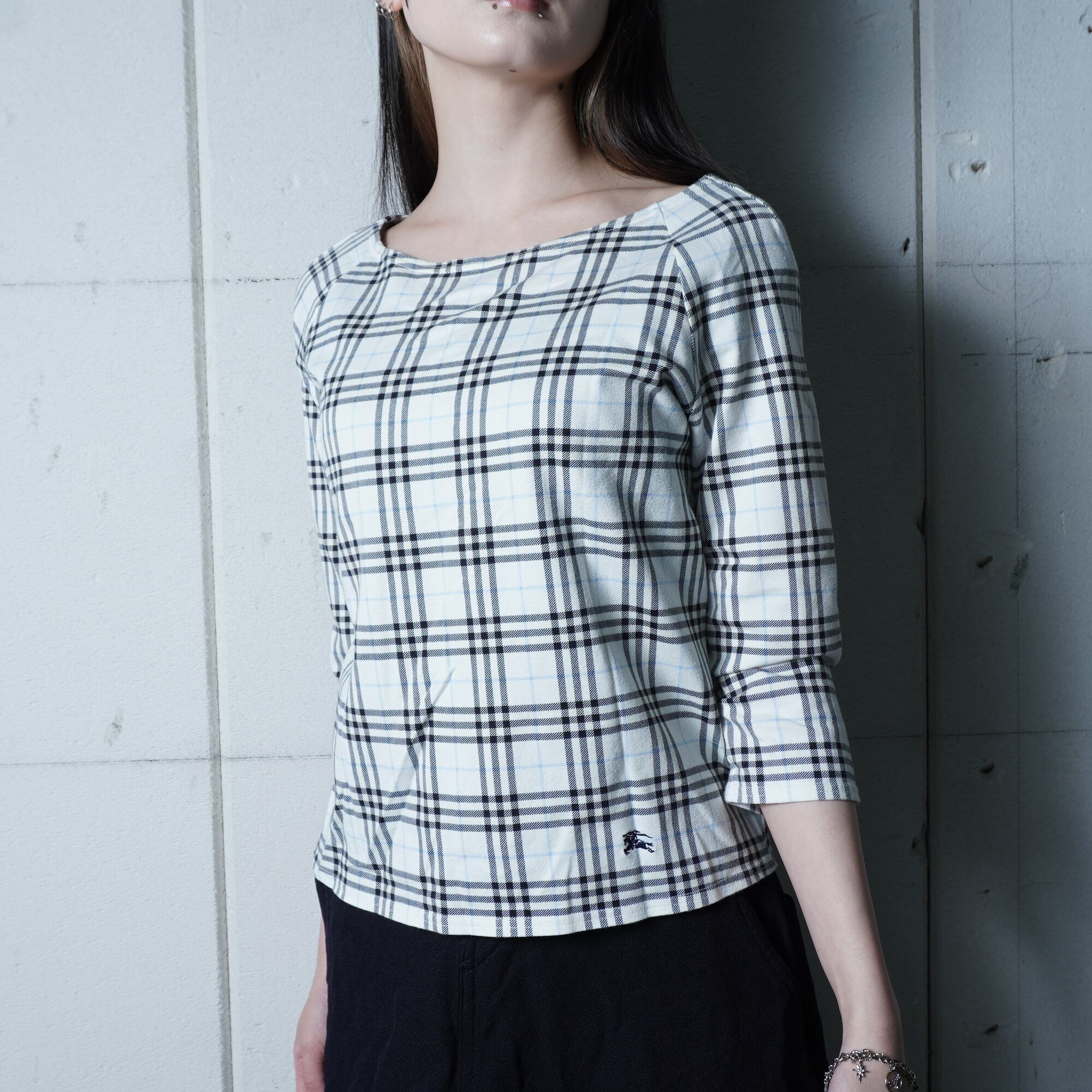 【BURBERRY】バーバリー ”ホースロゴ刺繍” チェックカットソー white