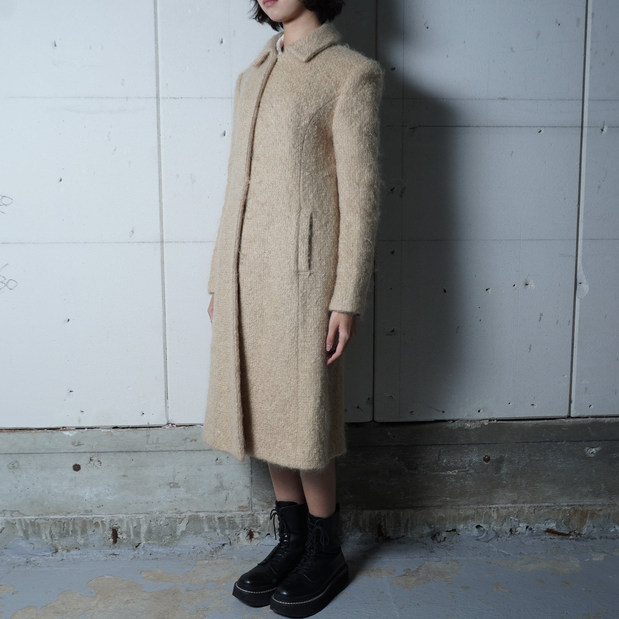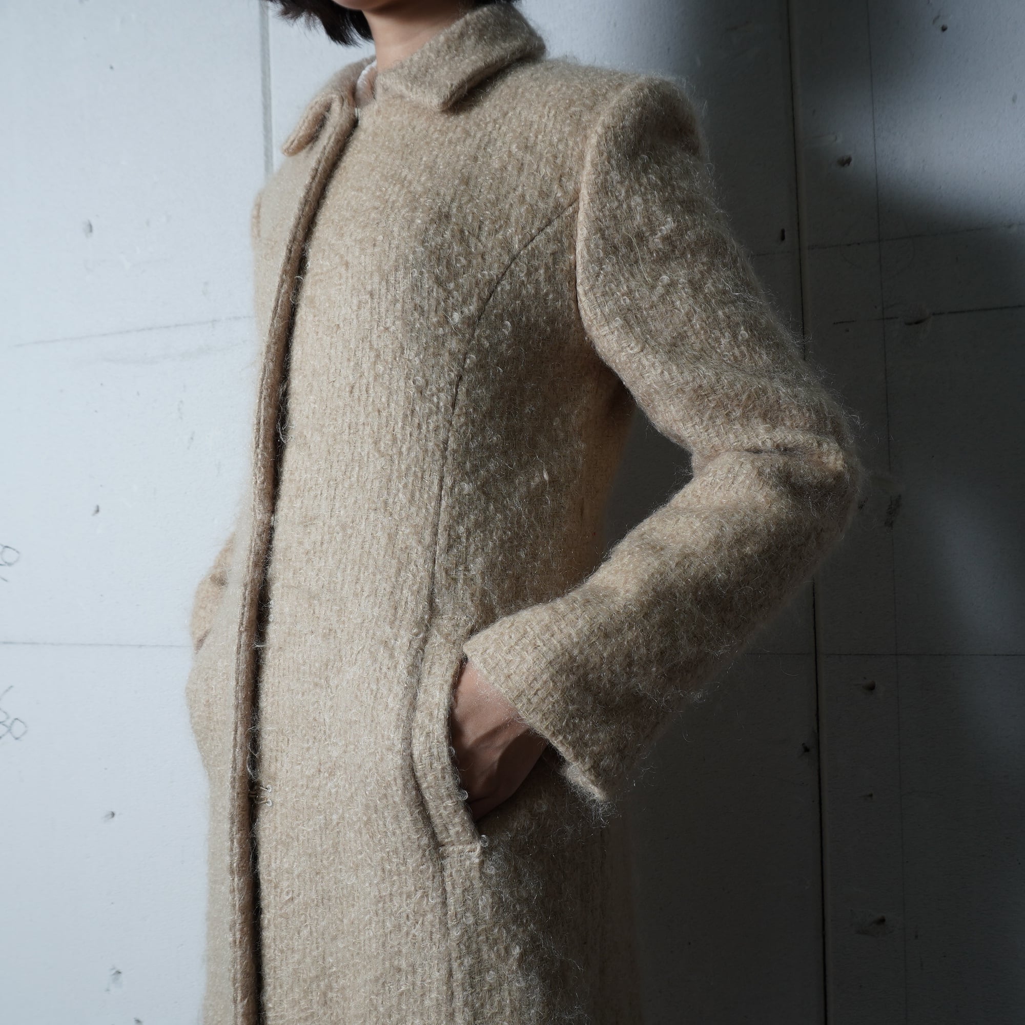 ・モヘア混ウール素材が織りなす、柔らかで保温性に優れたロングコート