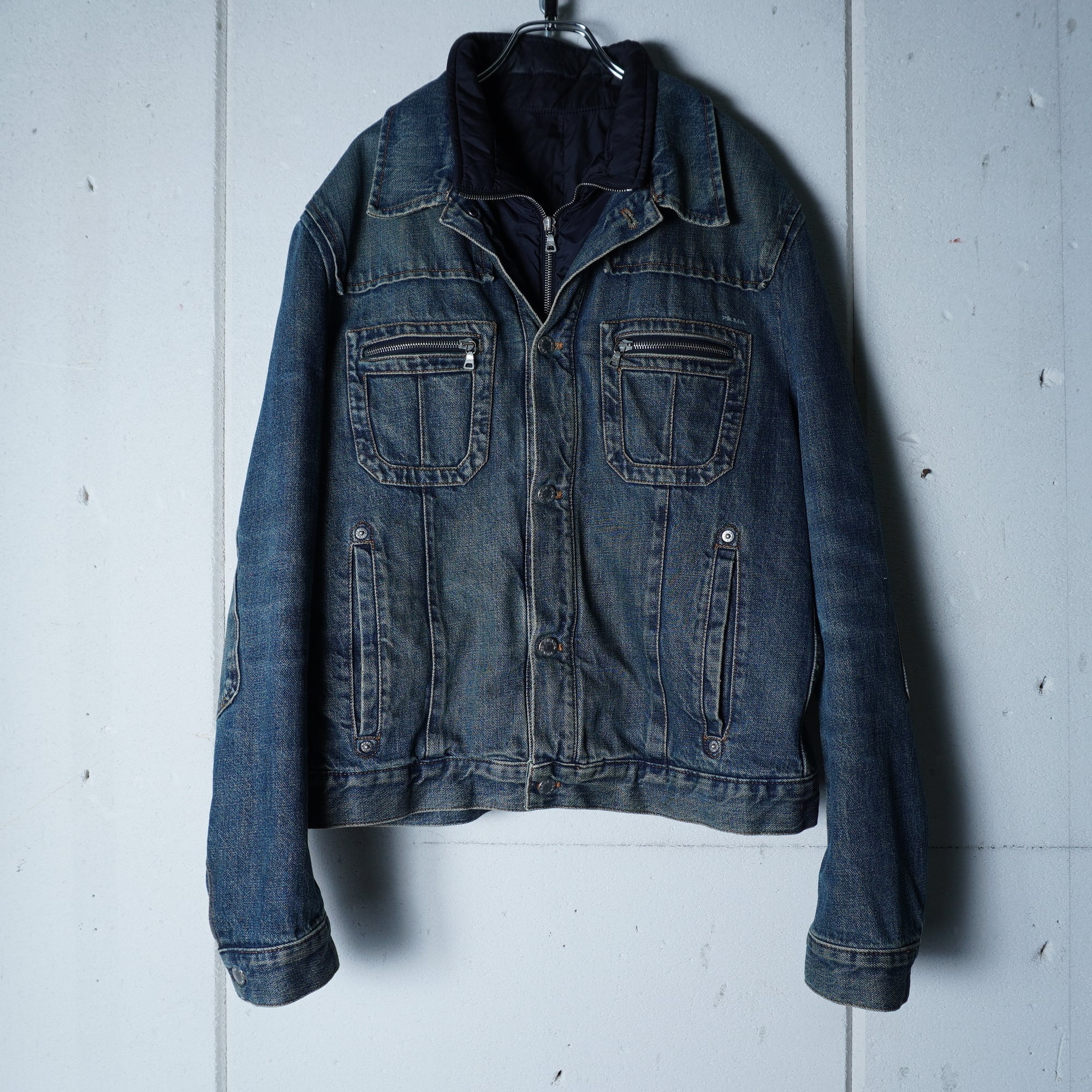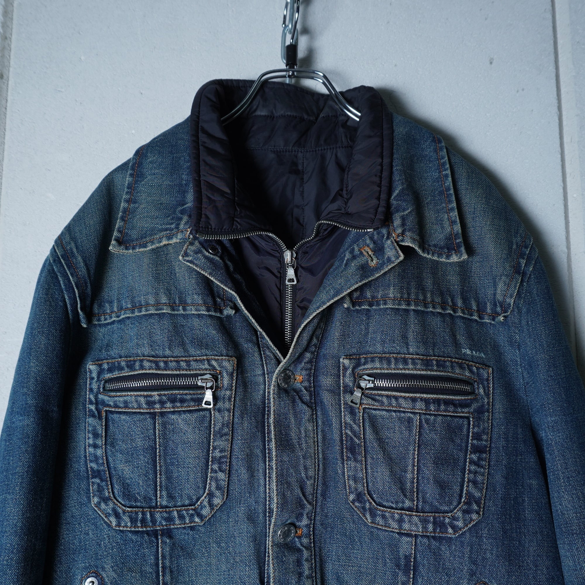 【PRADA】プラダ archive ”ロゴボタン刻印入”ダウンライナーデニムジャケット indigo