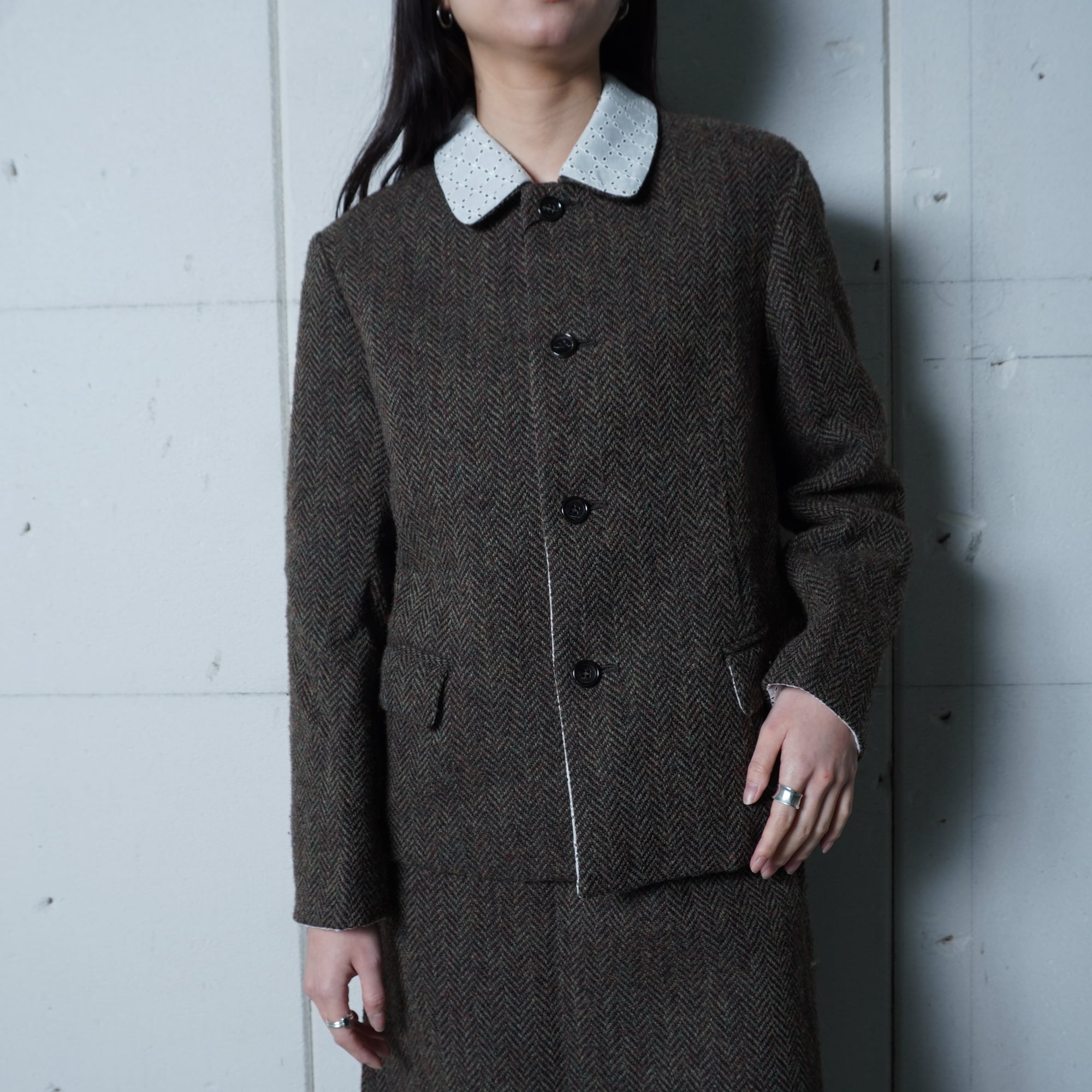 【COMME des GARÇONS】コムデギャルソン ”極美品” 99年製 タグ付 ヘリンボーンリバーシブルジャケット brown&white