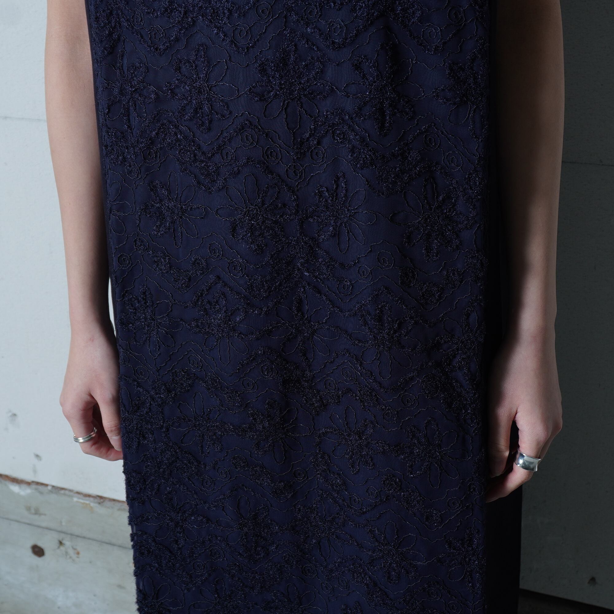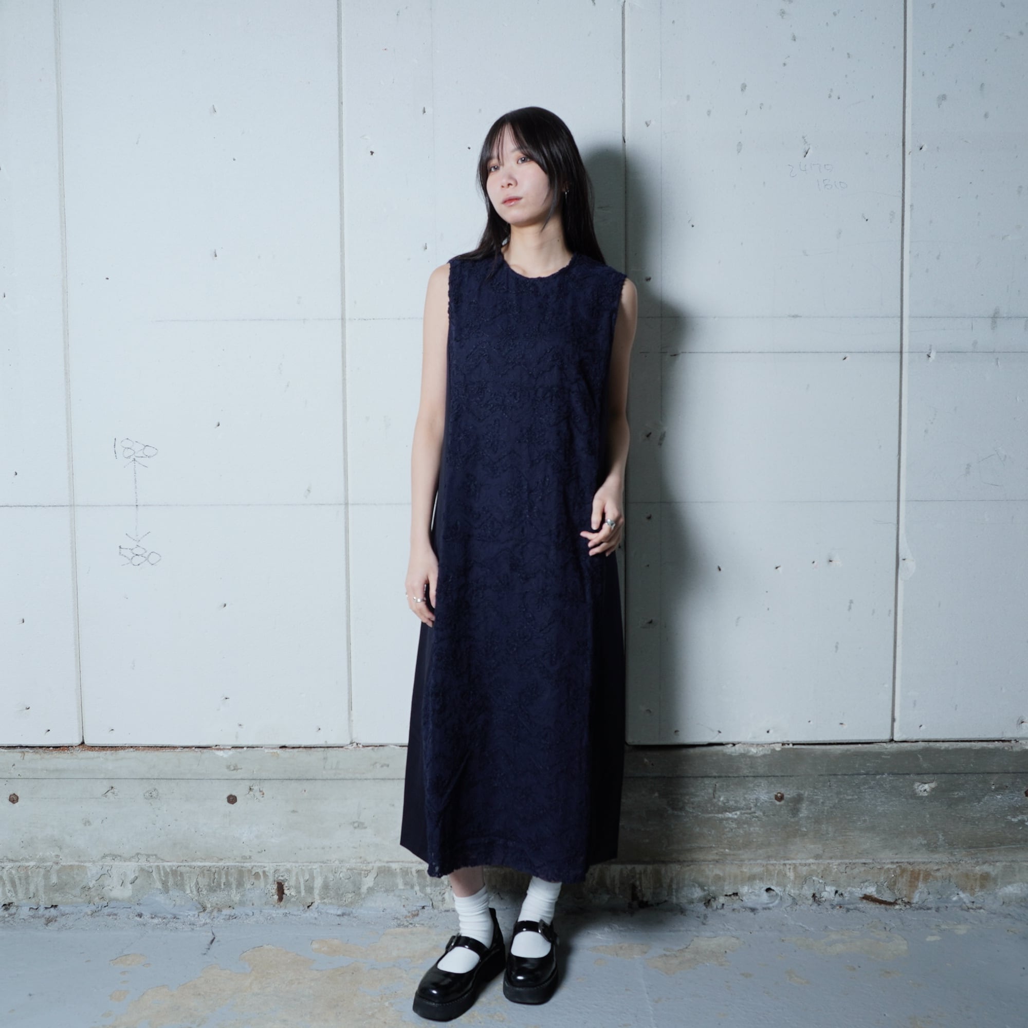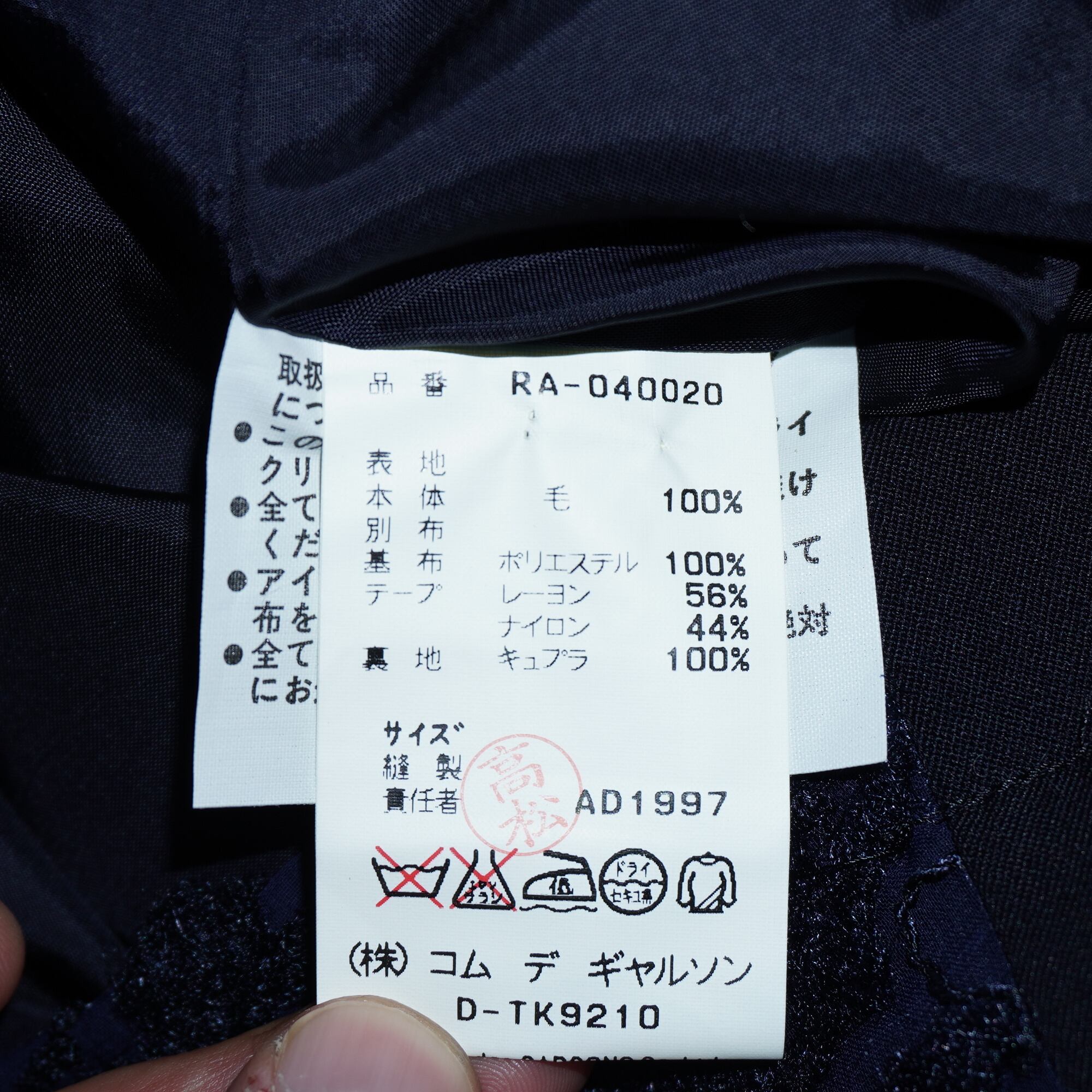 【COMME des GARÇONS】コムデギャルソン "極美品” 97年製 WOOL100%フラワー刺繍ノースリーブワンピース navy