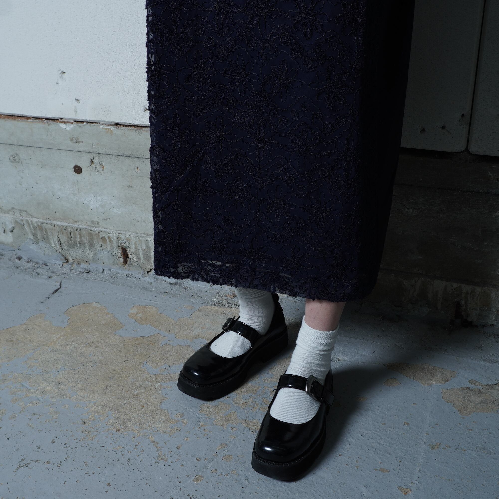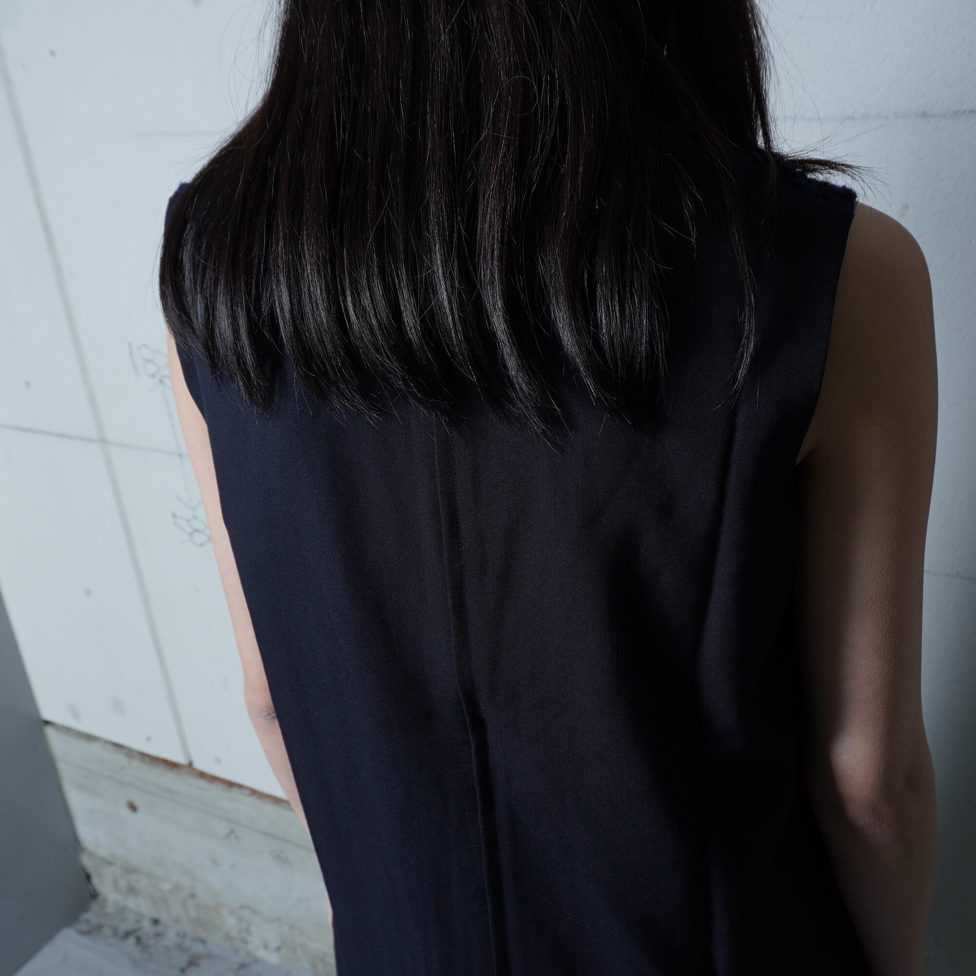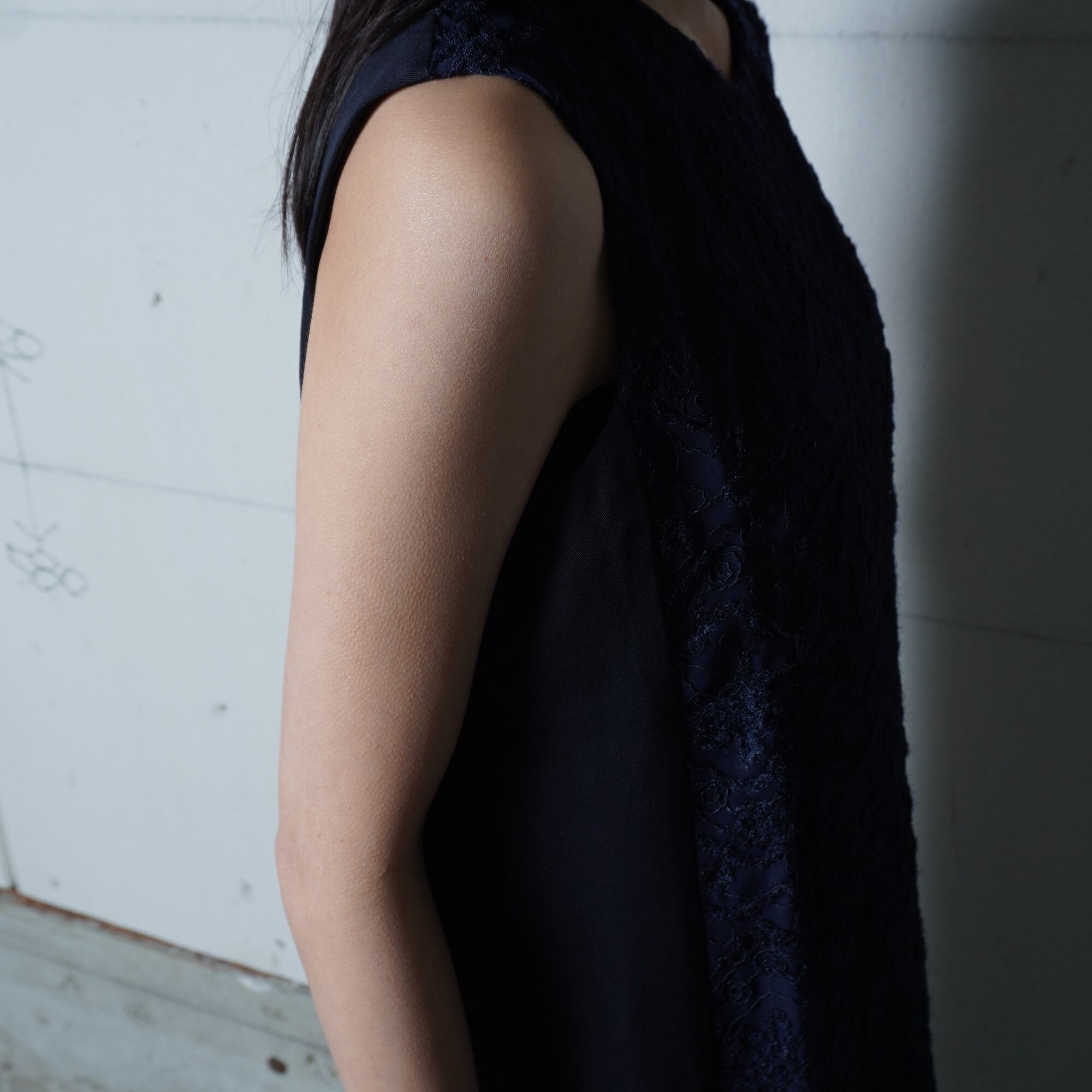 【COMME des GARÇONS】コムデギャルソン "極美品” 97年製 WOOL100%フラワー刺繍ノースリーブワンピース navy