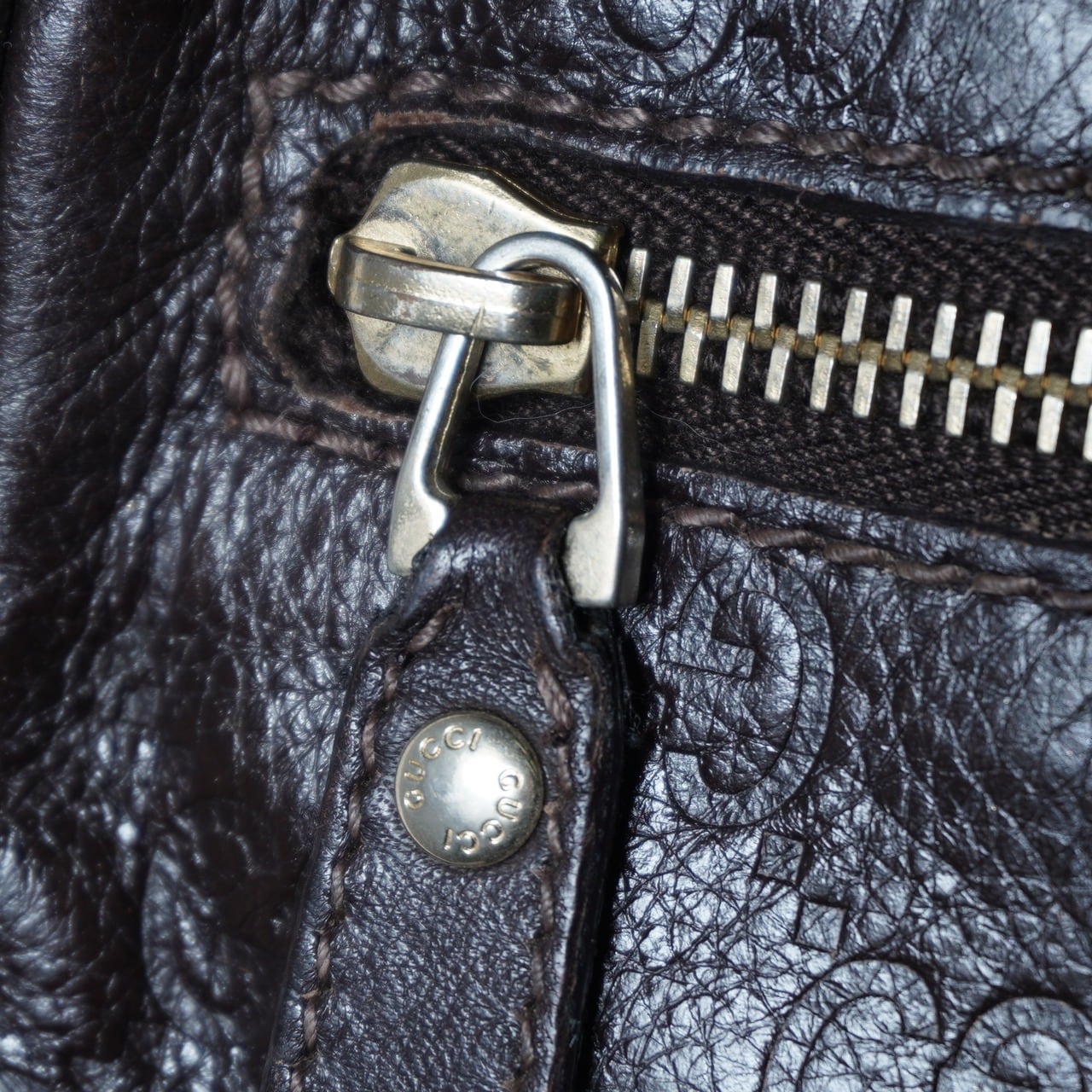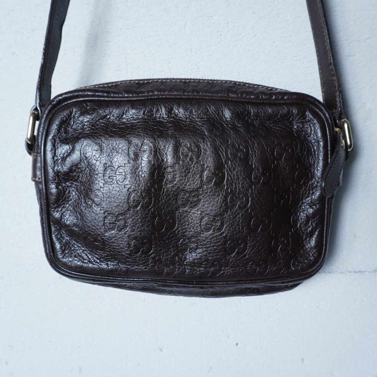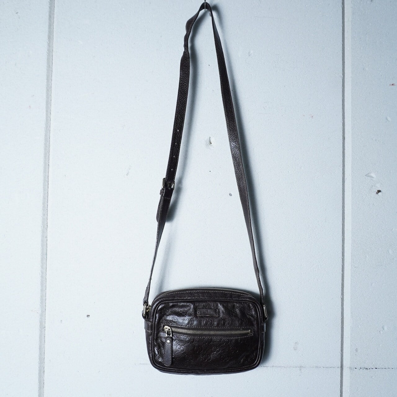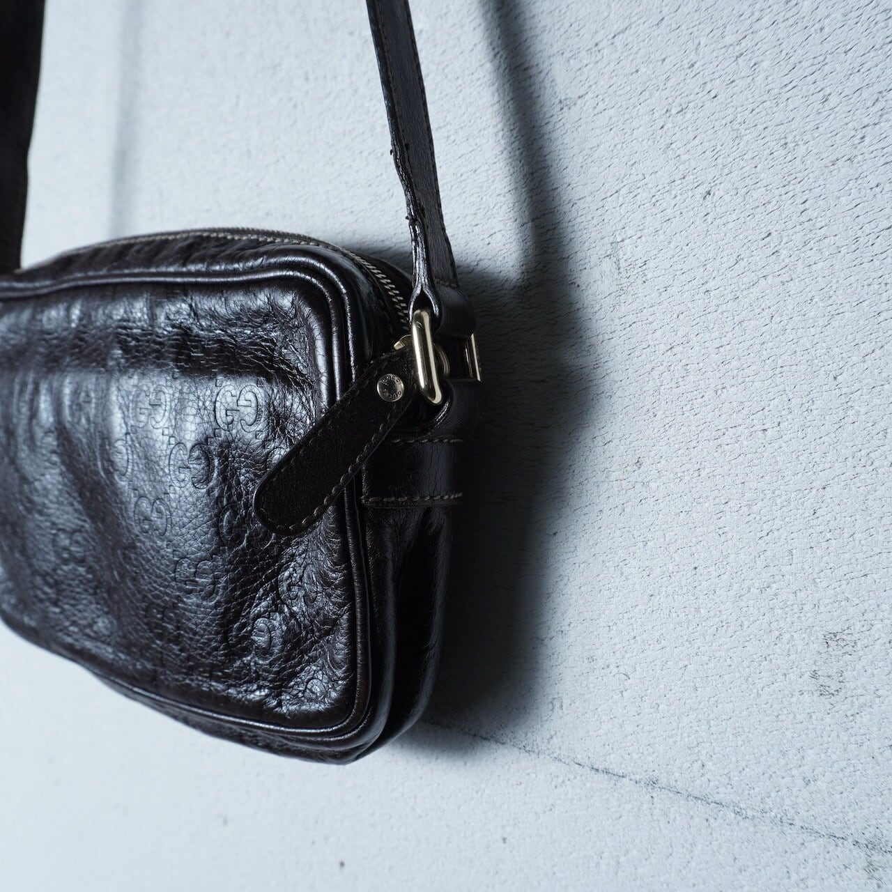 【GUCCI】グッチ ”ロゴ入”GG柄レザーショルダーバッグ dark brown