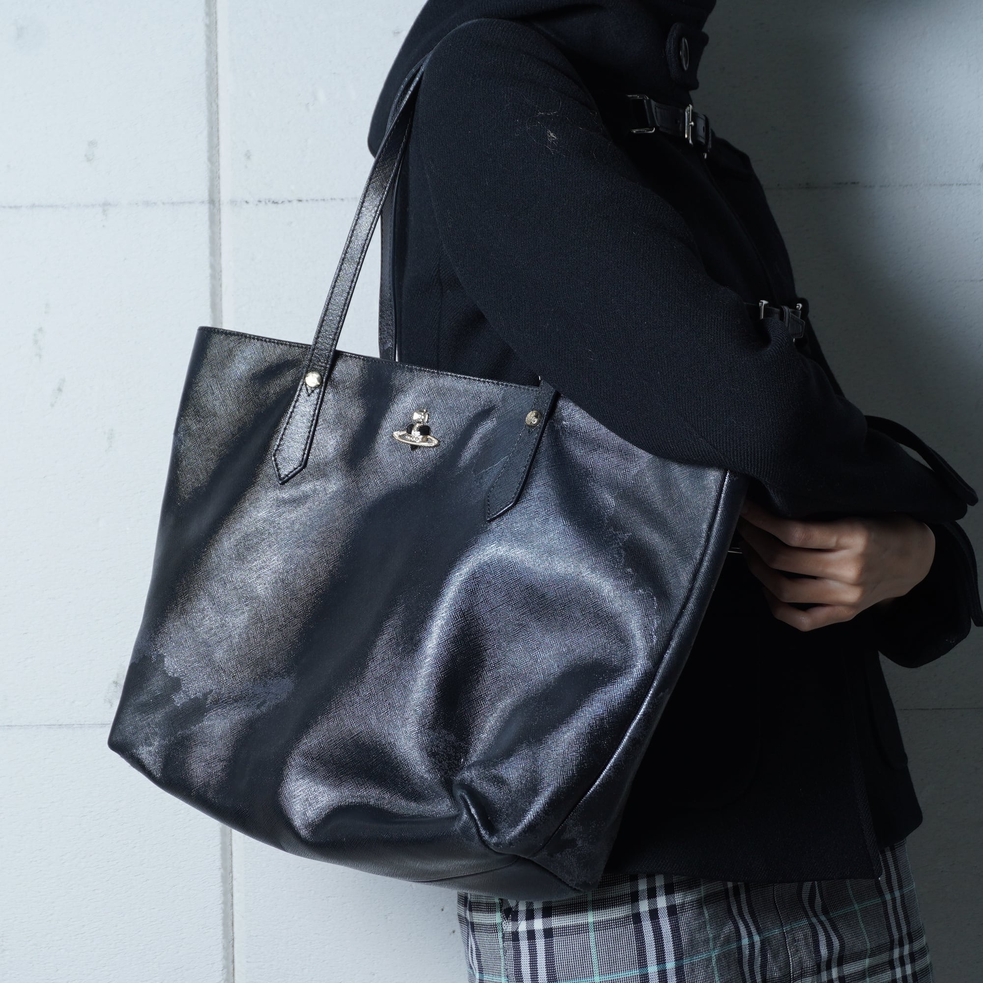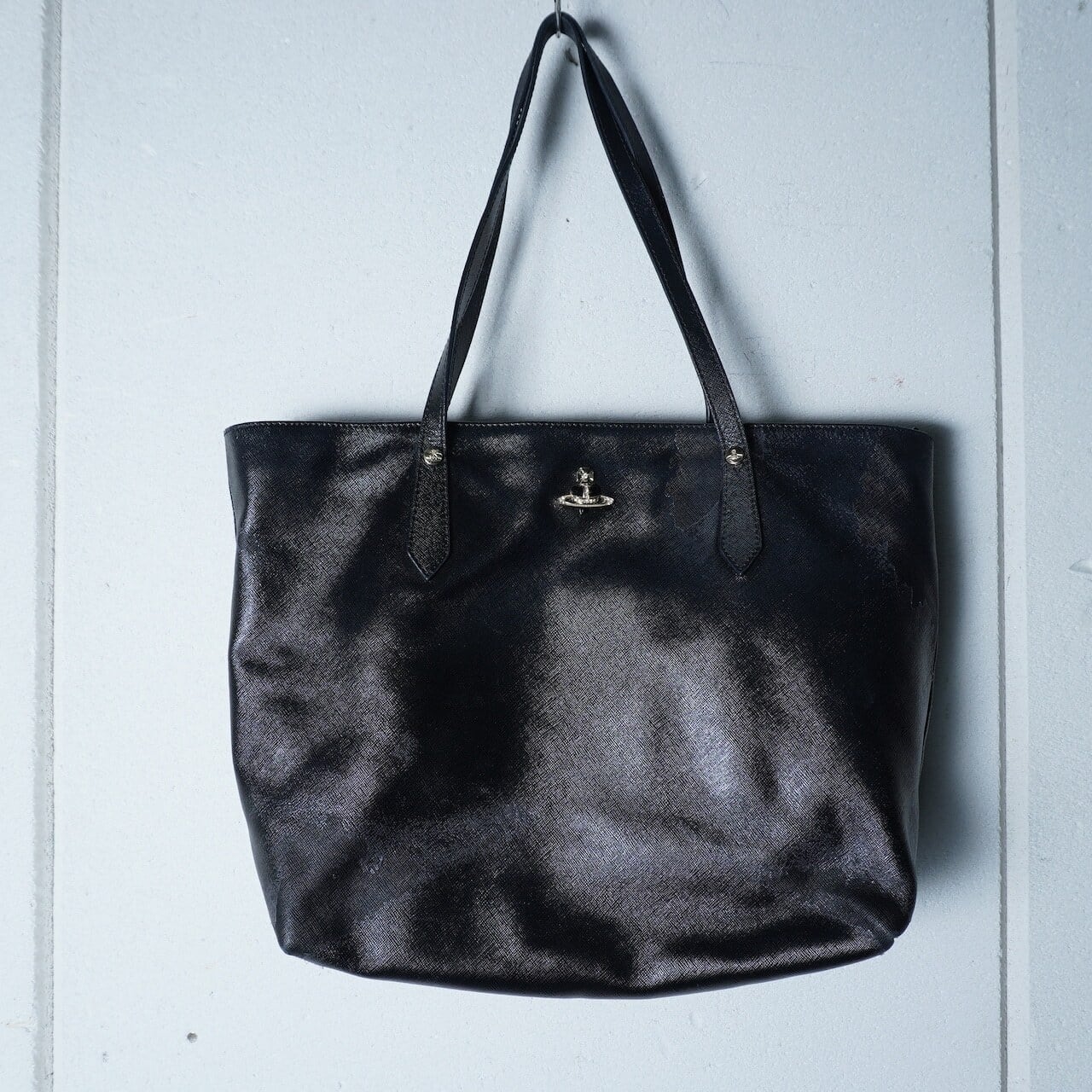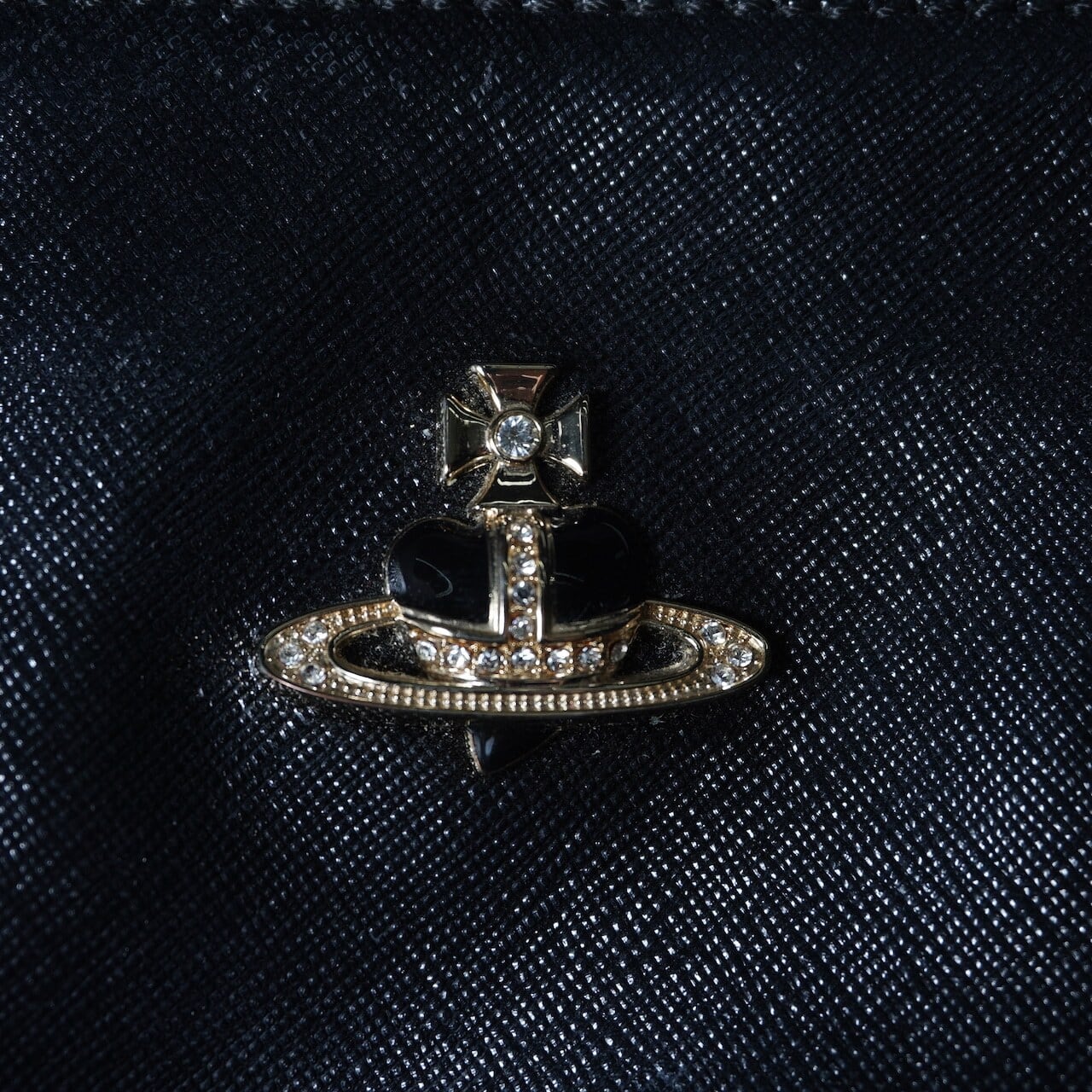 【Vivienne Westwood】ヴィヴィアンウエストウッド "ラメハートオーブロゴ”レザートートバッグ black