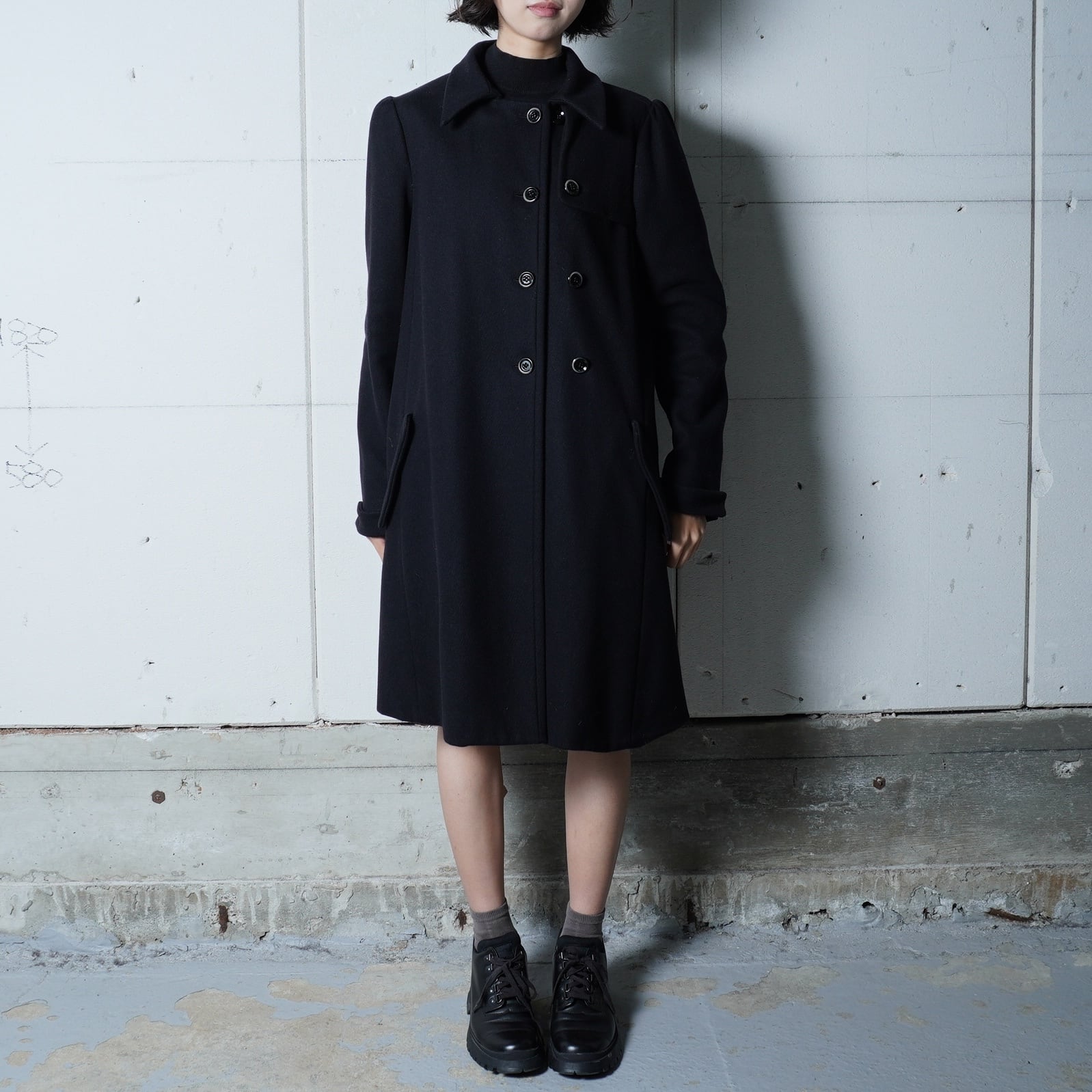 ・洗練されたシルエットの【miu miu】ダブルブレストウールロングコート