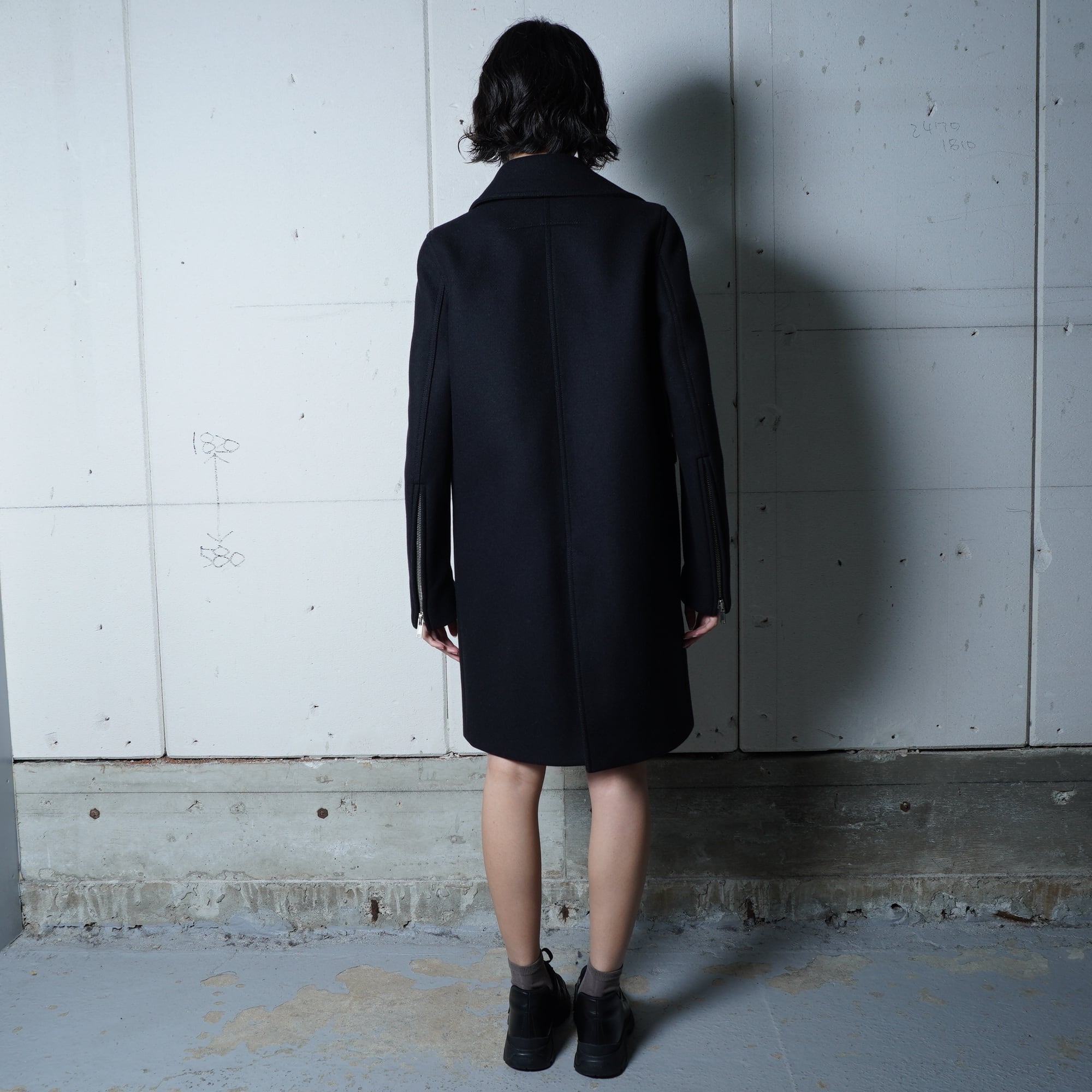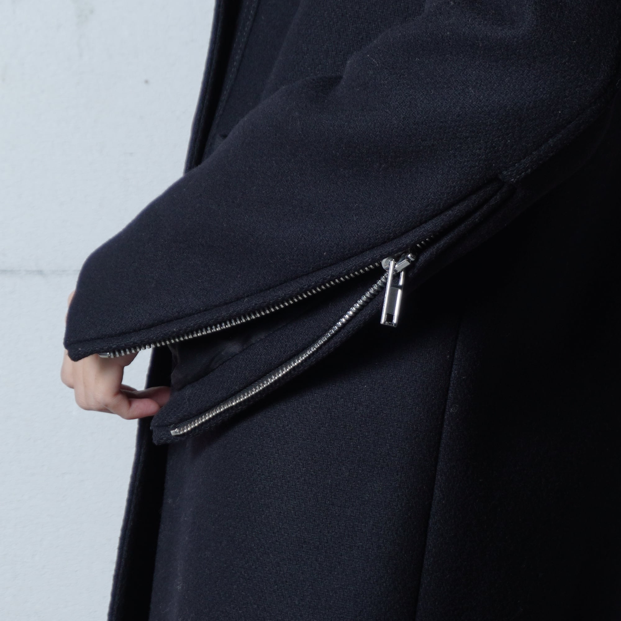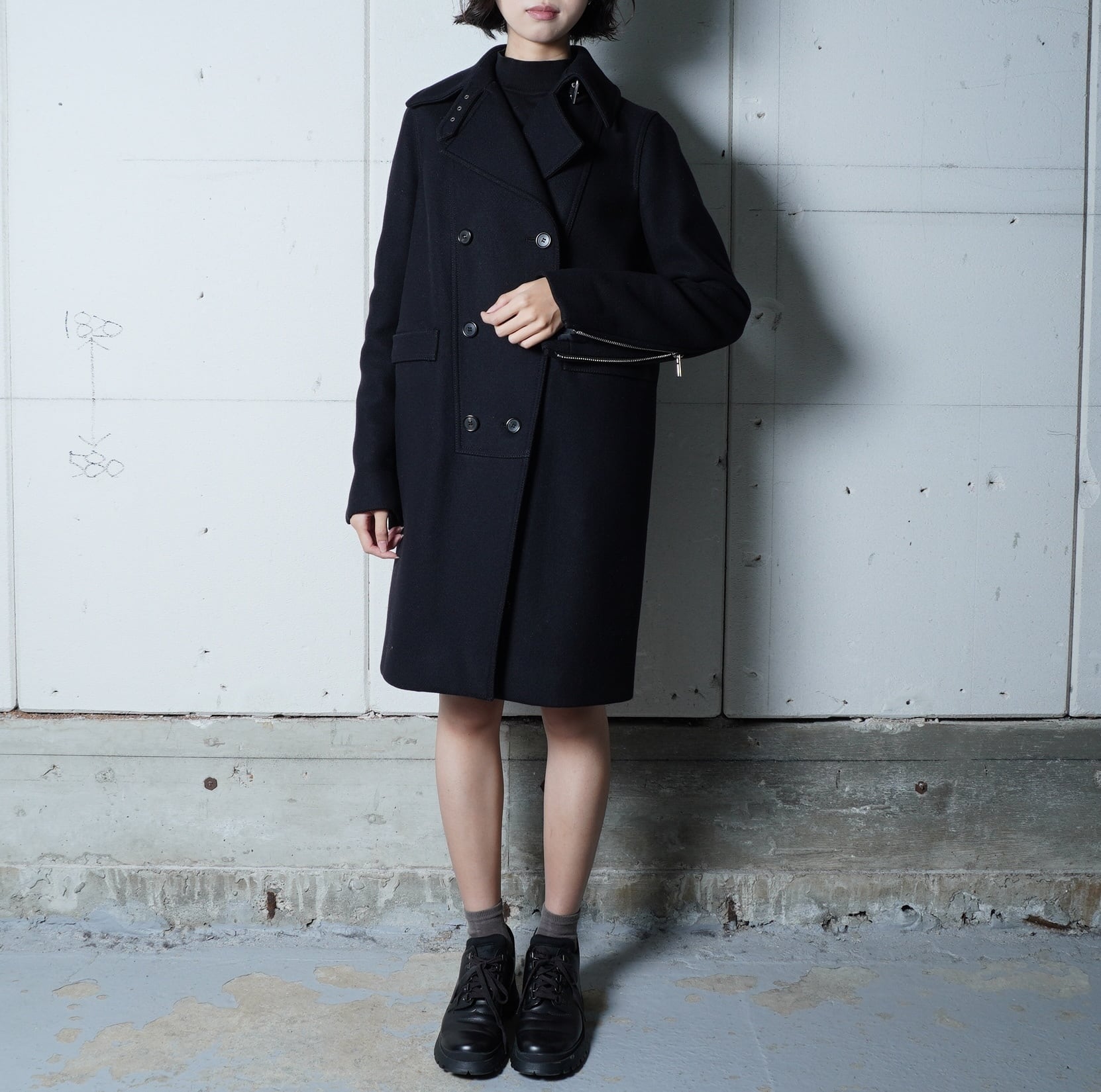 【GIVENCHY】ジバンシー "袖ZIP”ダブルブレストウールコート black