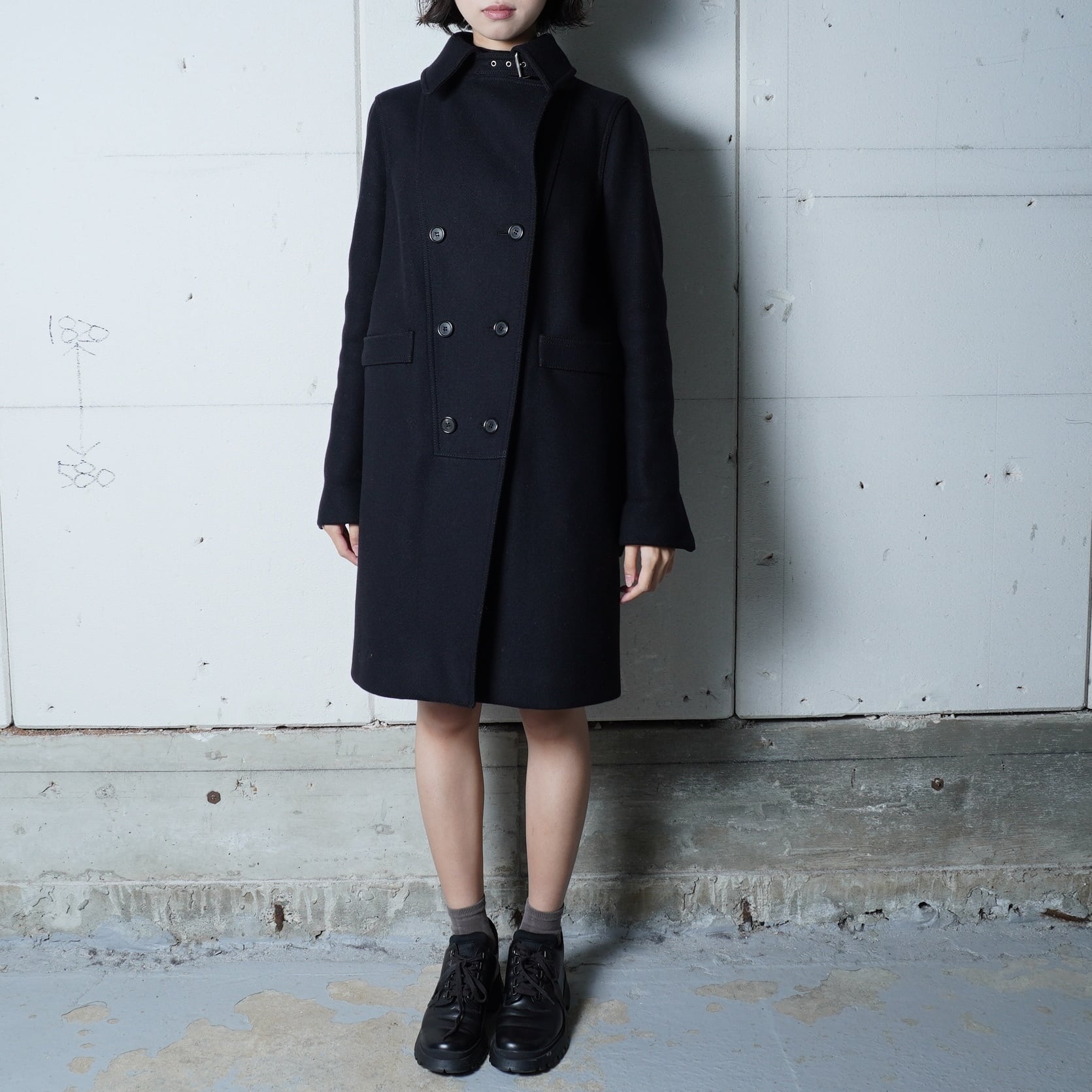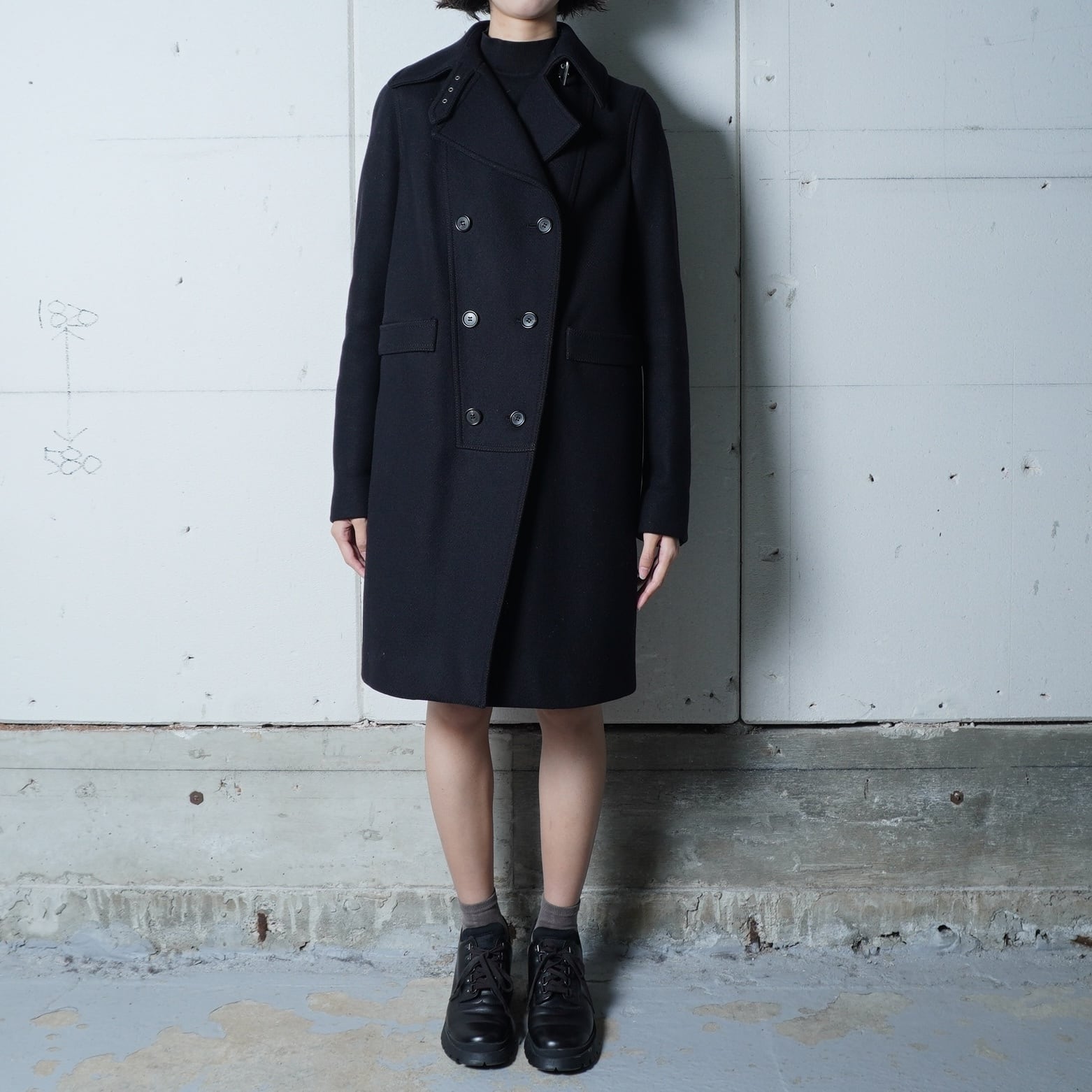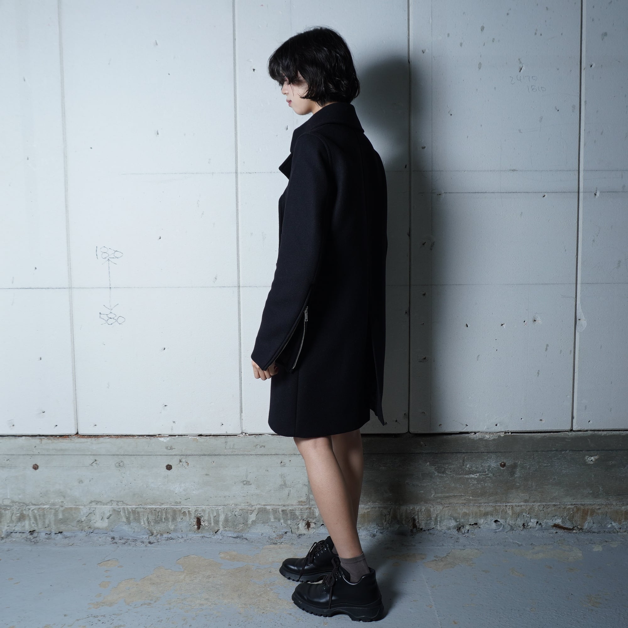 【GIVENCHY】ジバンシー "袖ZIP”ダブルブレストウールコート black