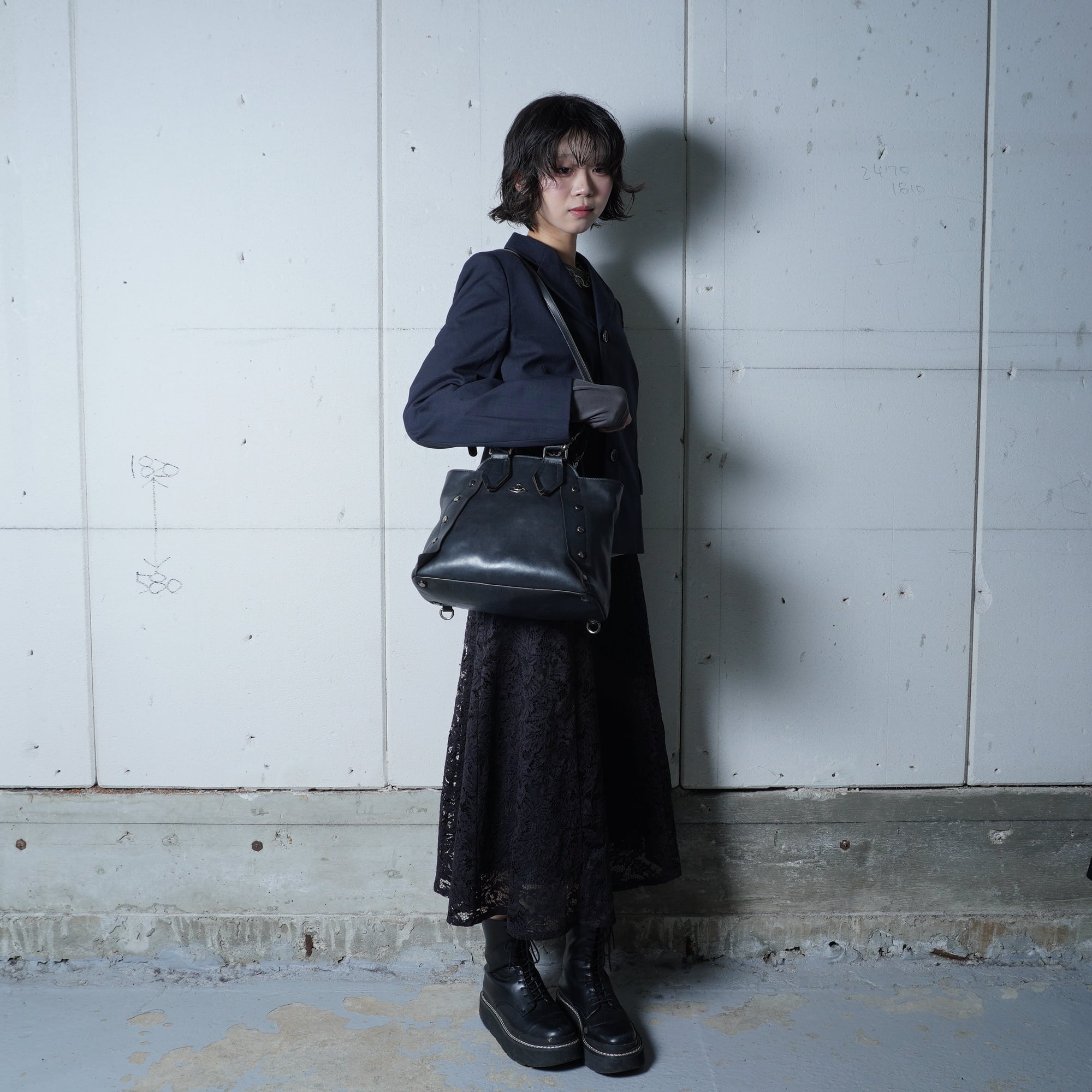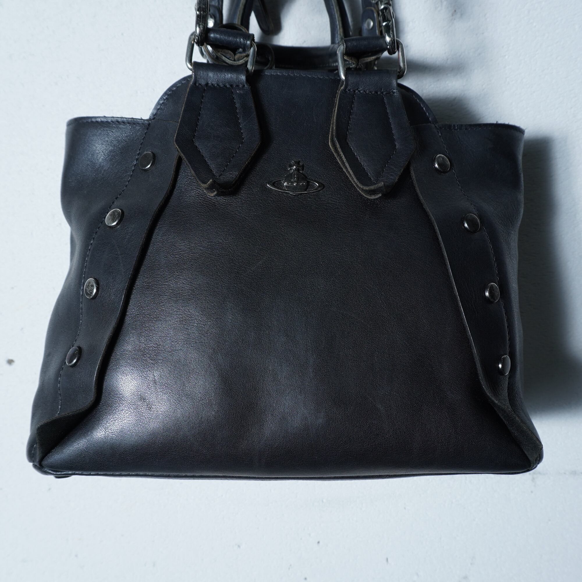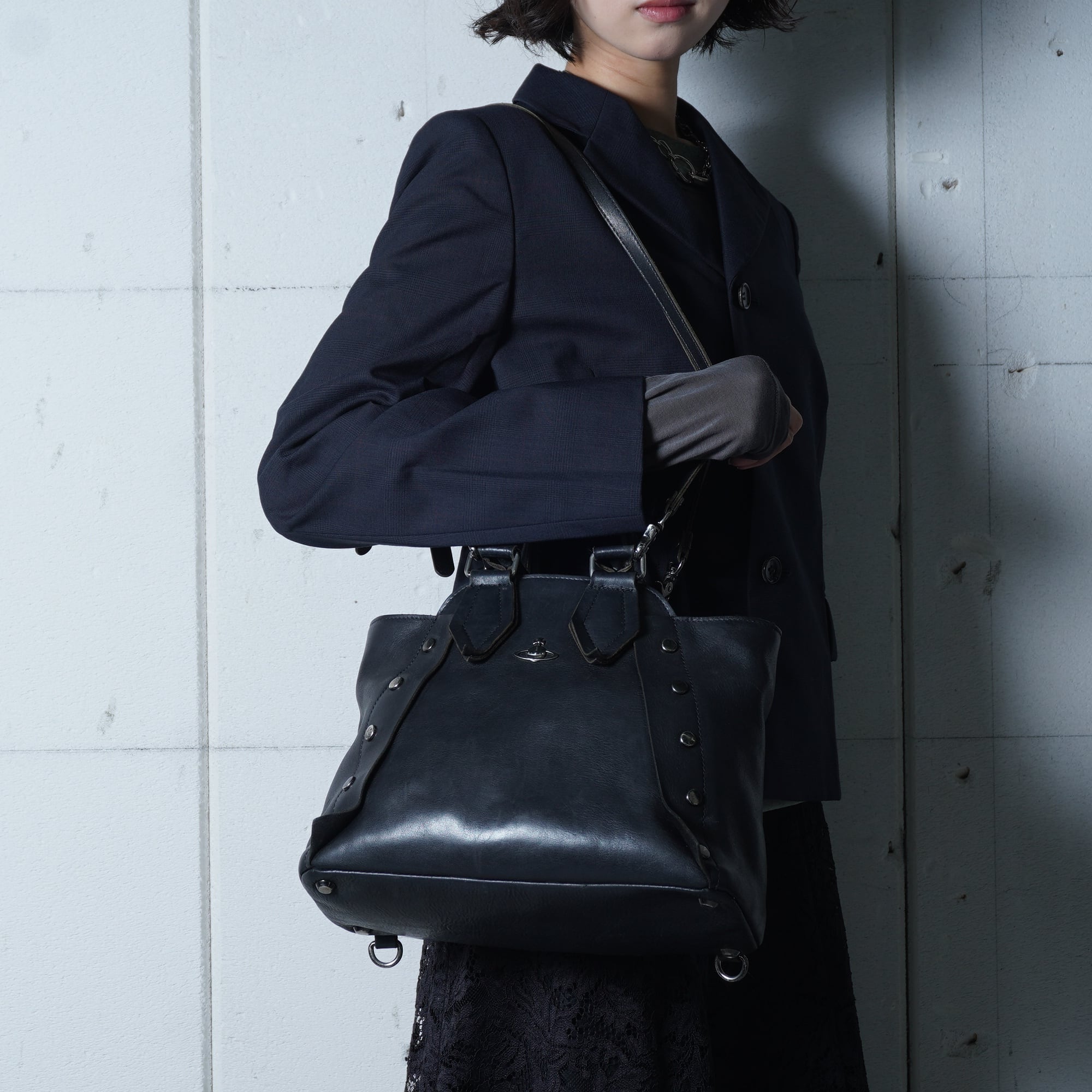 【Vivienne Westwood】ヴィヴィアンウエストウッド オーブロゴ ヌーロック2WAYスタッズリアルレザートートバッグ black