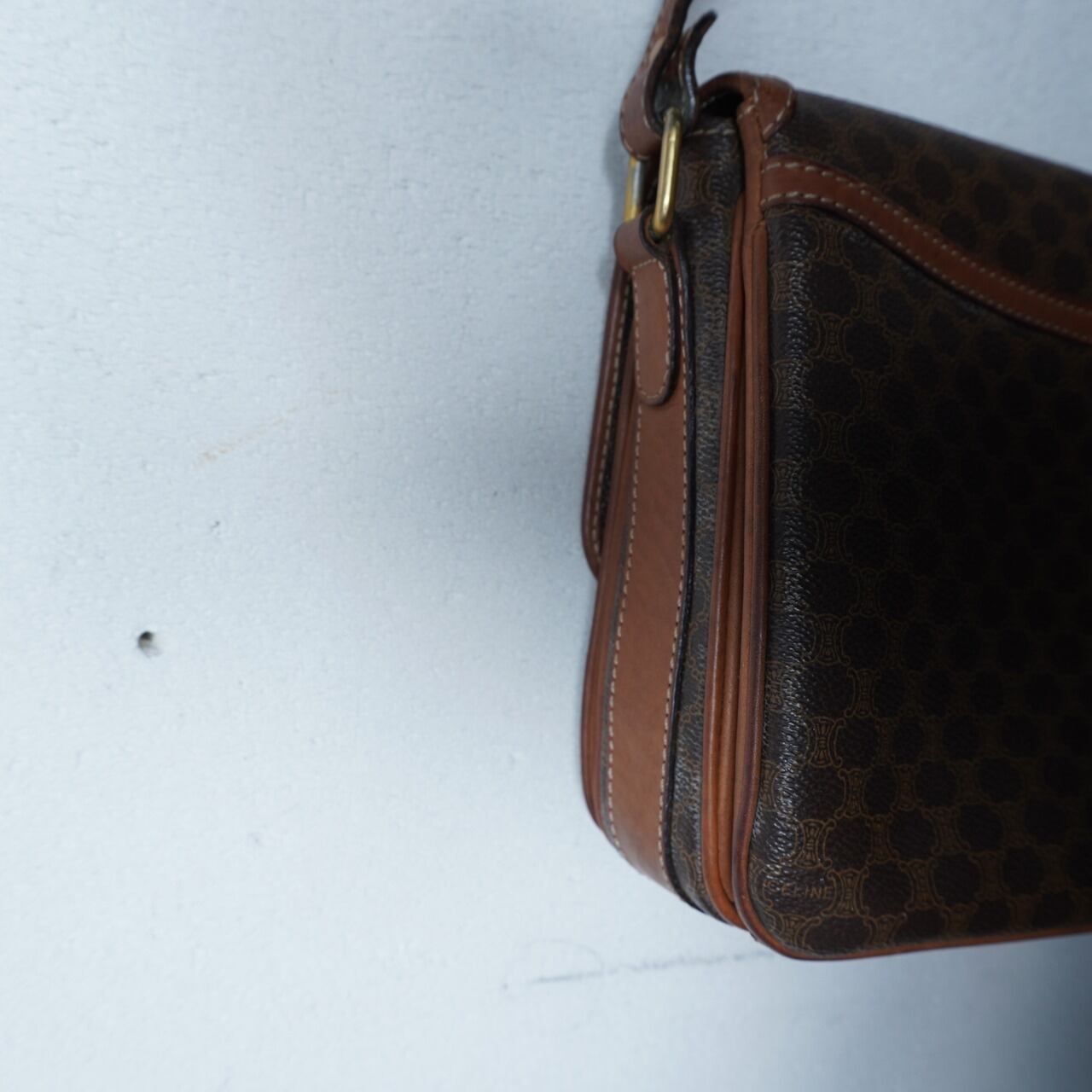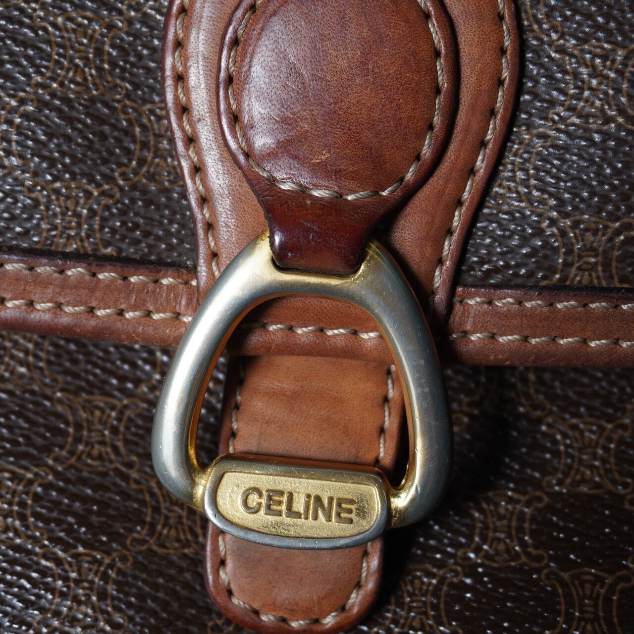 【CELINE】セリーヌ ”ロゴゴールド金具”マカダムレザーショルダーバッグ brown