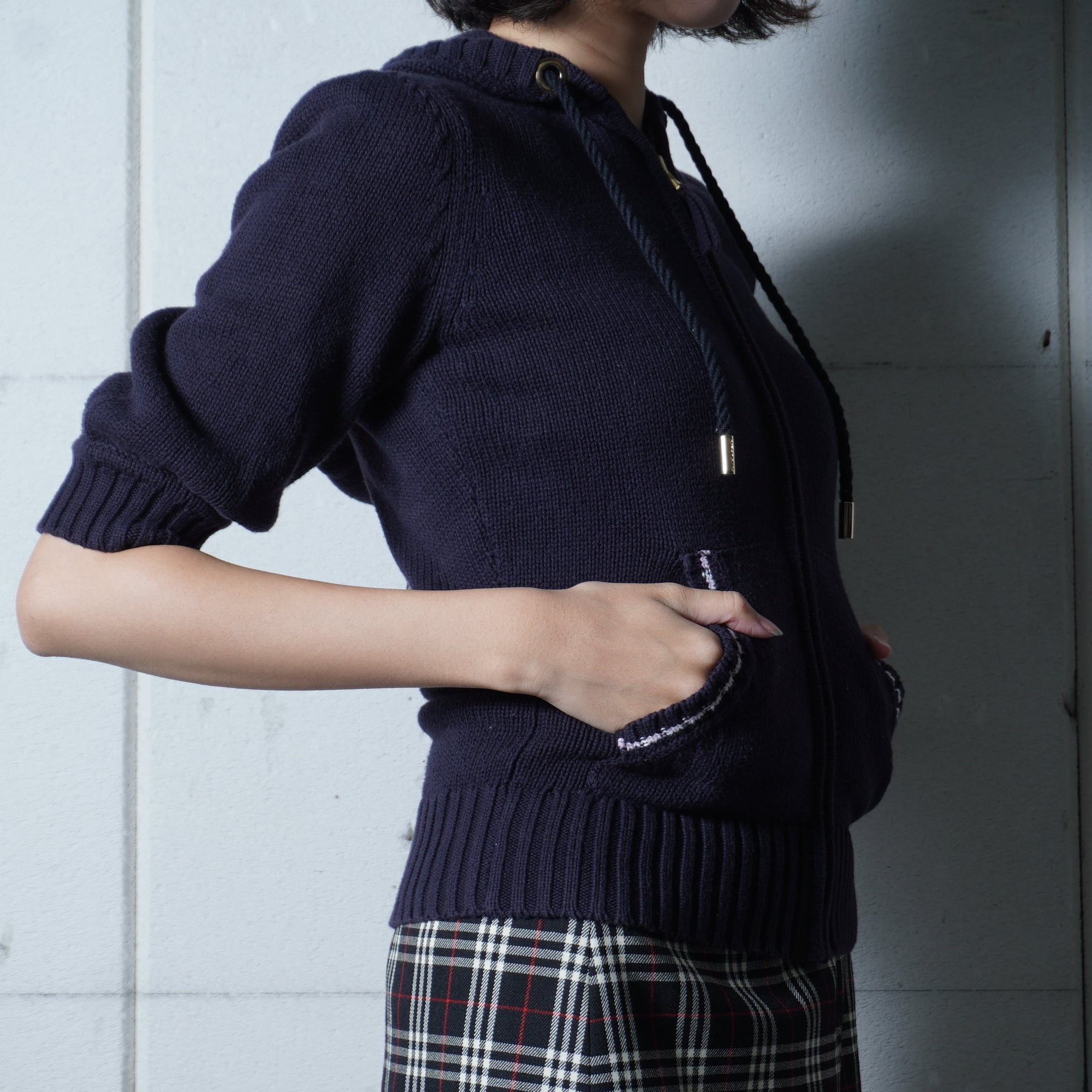 ・スタイリッシュなジップアップフーデッドニット