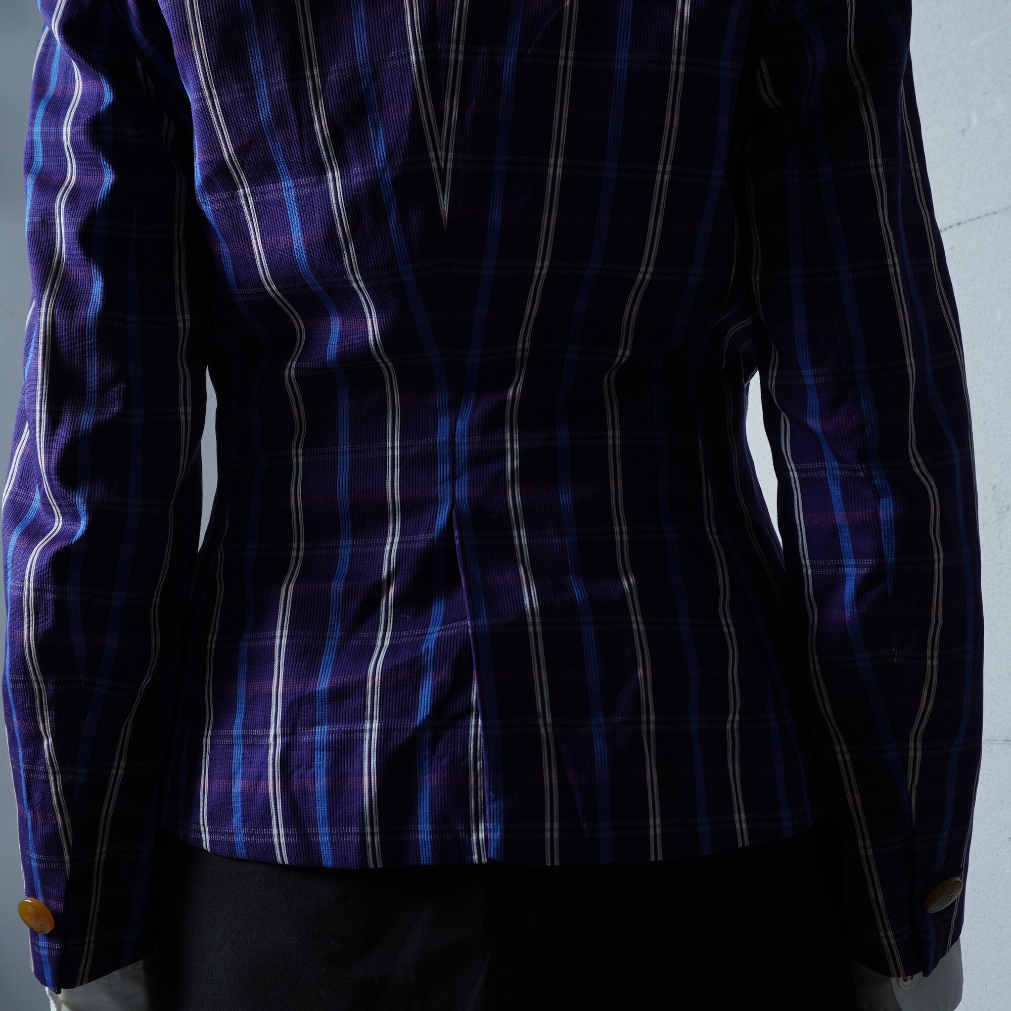 【Vivienne Westwood】ヴィヴィアンウエストウッド オーブロゴボタンチェック柄テーラードジャケット navy&blue&pink