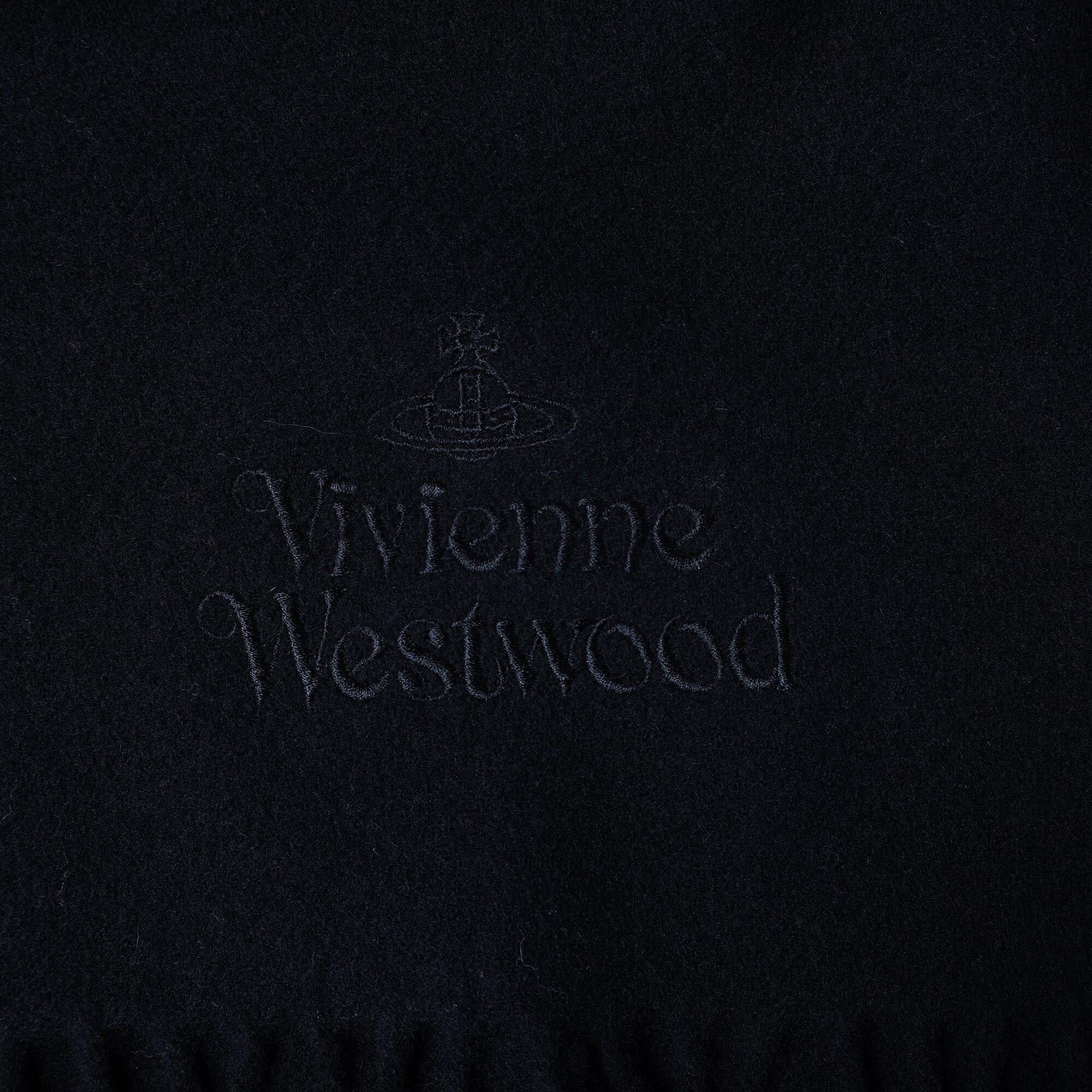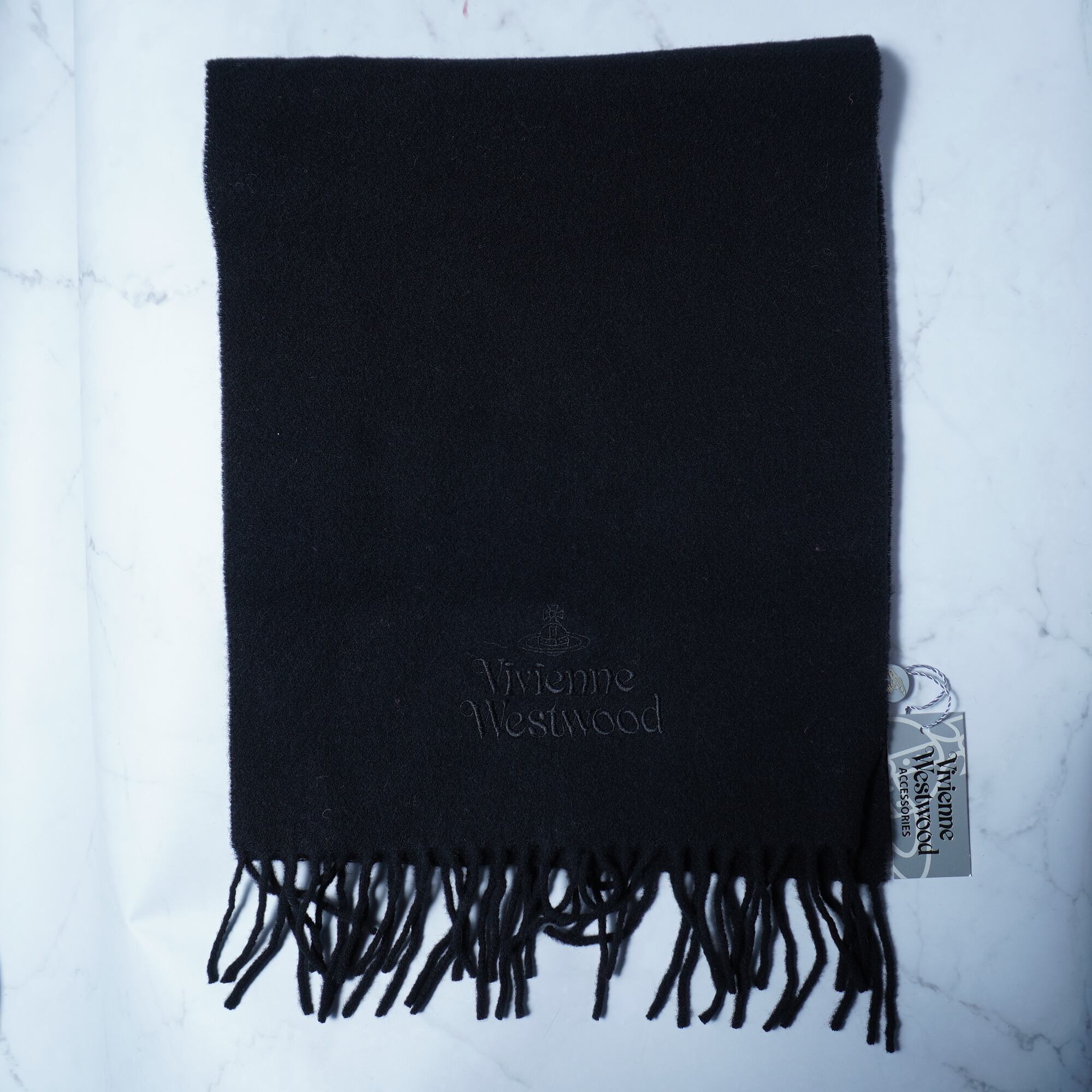 【Vivienne Westwood】ヴィヴィアンウエストウッド ”タグ付・極美品””オーブロゴ刺繍”WOOL100%フリンジマフラー black