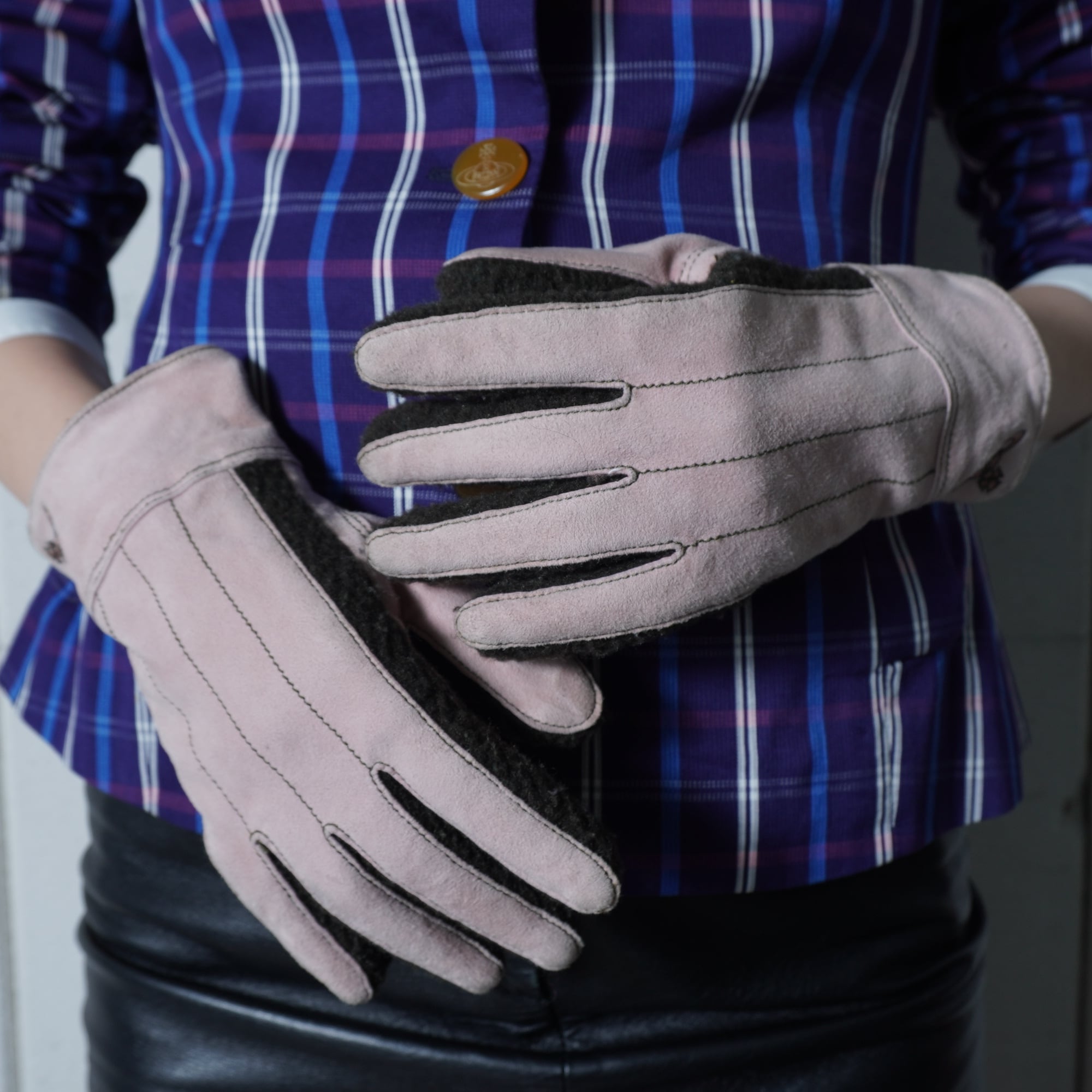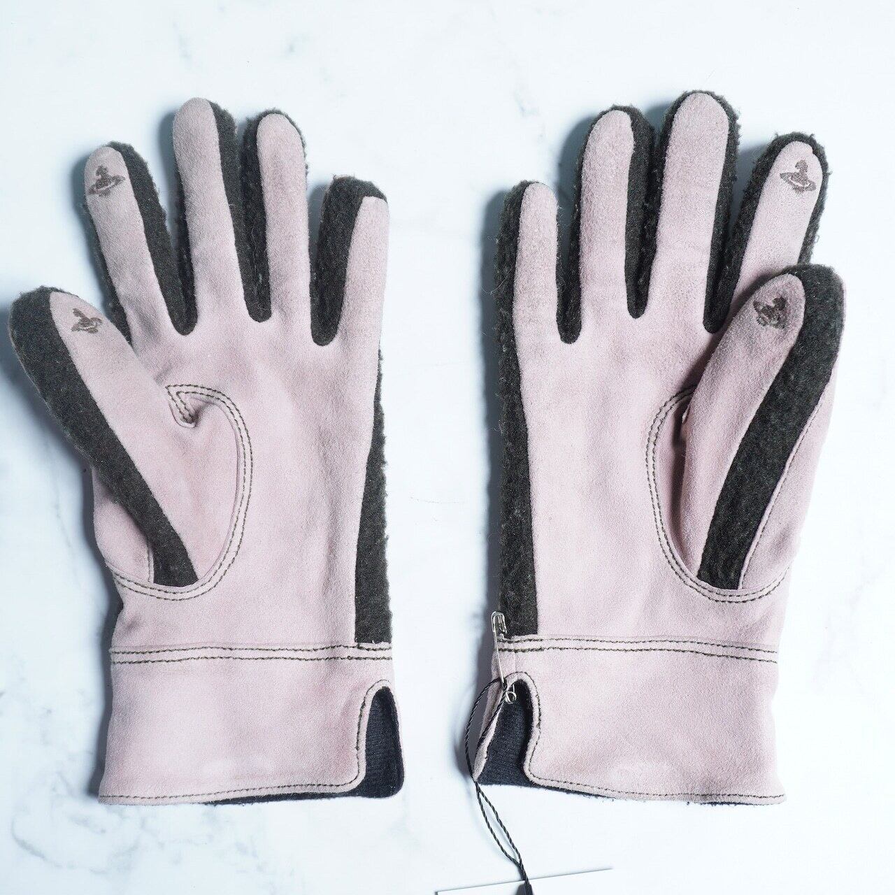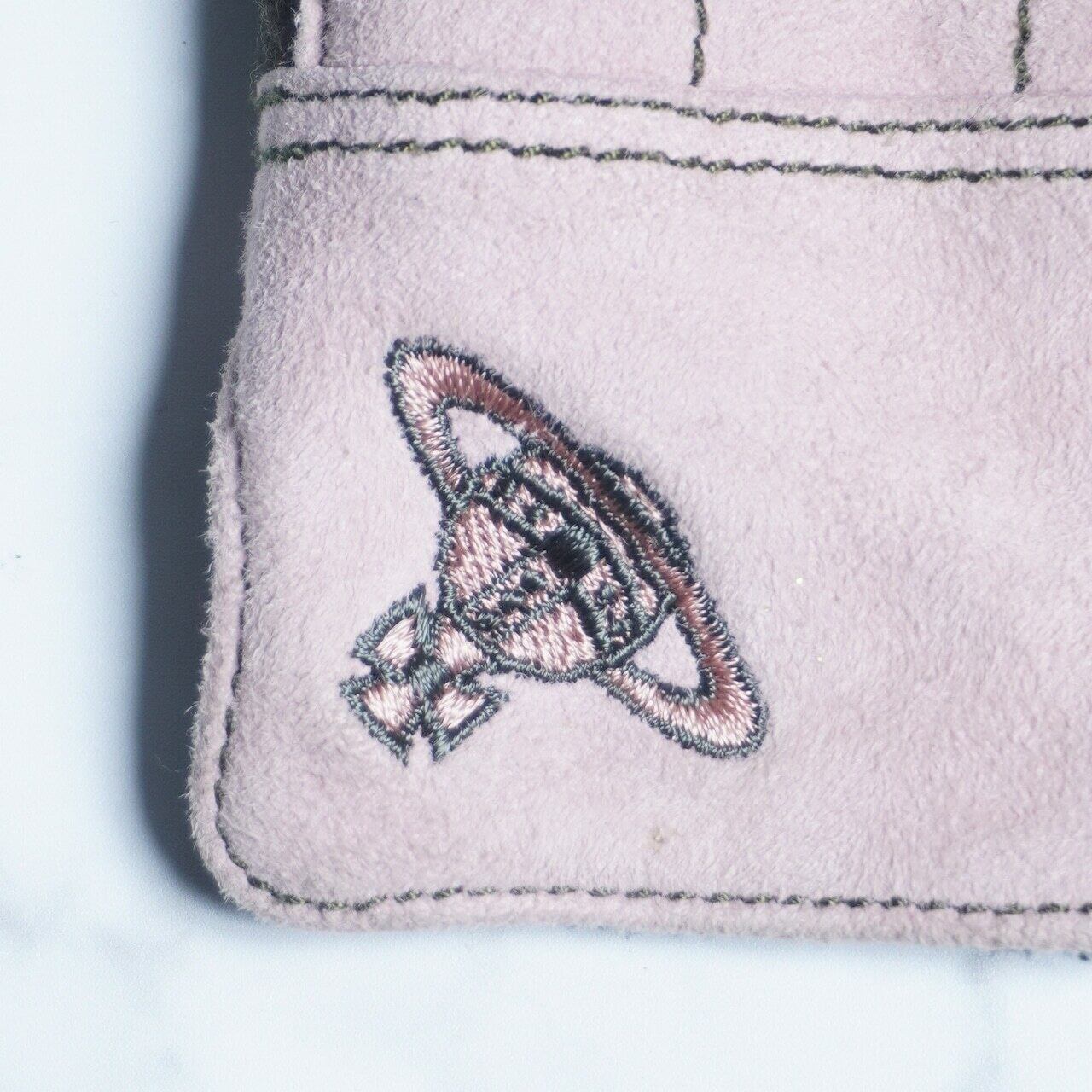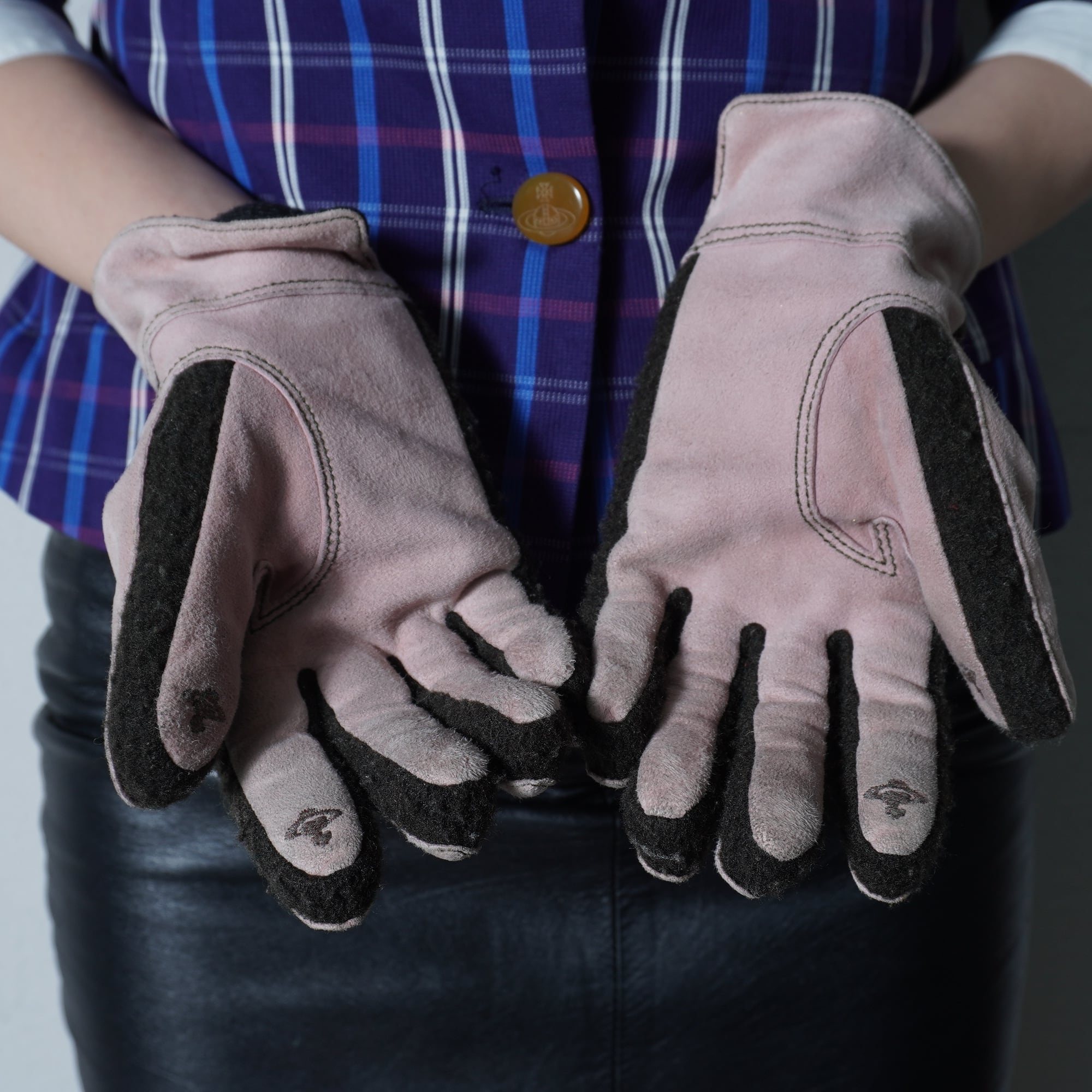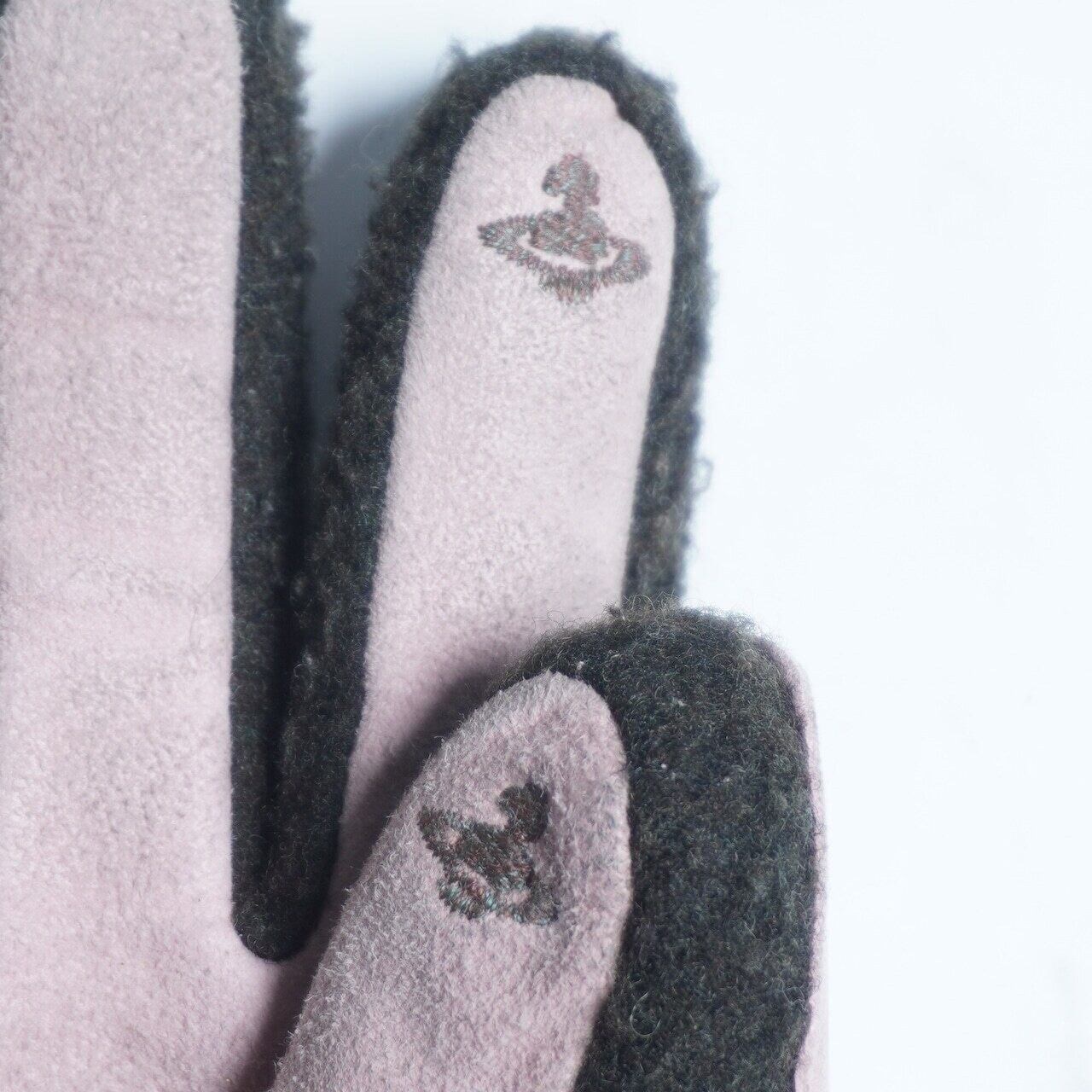 ヴィヴィアンウエストウッドのOrbロゴ入り手袋。薄めのピンクカラーと指先に小さくデザインされたOrbロゴが可愛らしい一品となっております。