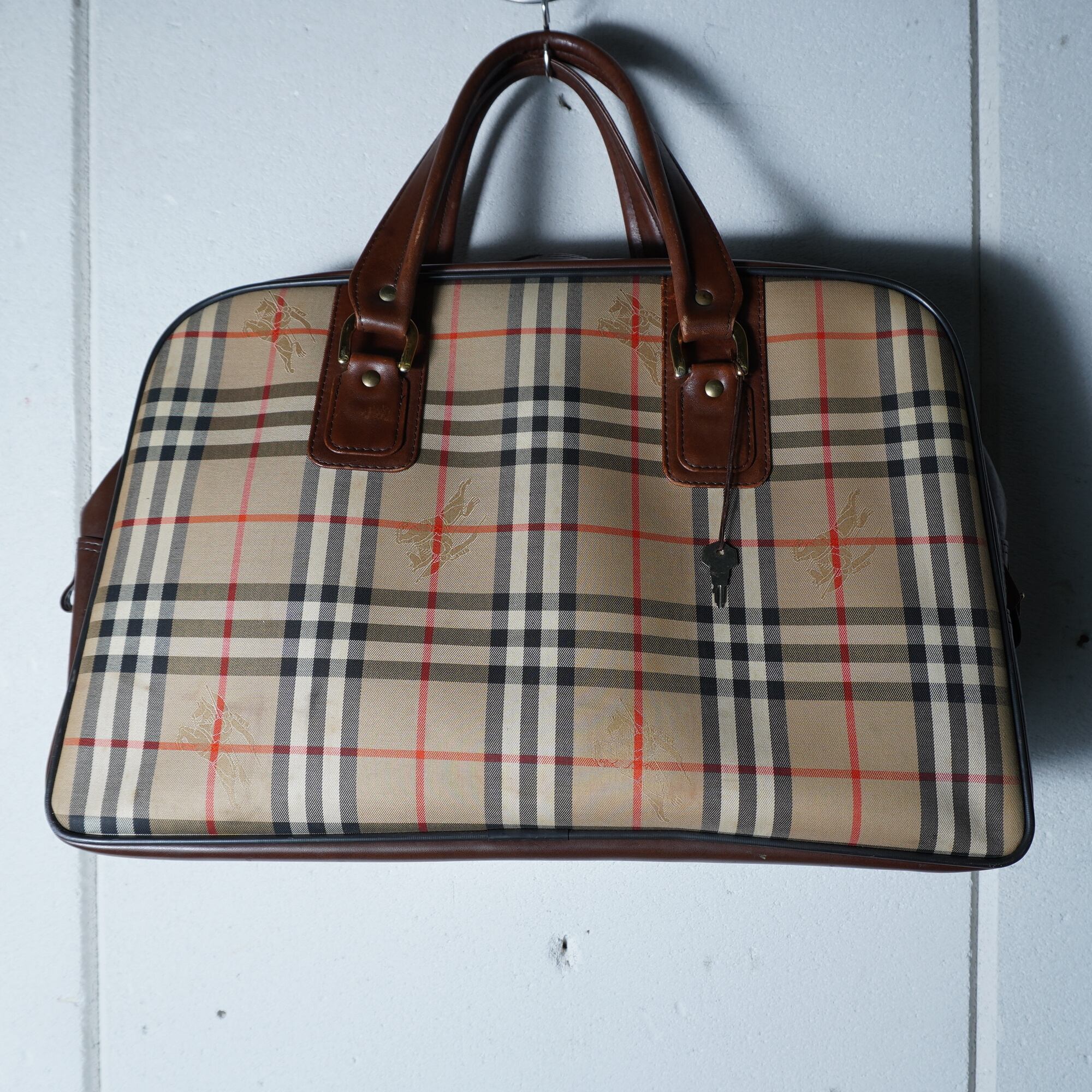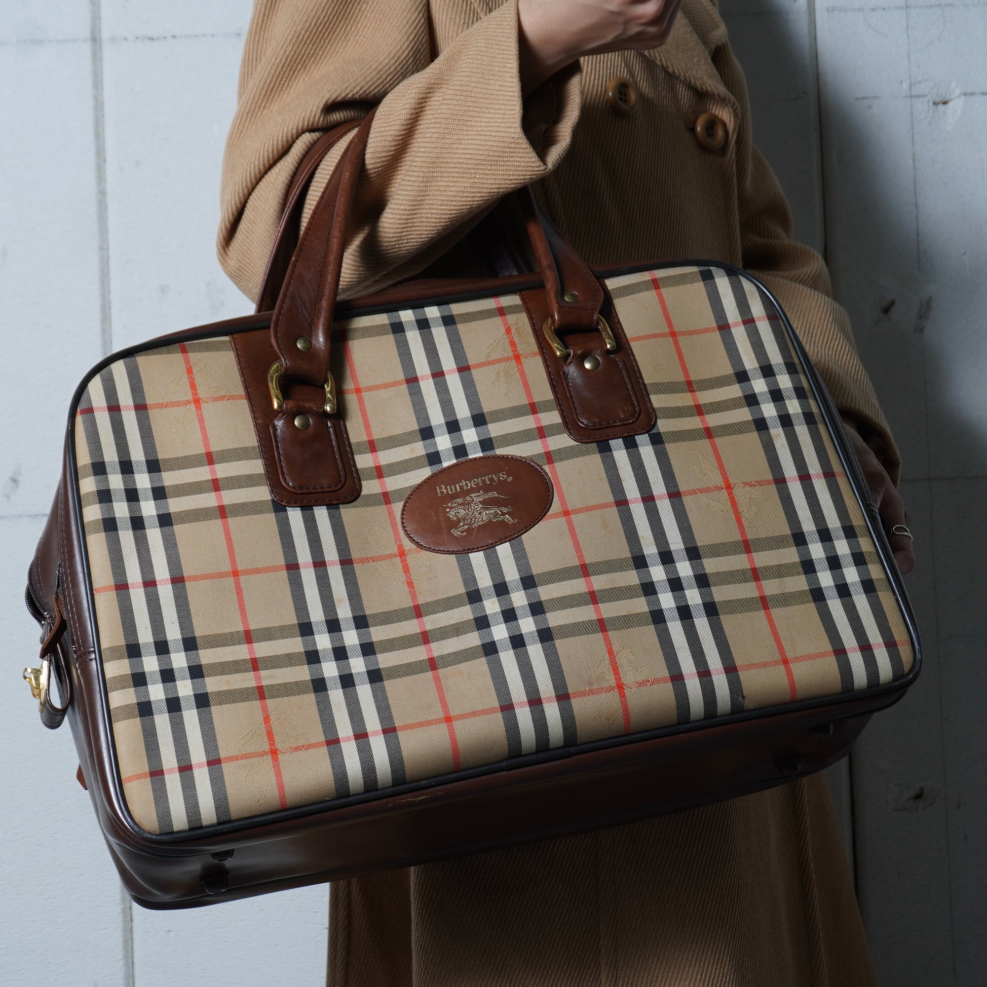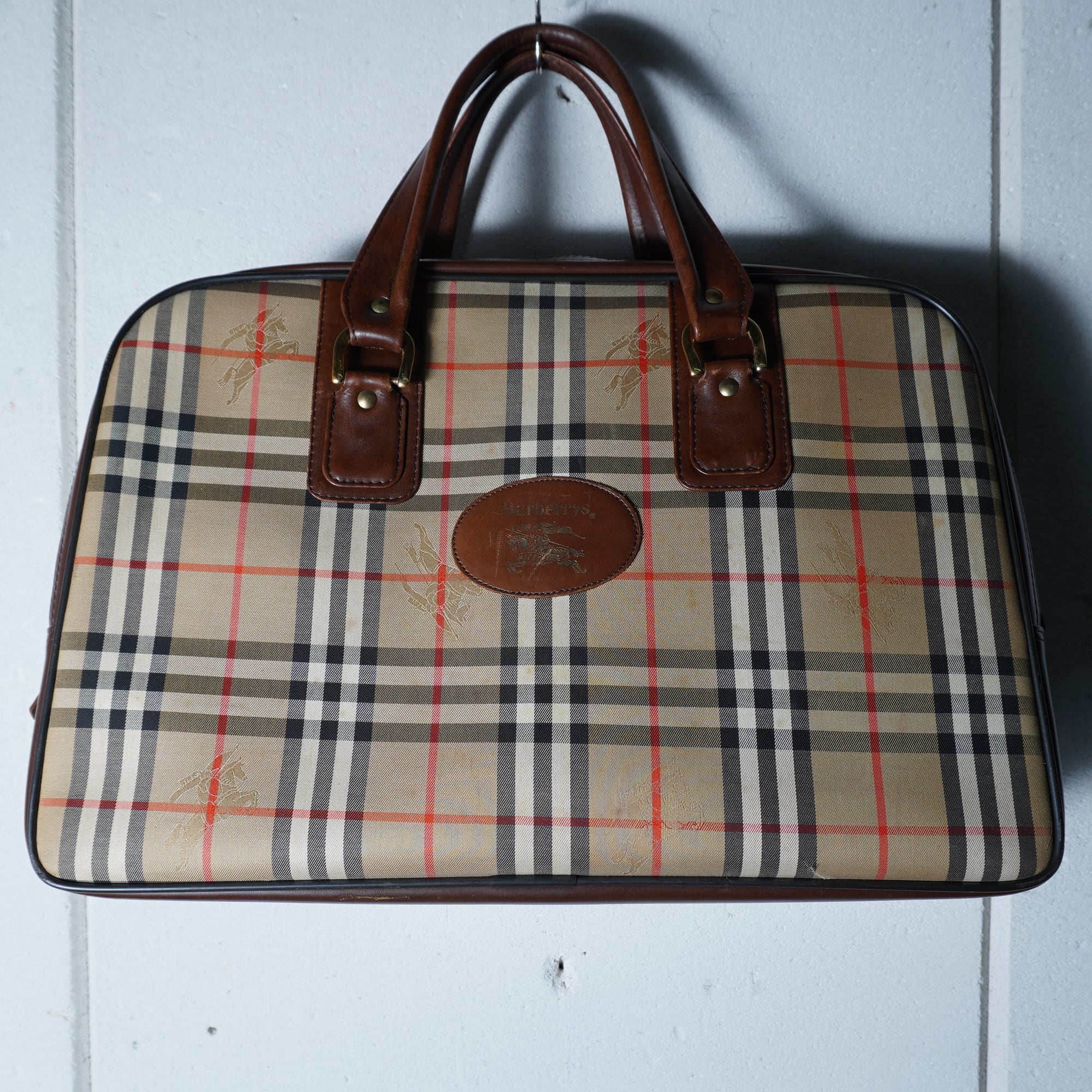 【BURBERRY】バーバリー "ノバチェック" ホースロゴレザー切替ボストンバッグ beige