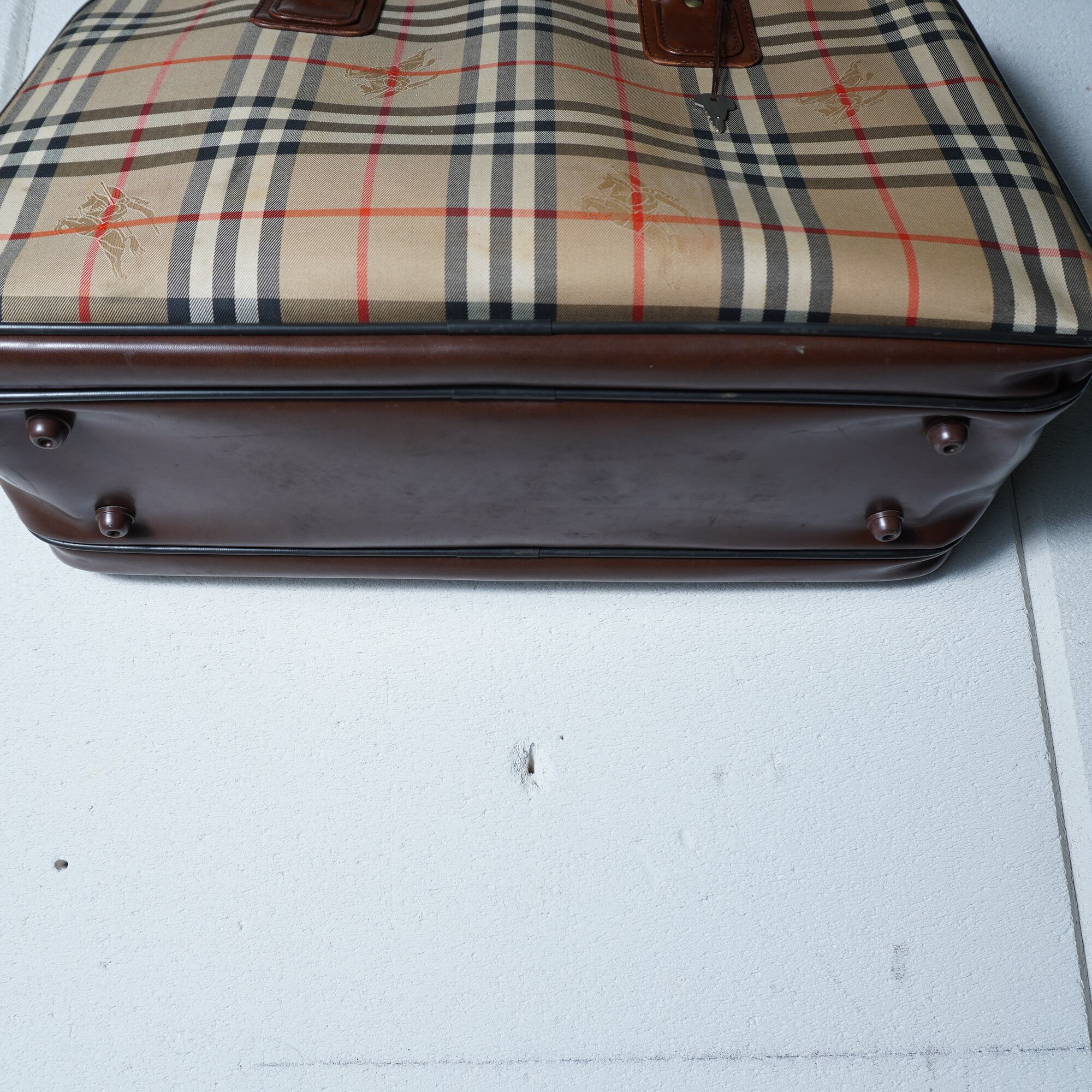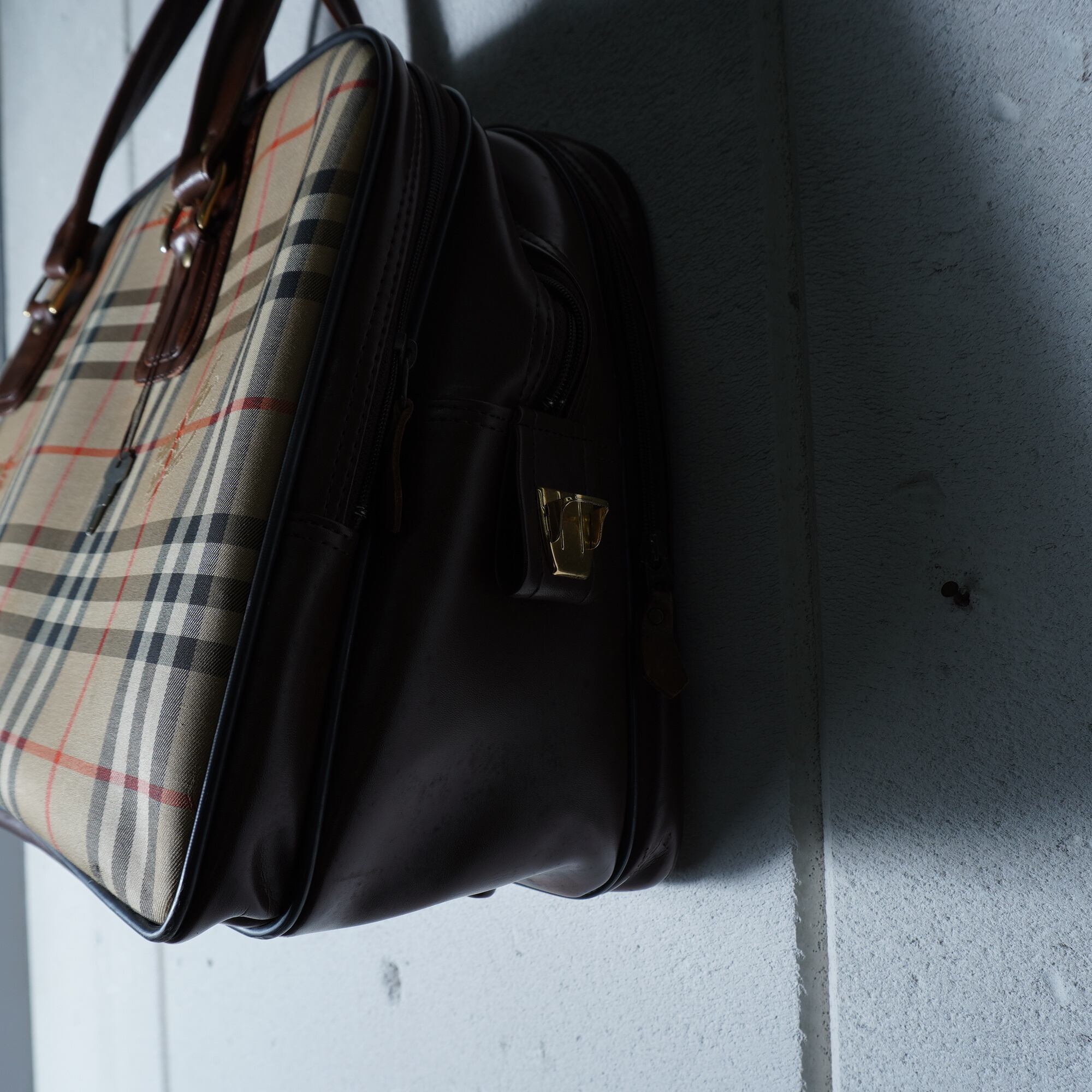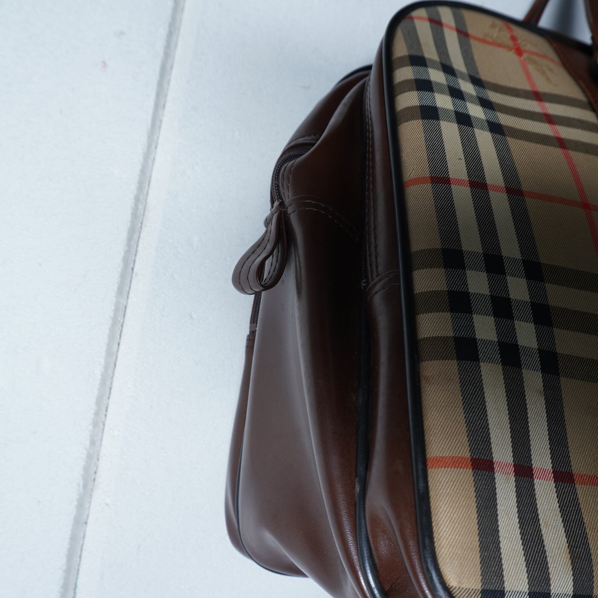 【BURBERRY】バーバリー "ノバチェック" ホースロゴレザー切替ボストンバッグ beige