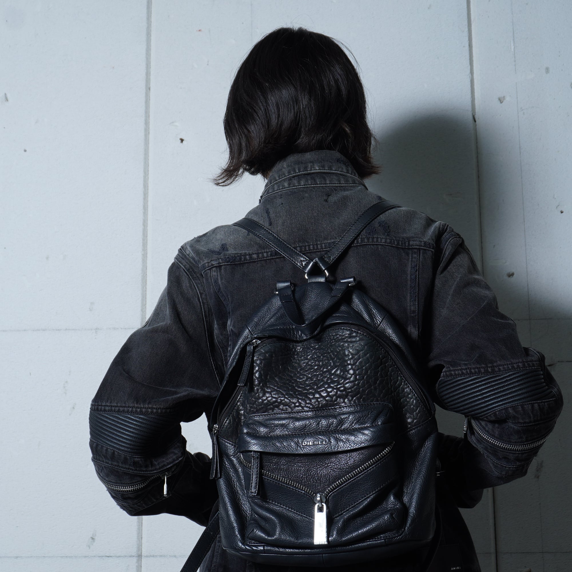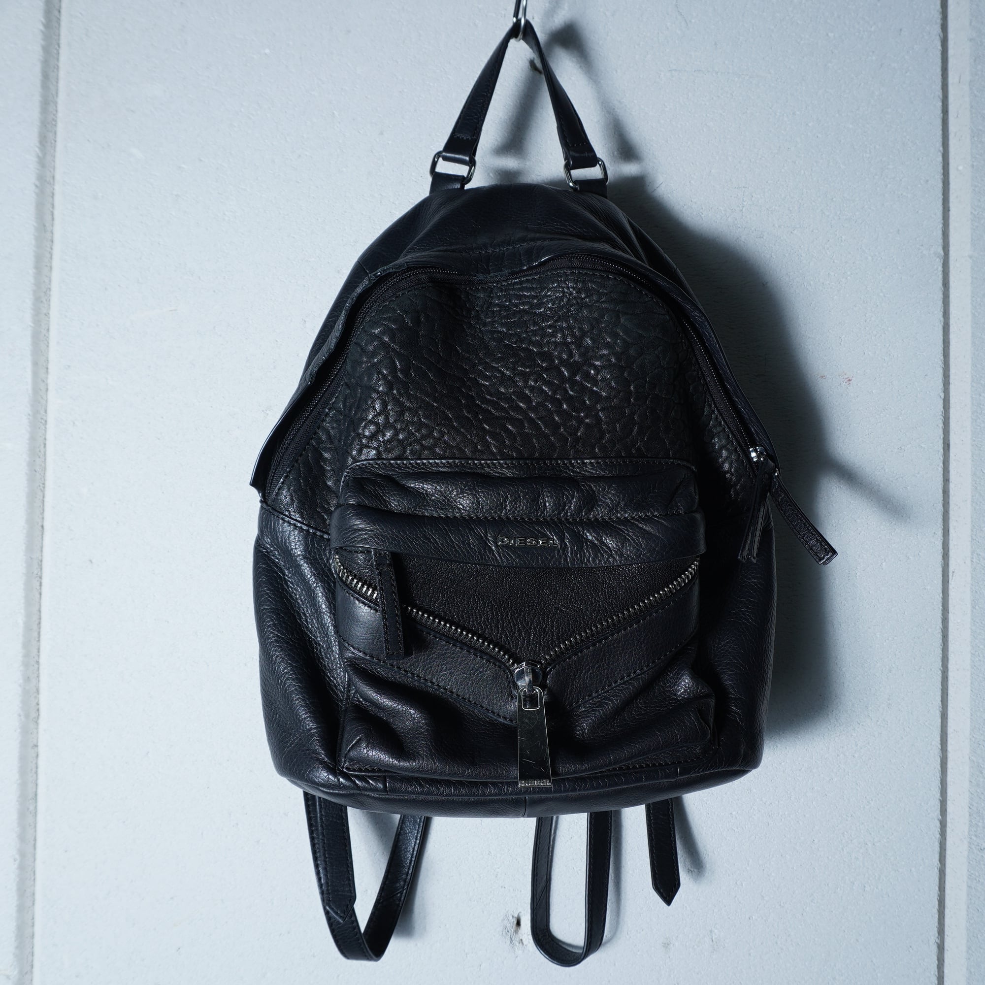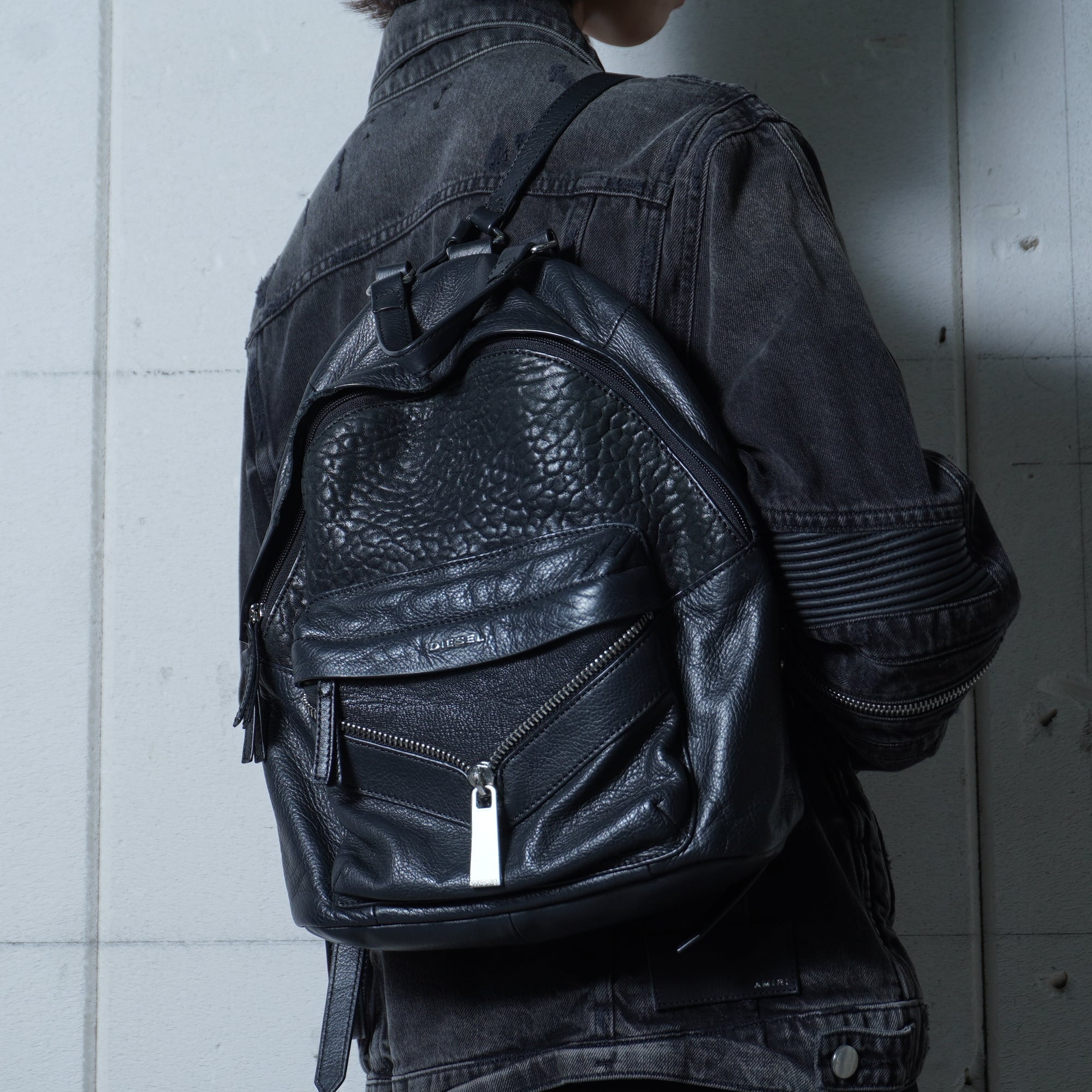 【DIESEL】ディーゼル "Y2K" ジップデザインリアルレザーバックパック black