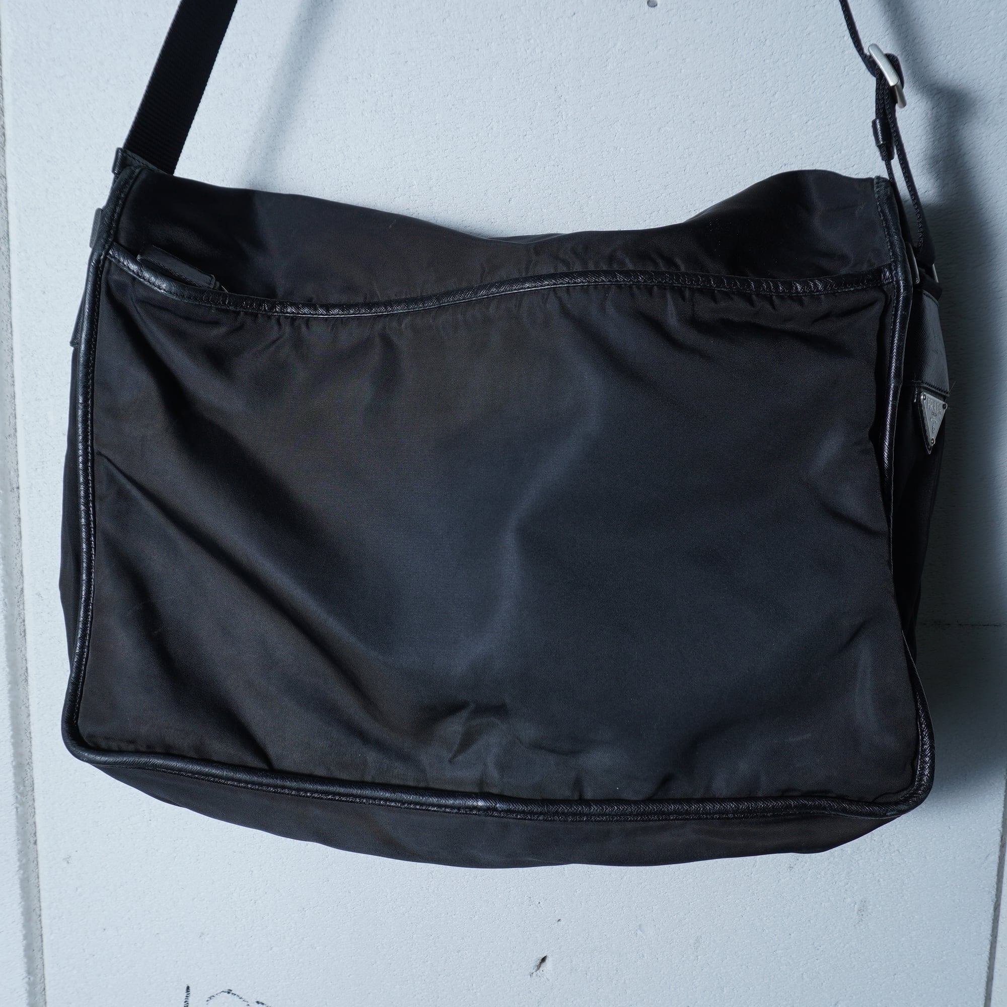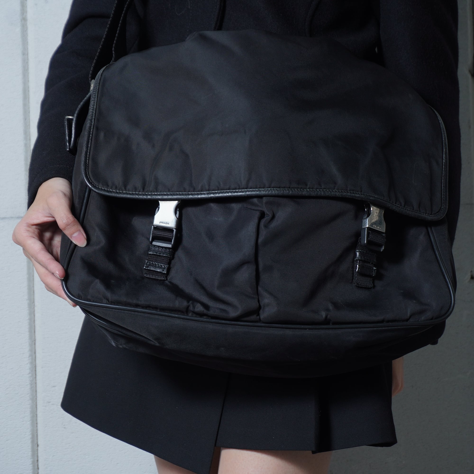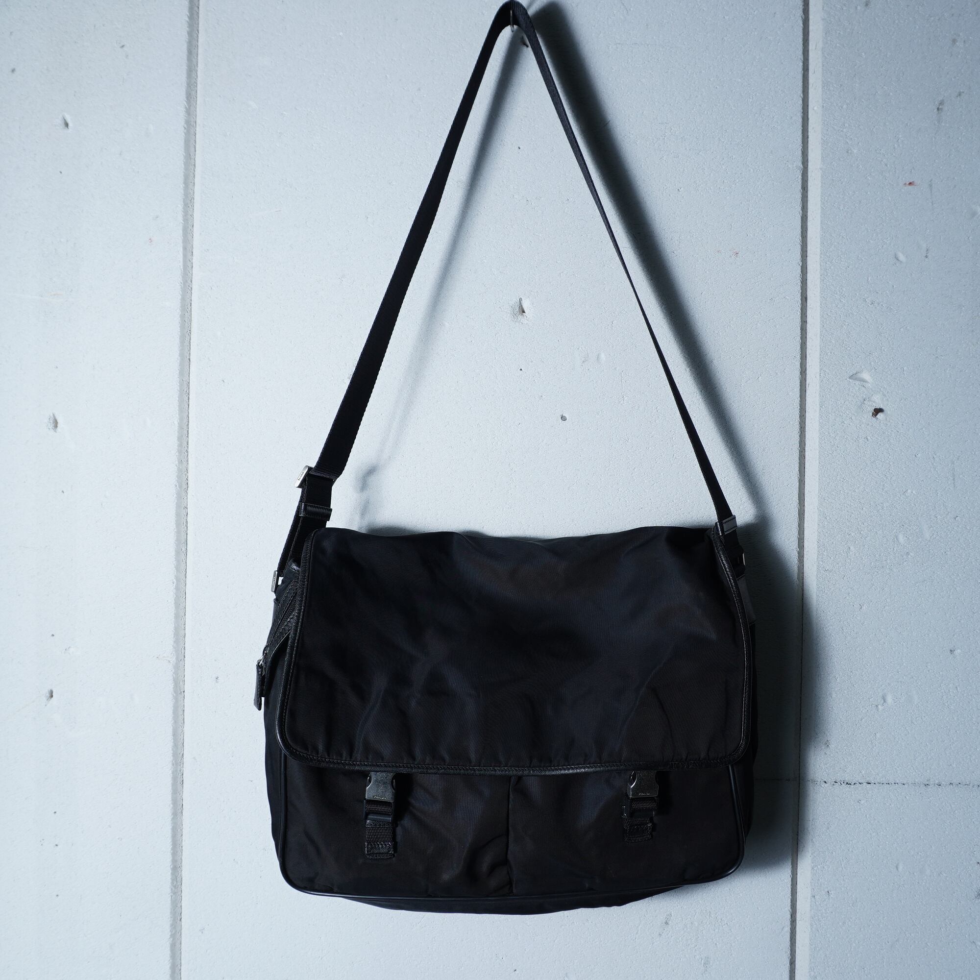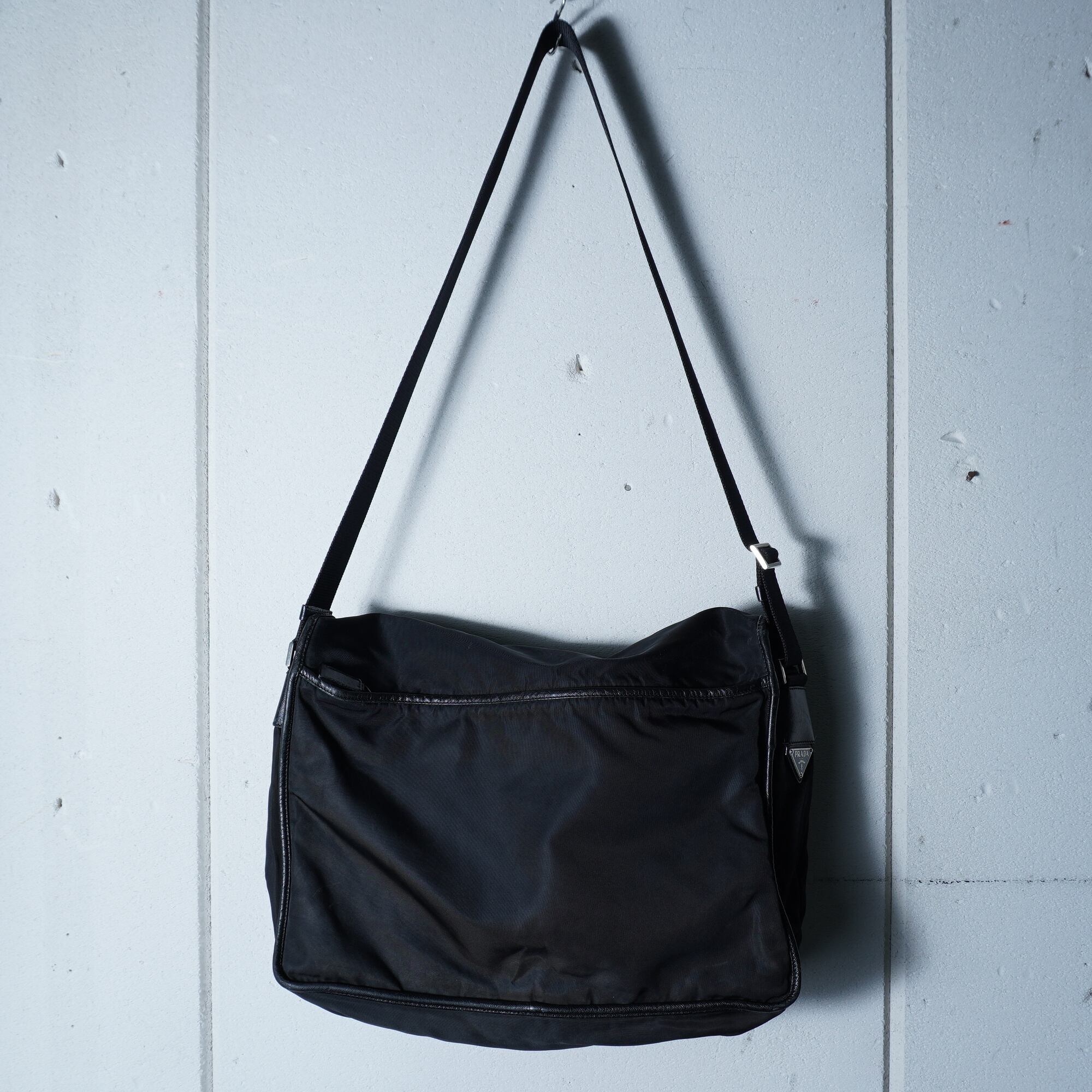 【PRADA】プラダ ”ロゴ金具” レザー切替高密度ナイロンショルダーバッグ black