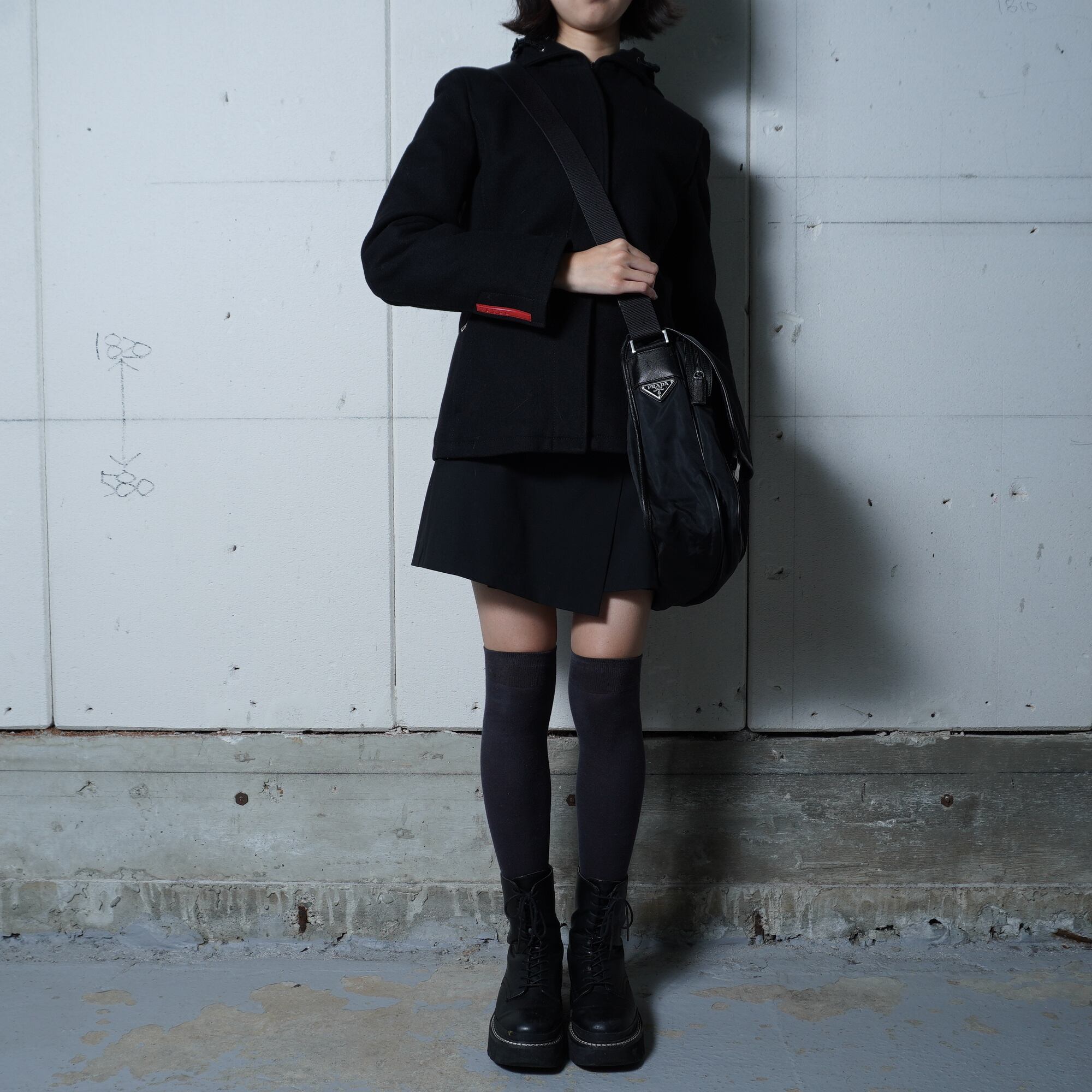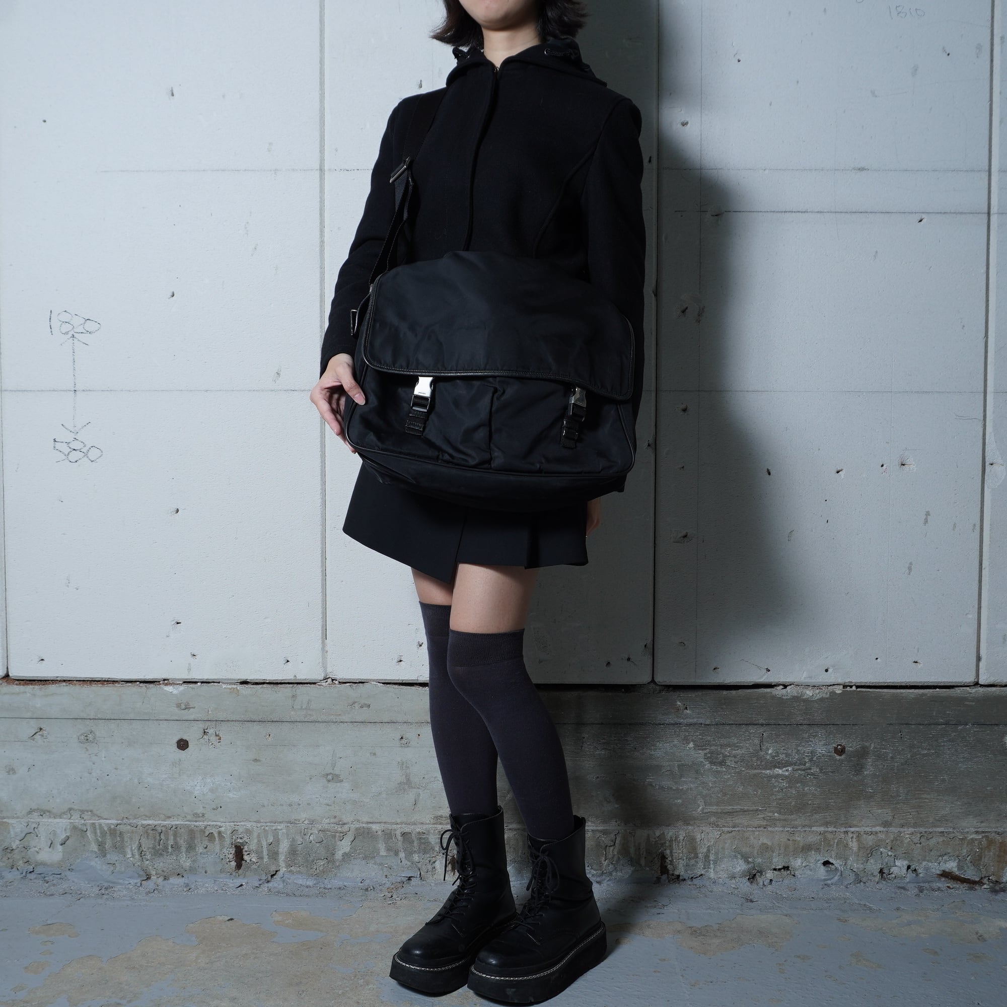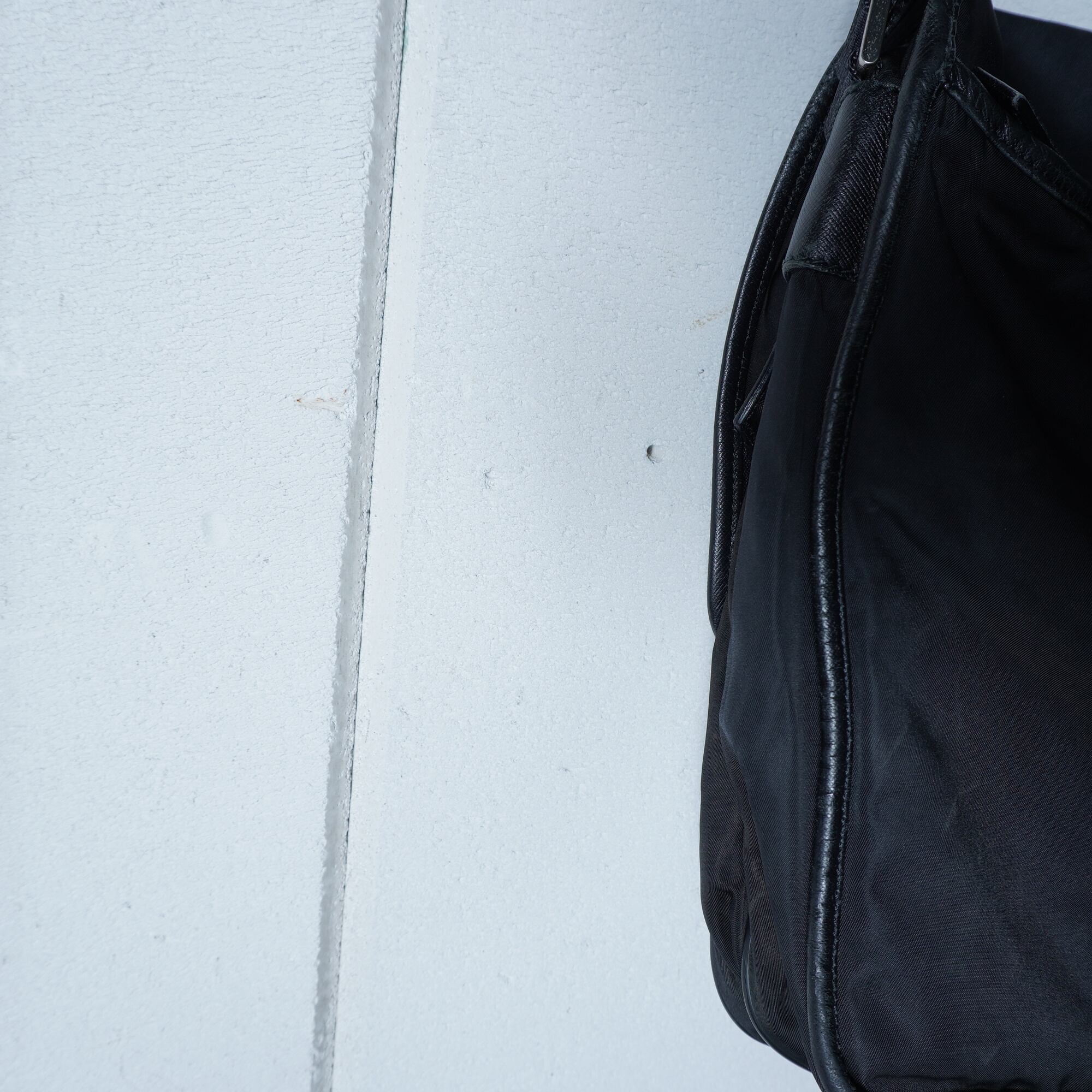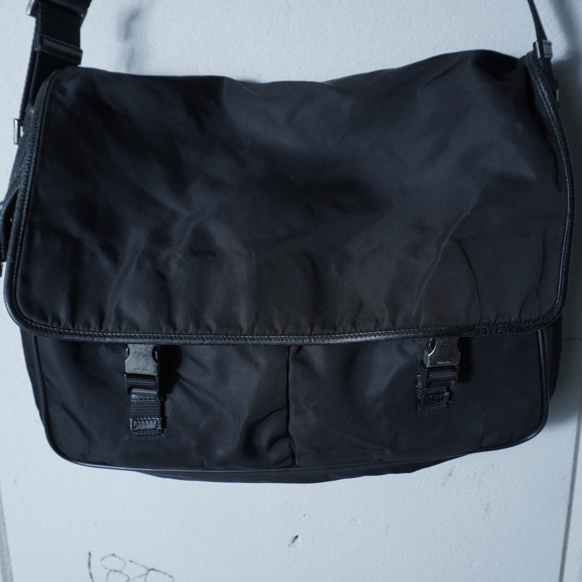 【PRADA】プラダ ”ロゴ金具” レザー切替高密度ナイロンショルダーバッグ black