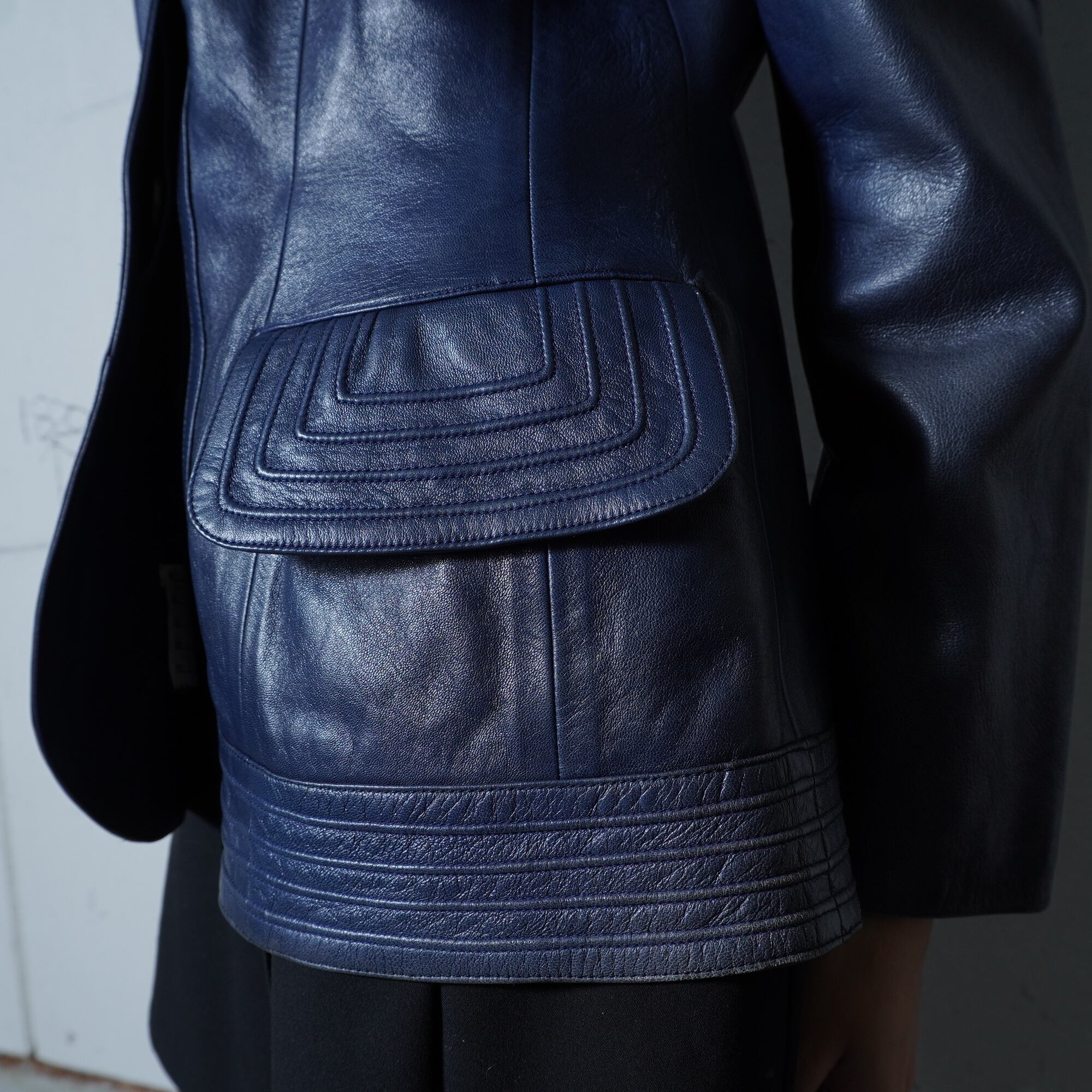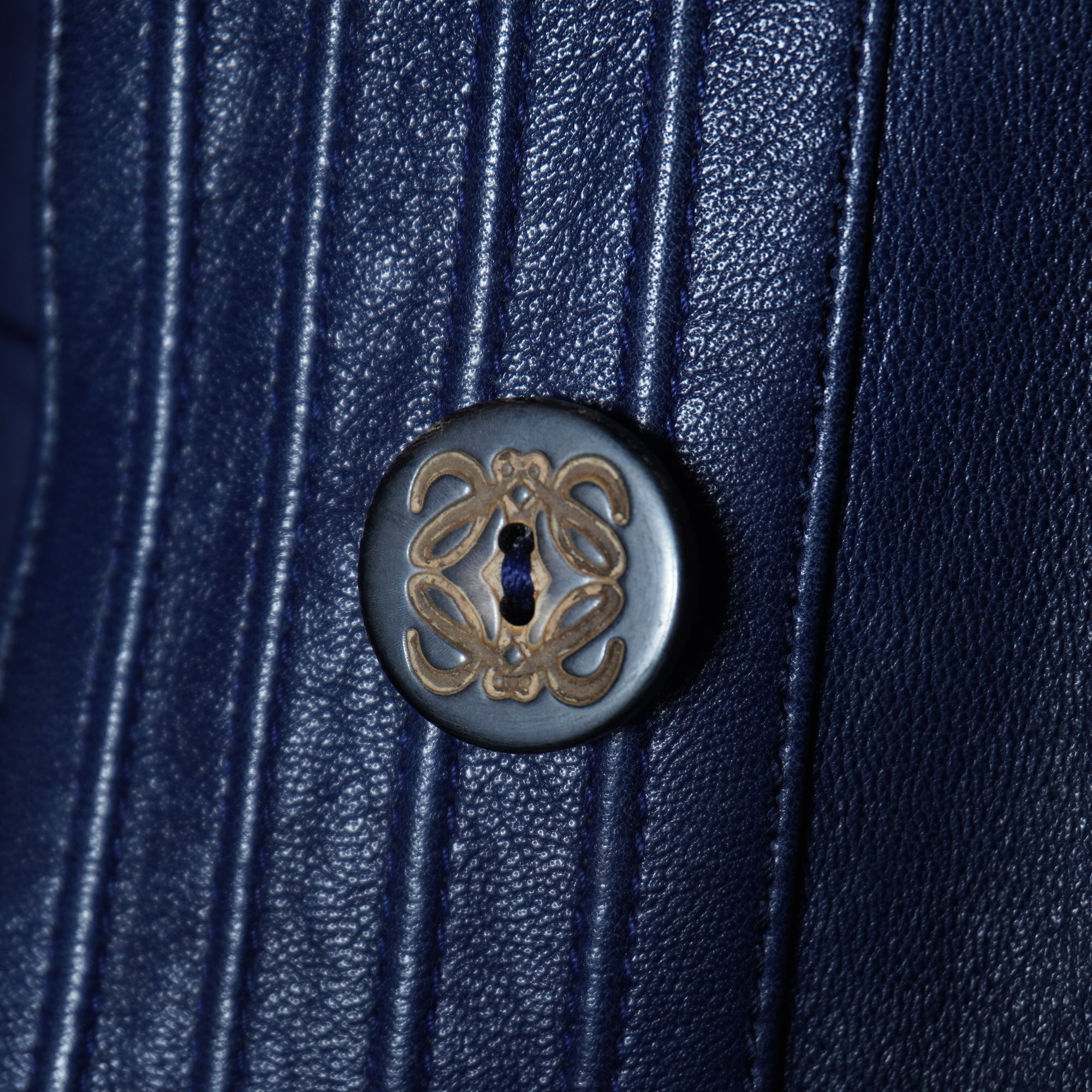 【LOEWE】ロエベ アナグラムロゴボタン ナッパレザー比翼仕立ノーカラージャケット navy