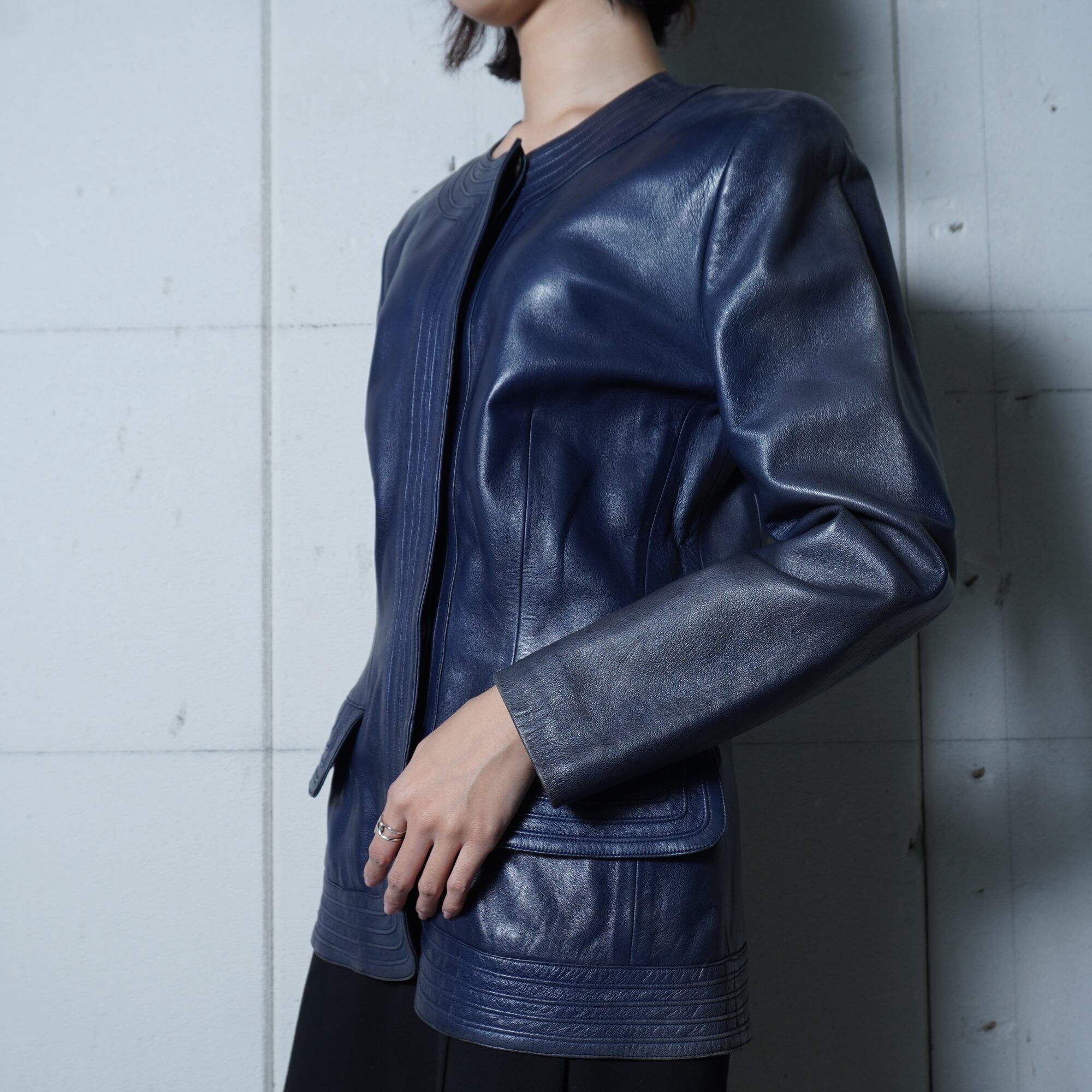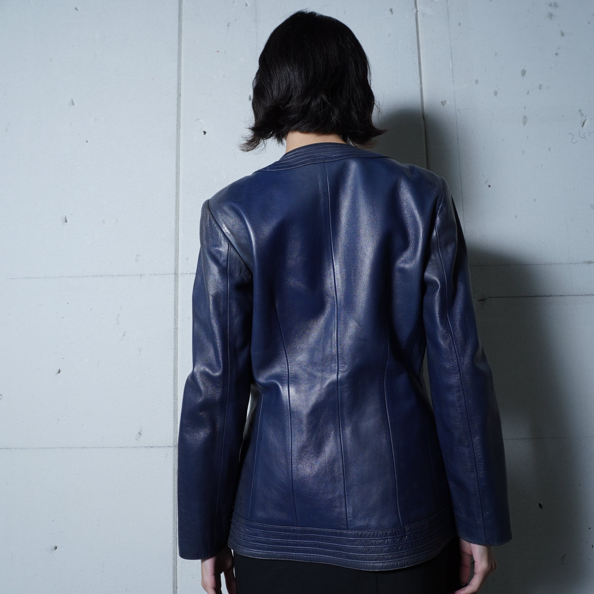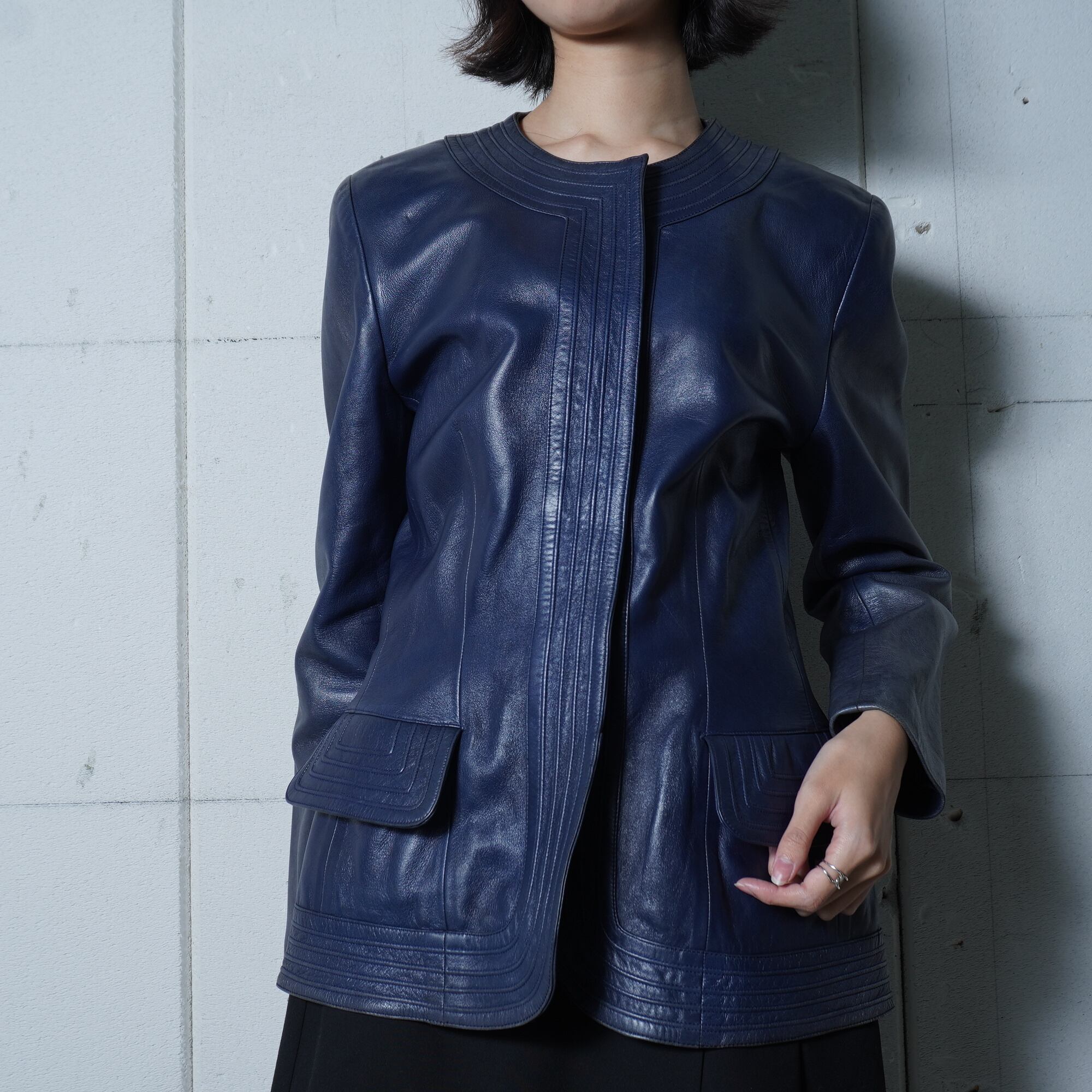 ・ナッパレザーを使用した、エレガントなノーカラージャケット