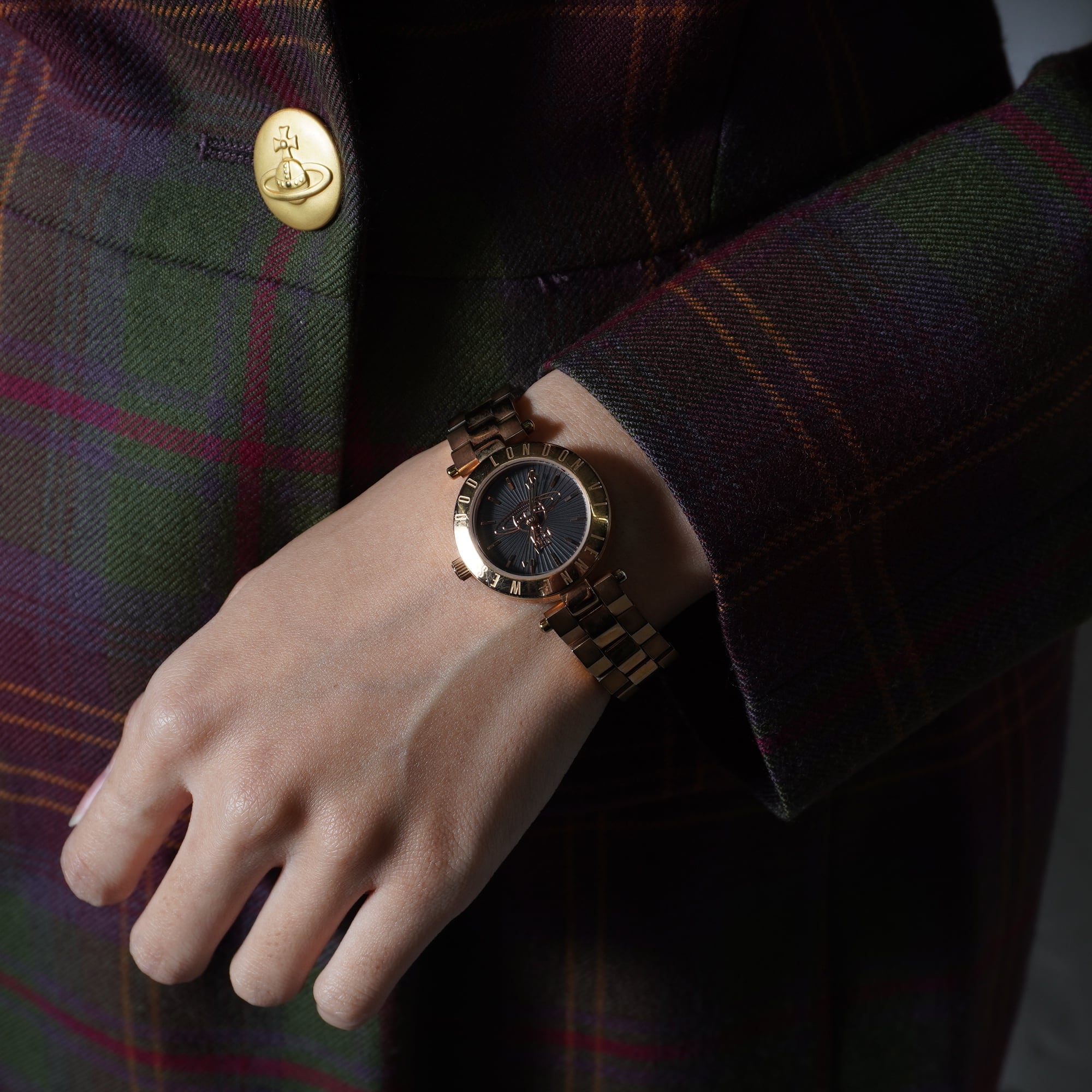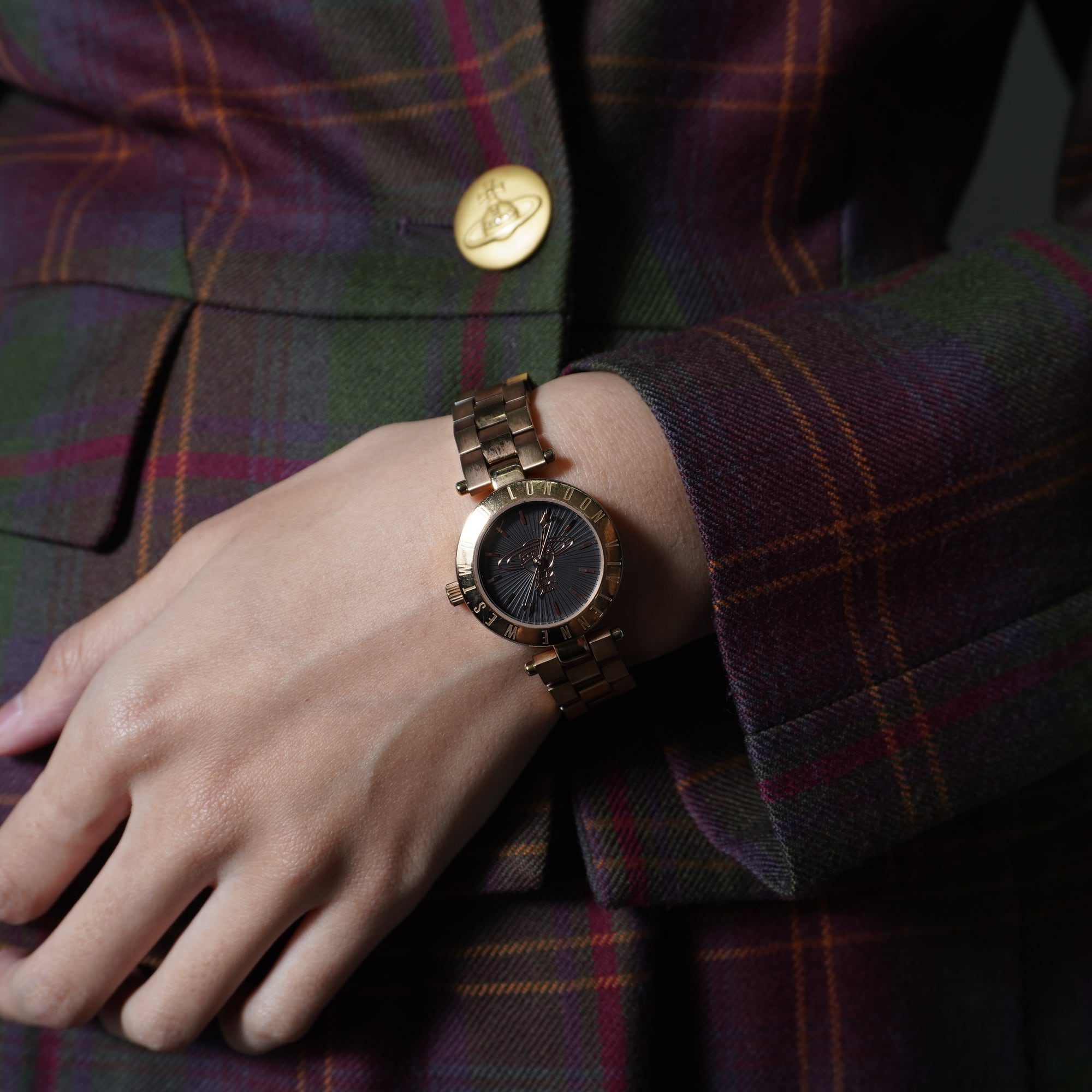 【Vivienne Westwood】ヴィヴィアンウエストウッド "稼働品”オーブロゴ ブラックフェイスクォーツウォッチ