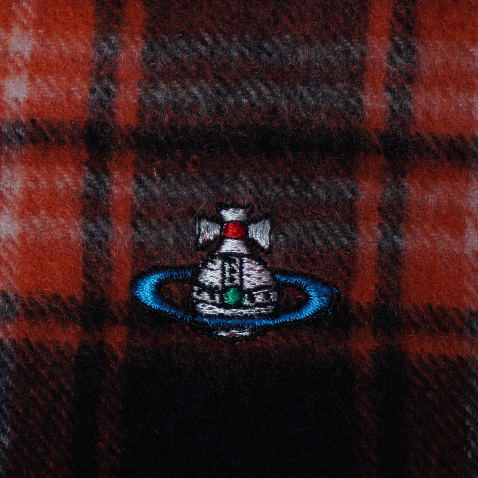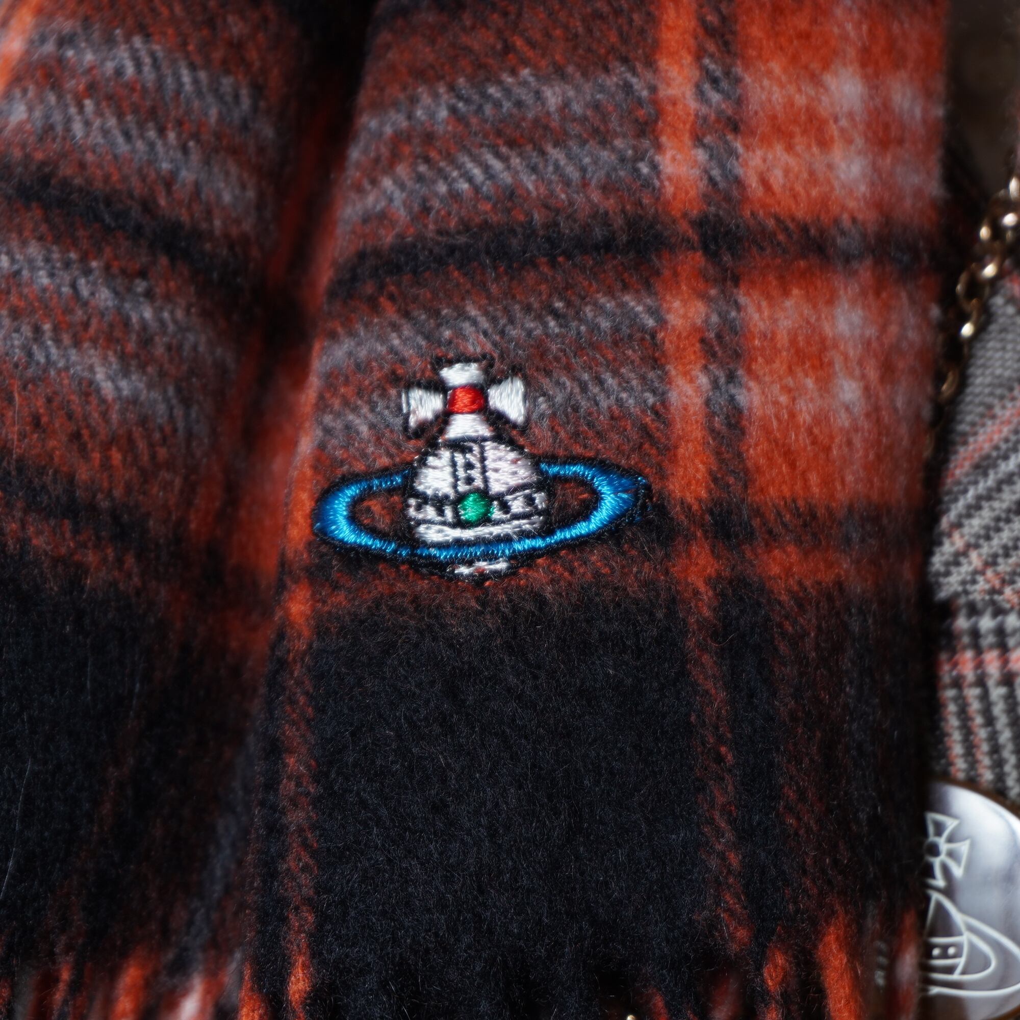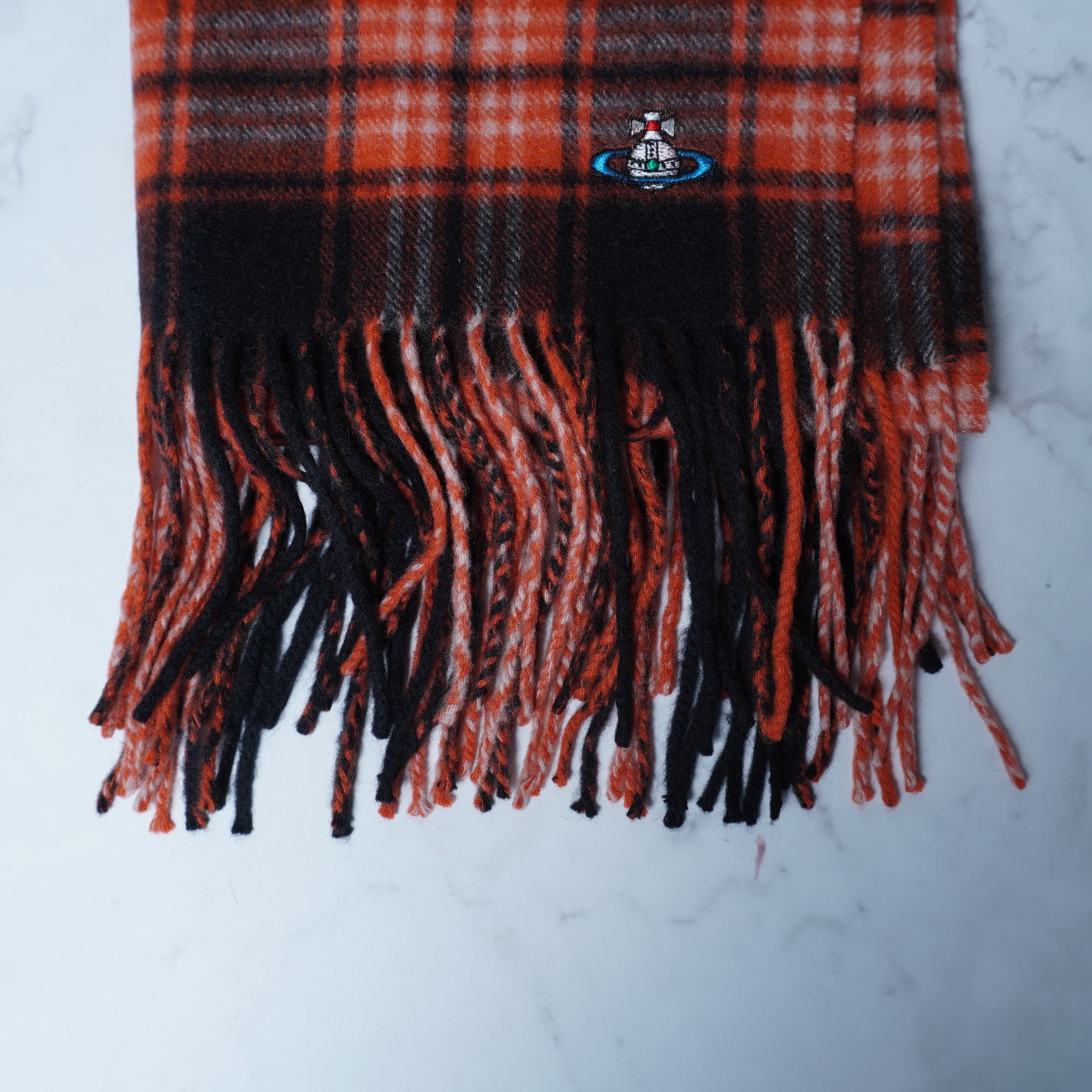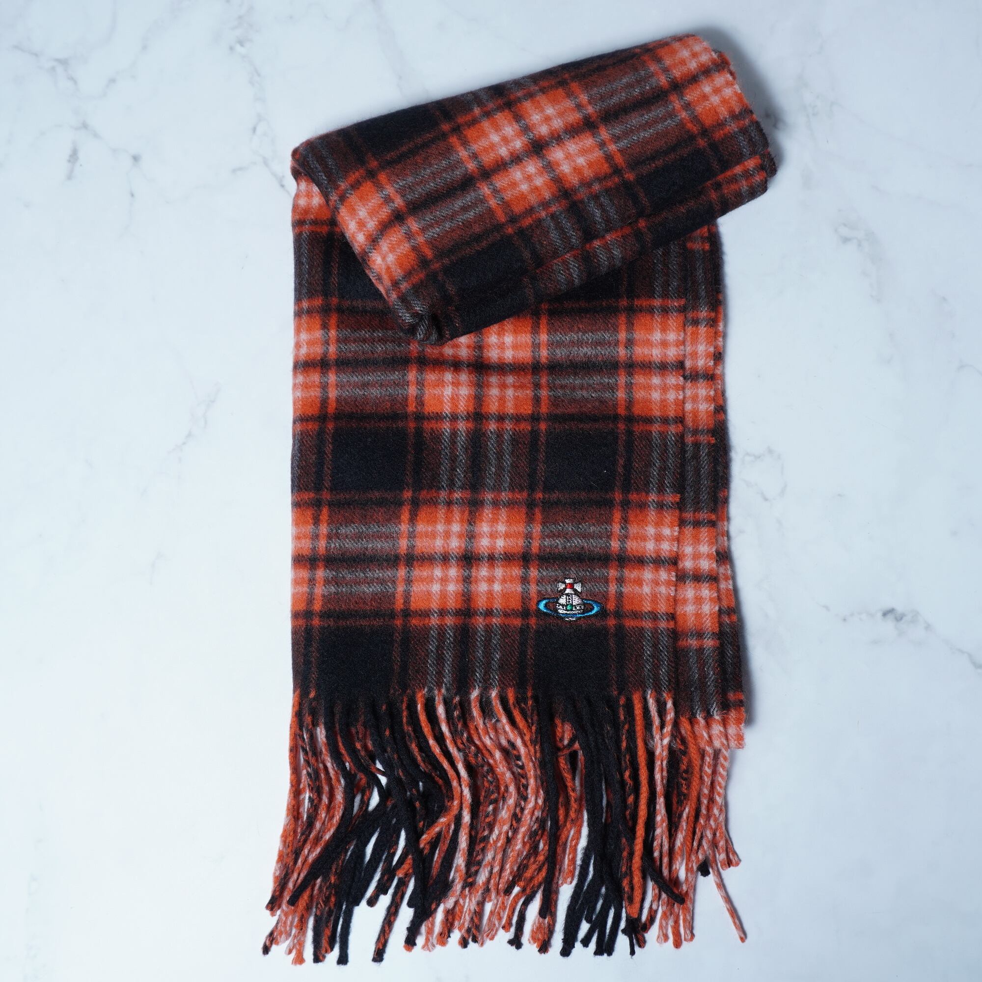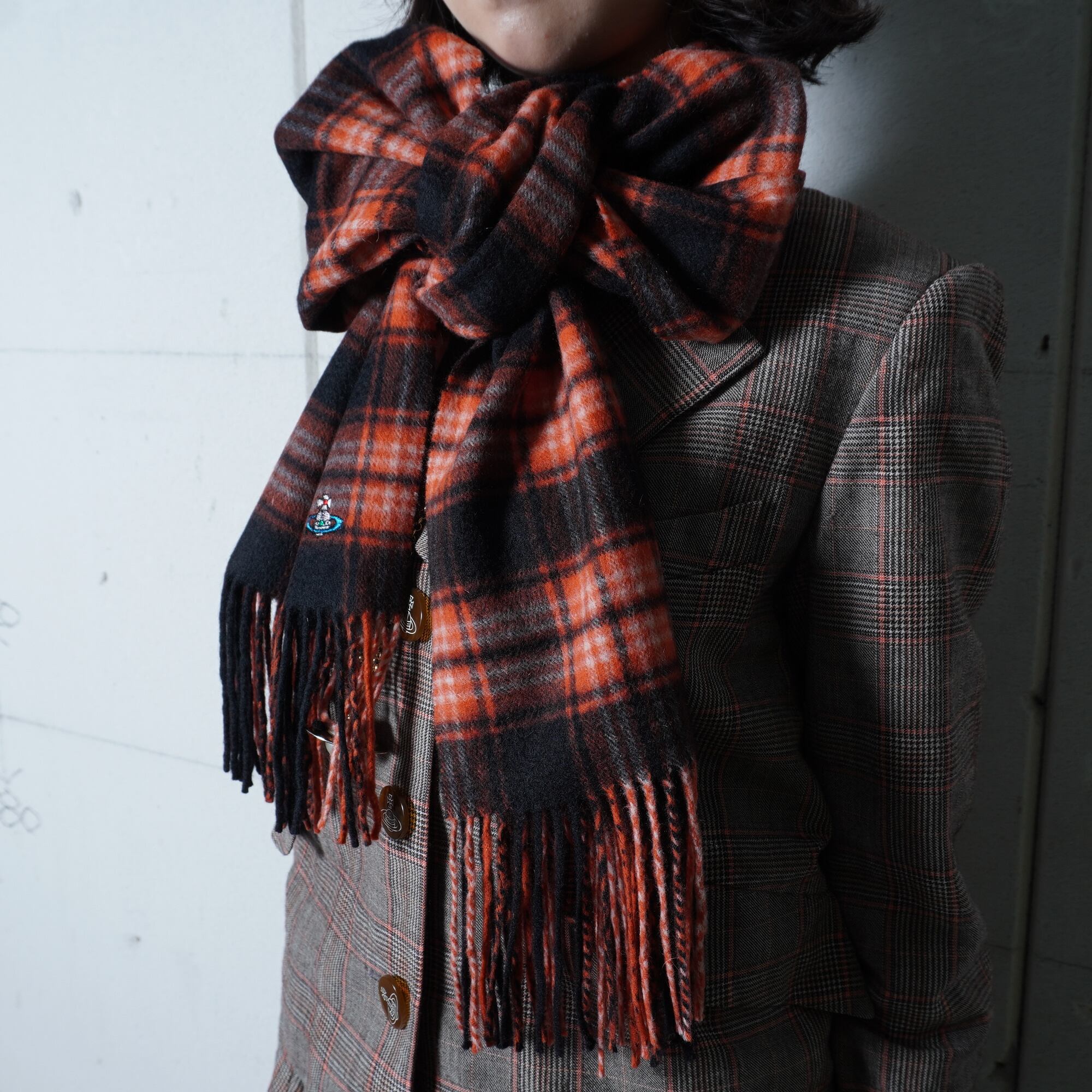 【Vivienne Westwood】ヴィヴィアンウエストウッド ”オーブロゴ刺繍” チェック柄カシミヤマフラー orange&black
